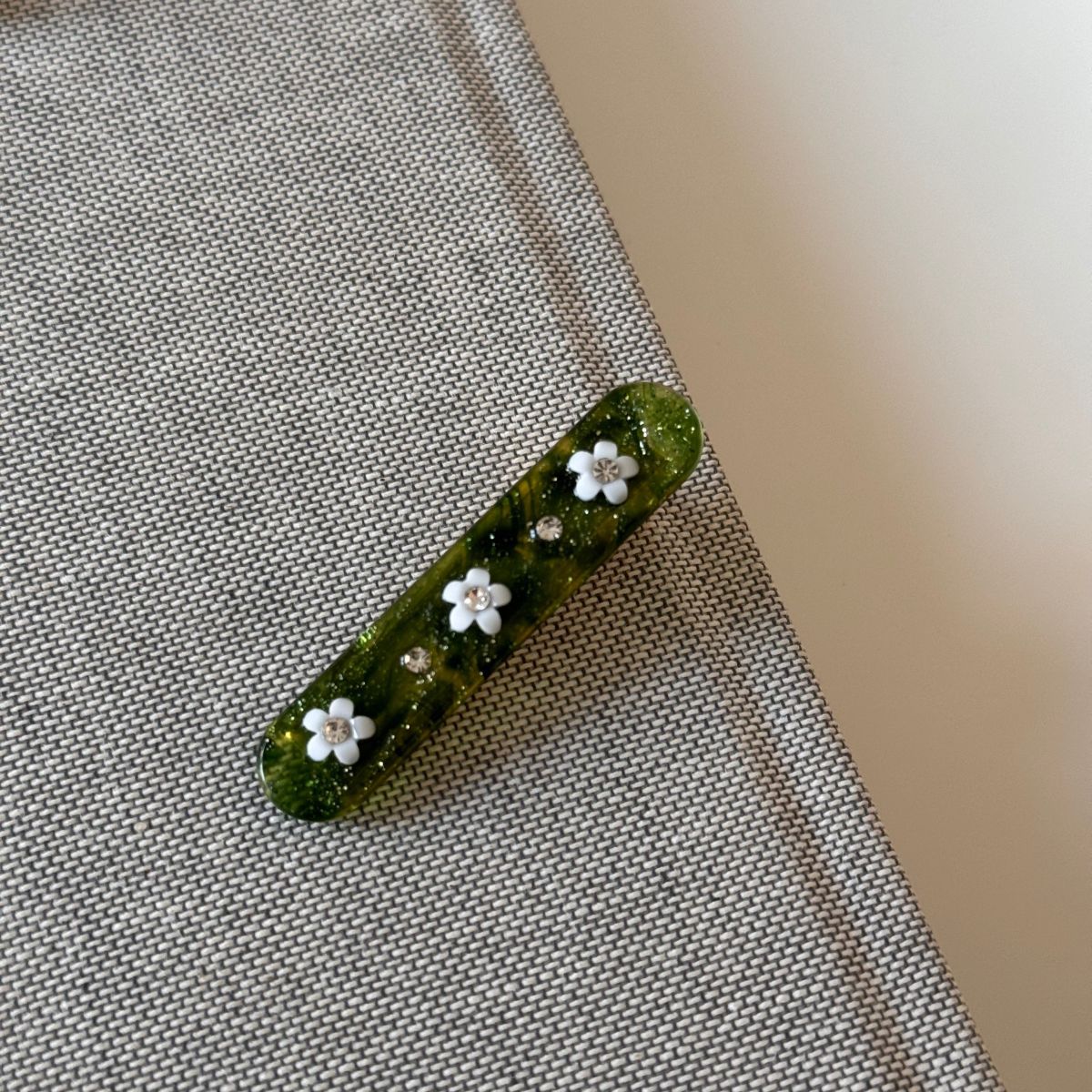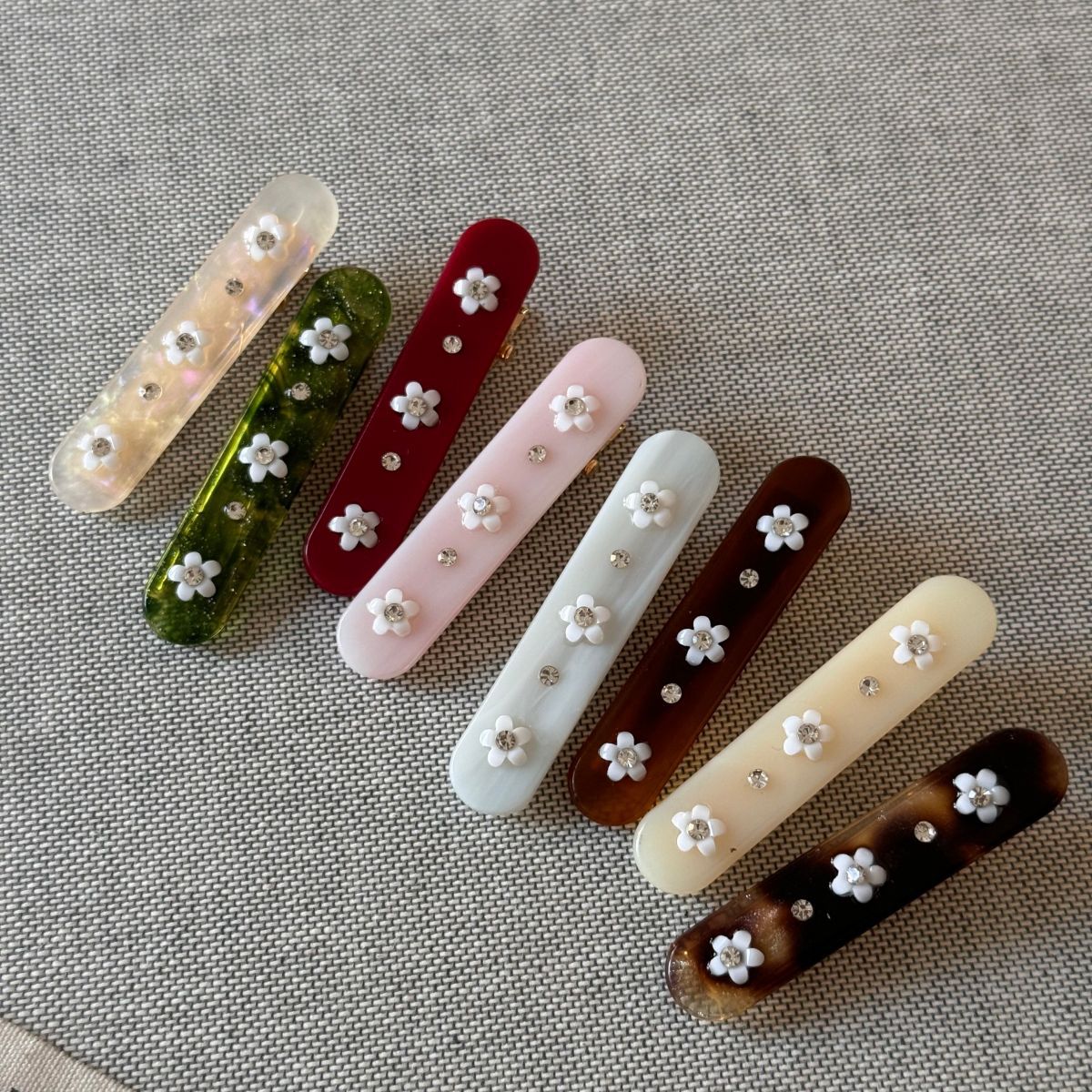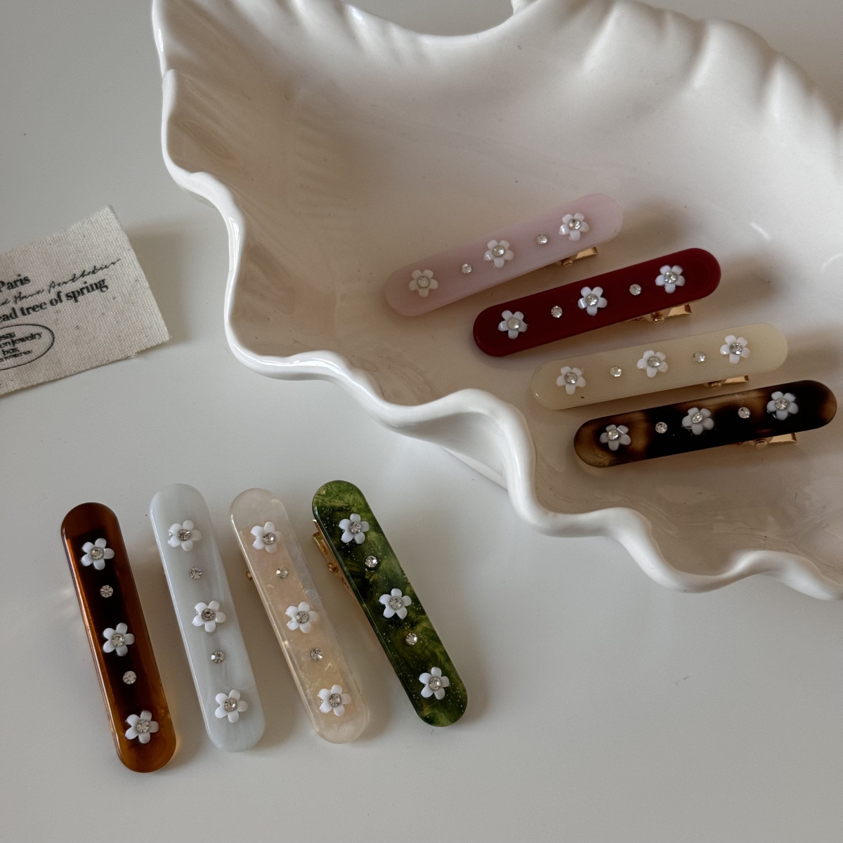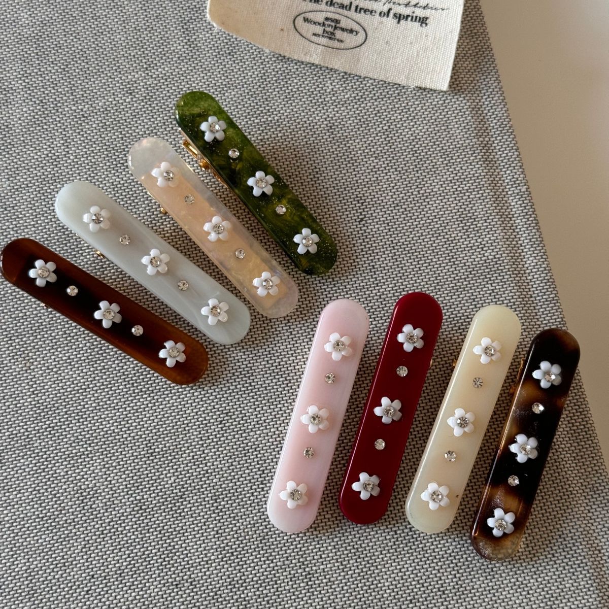 小花水钻一字夹复古气质发夹满天星长方形发卡鸭嘴夹刘海夹发饰