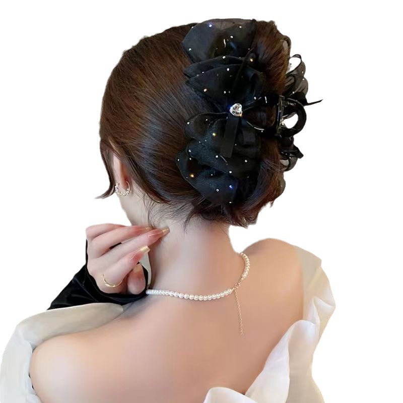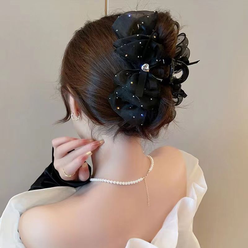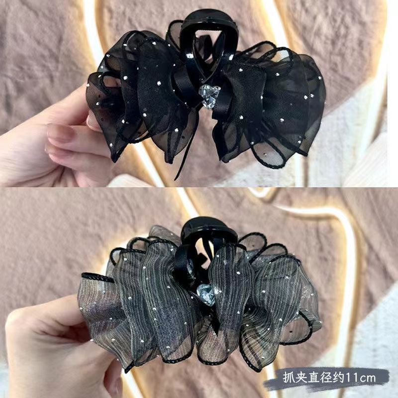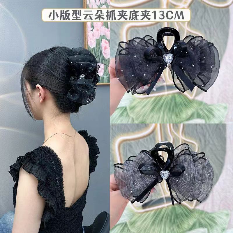 优雅百搭满天星水钻网纱抓夹后脑勺鲨鱼夹云朵泡泡蝴蝶结发夹头饰