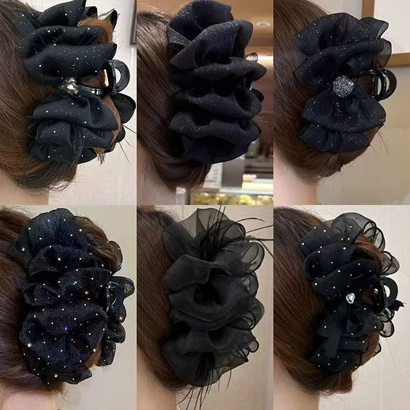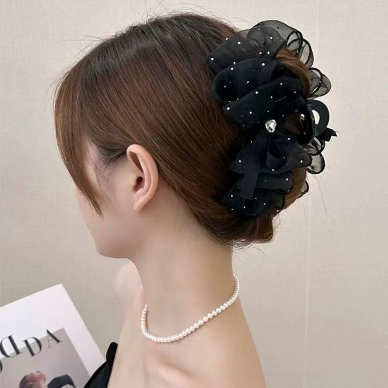 优雅百搭满天星气质网纱抓夹后脑勺鲨鱼夹云朵泡泡蝴蝶结发夹头饰