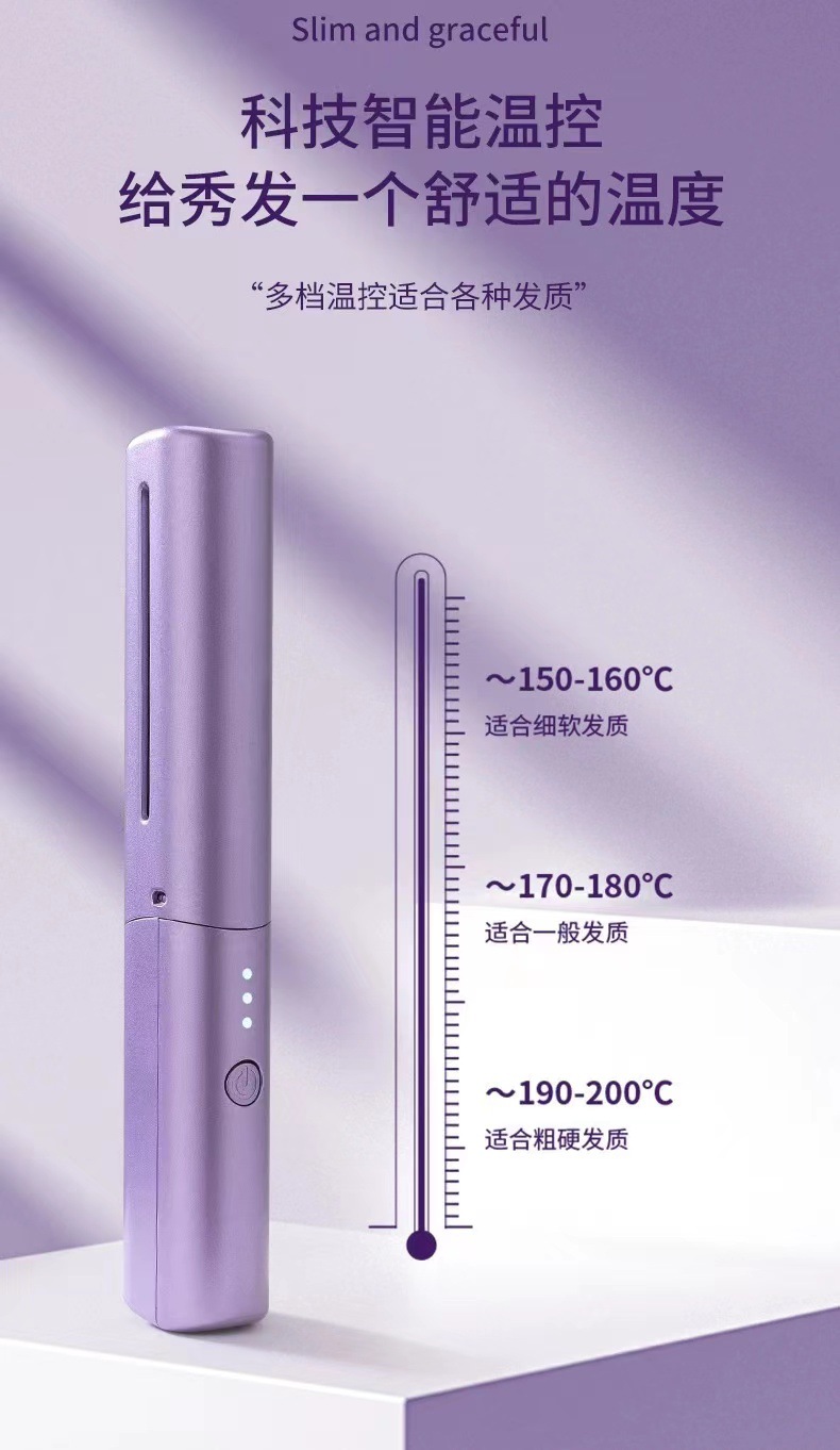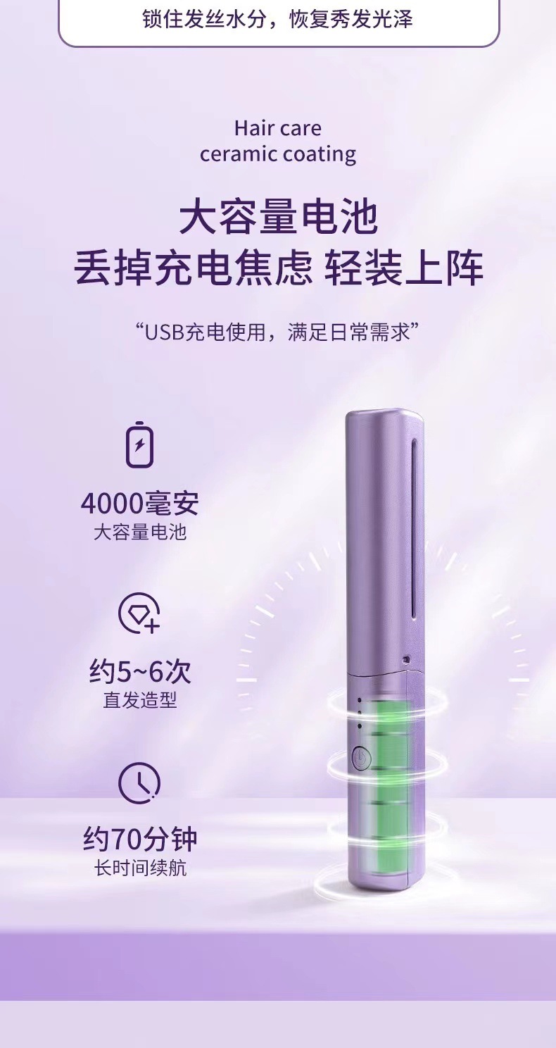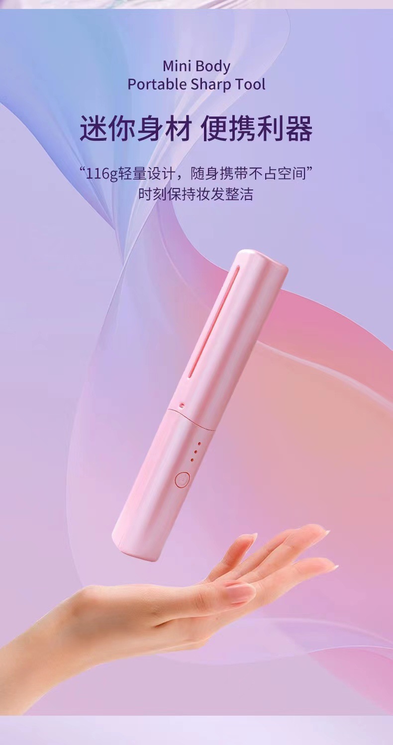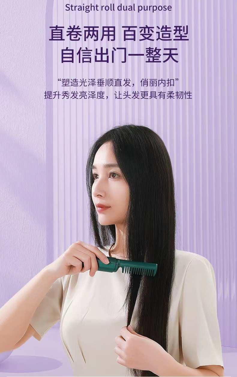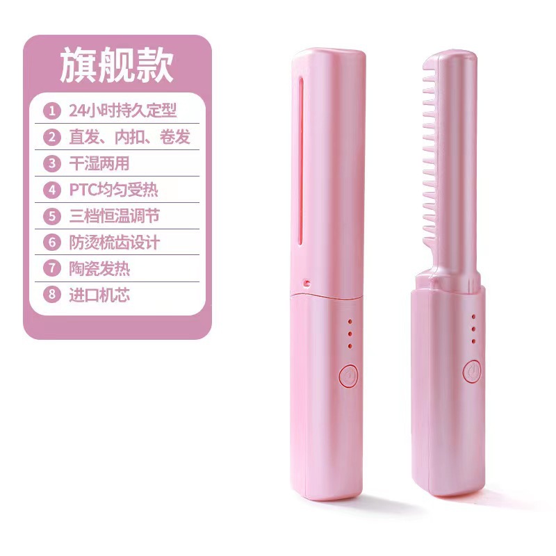 跨境无线直发梳负离子不伤发直卷两用便携式家用夹板卷发棒直发器