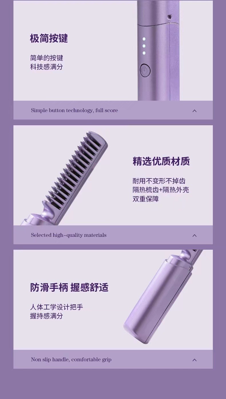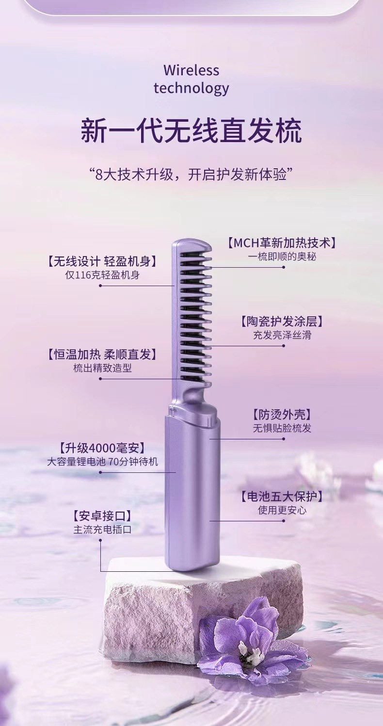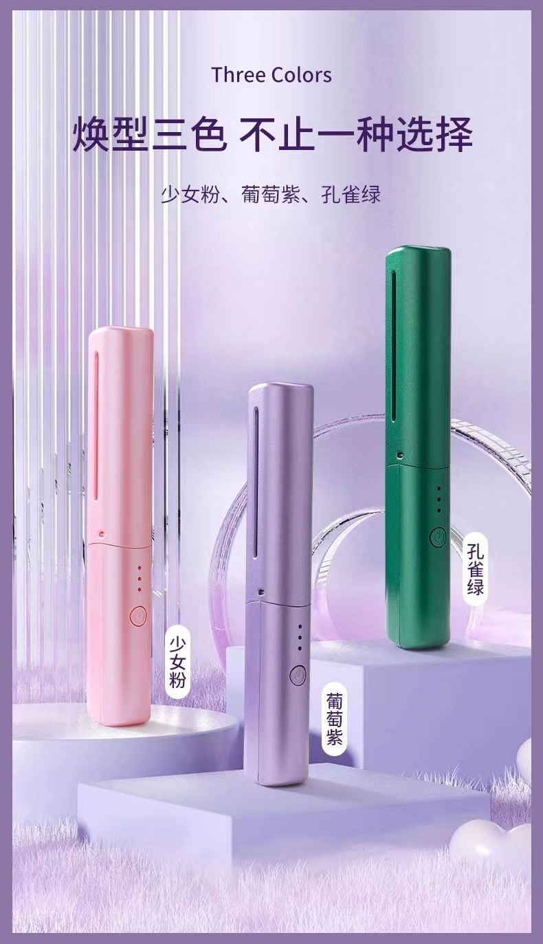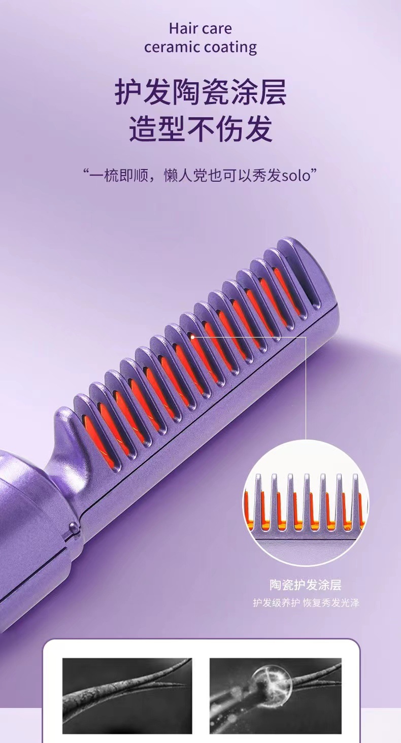 跨境无线直发梳负离子不伤发直卷两用便携式家用夹板卷发棒直发器