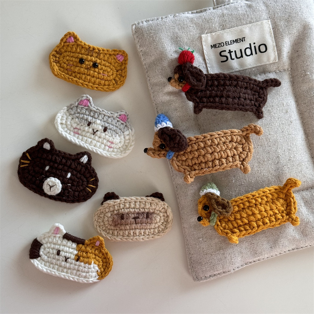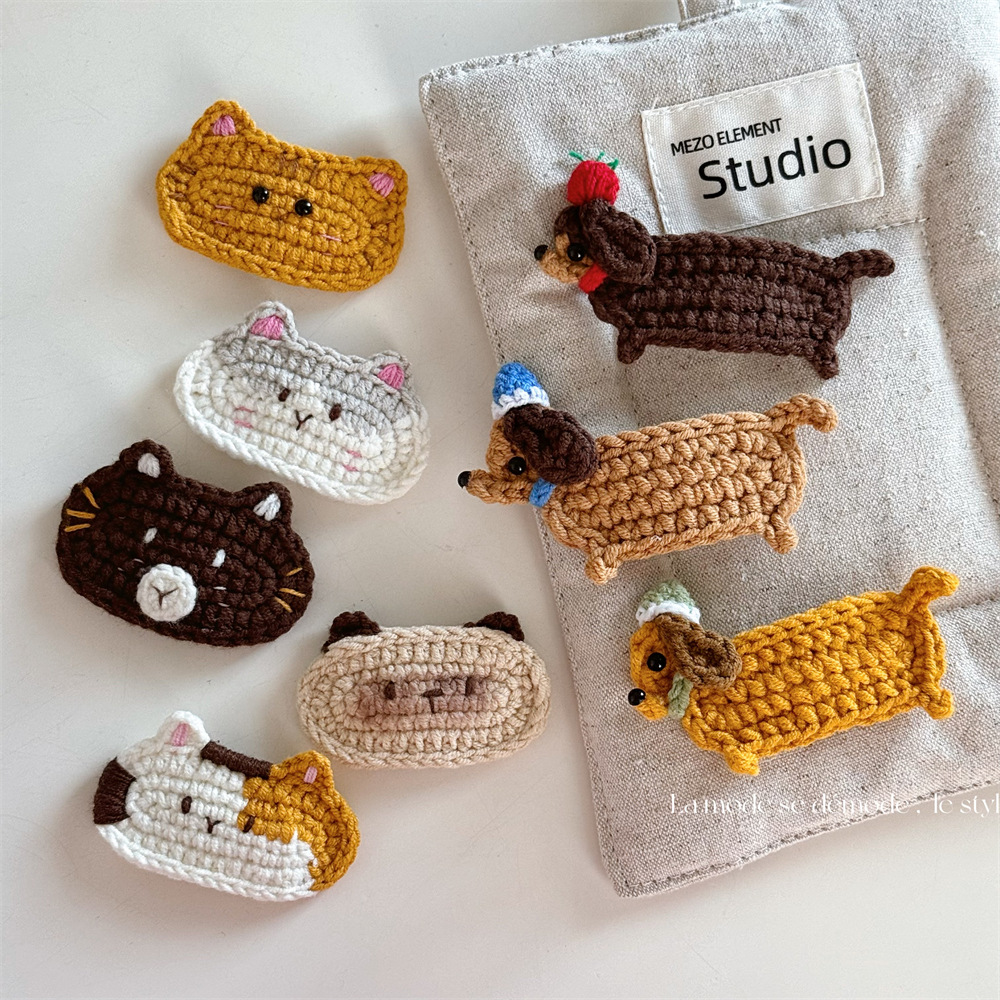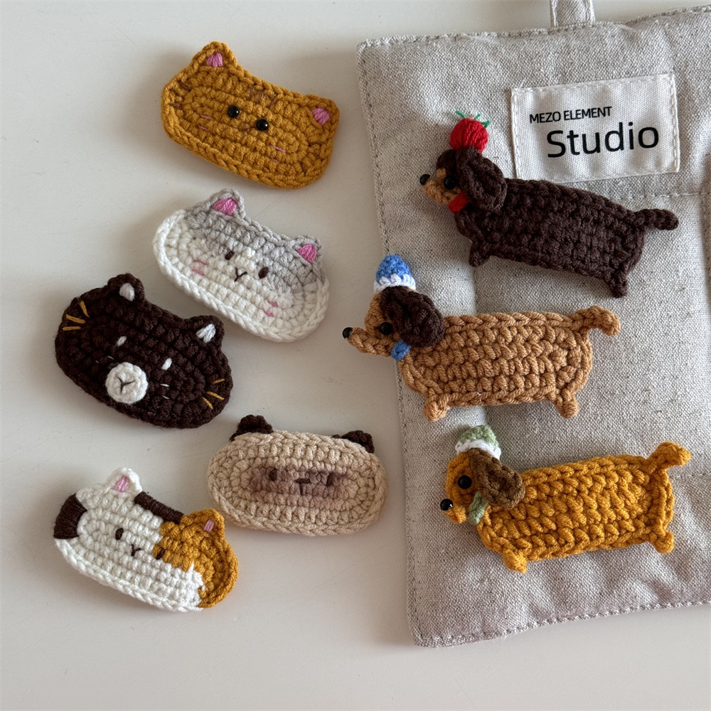 毛线钩针发夹可爱卡通小狗小猫BB夹刘海夹边夹儿童发饰新款头饰