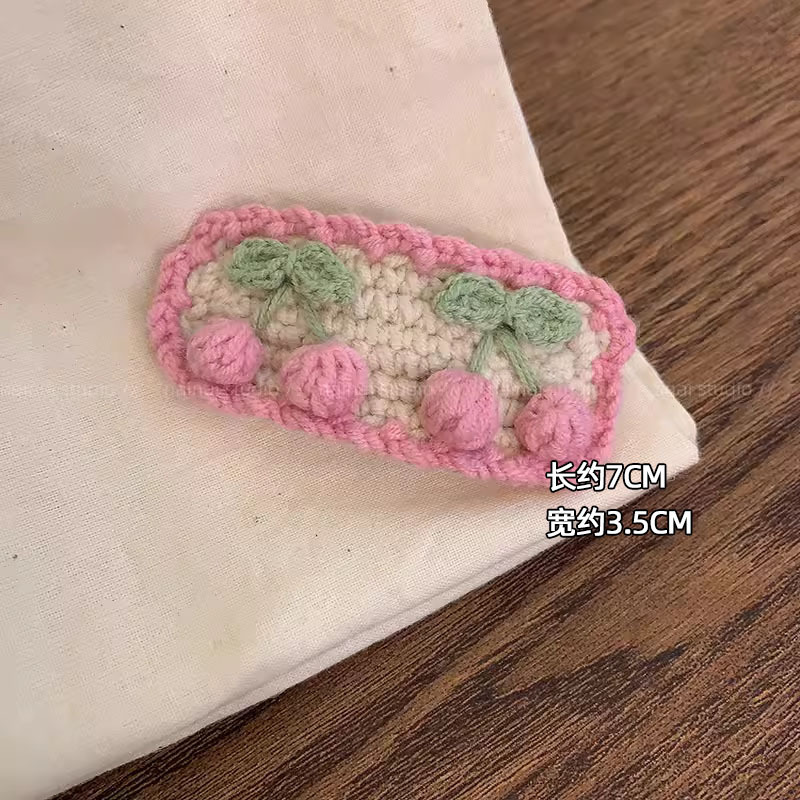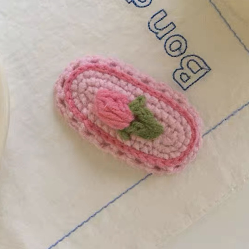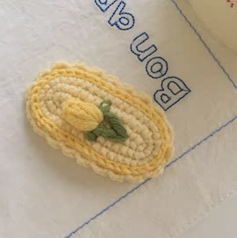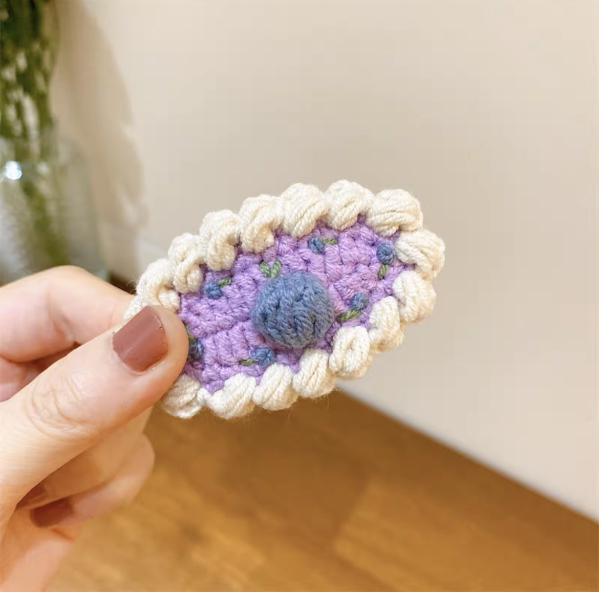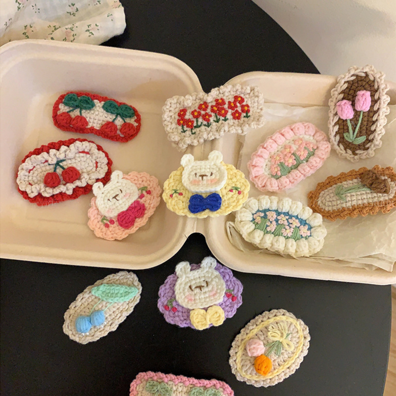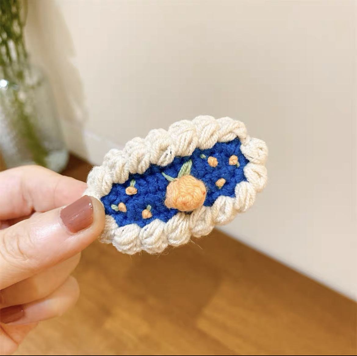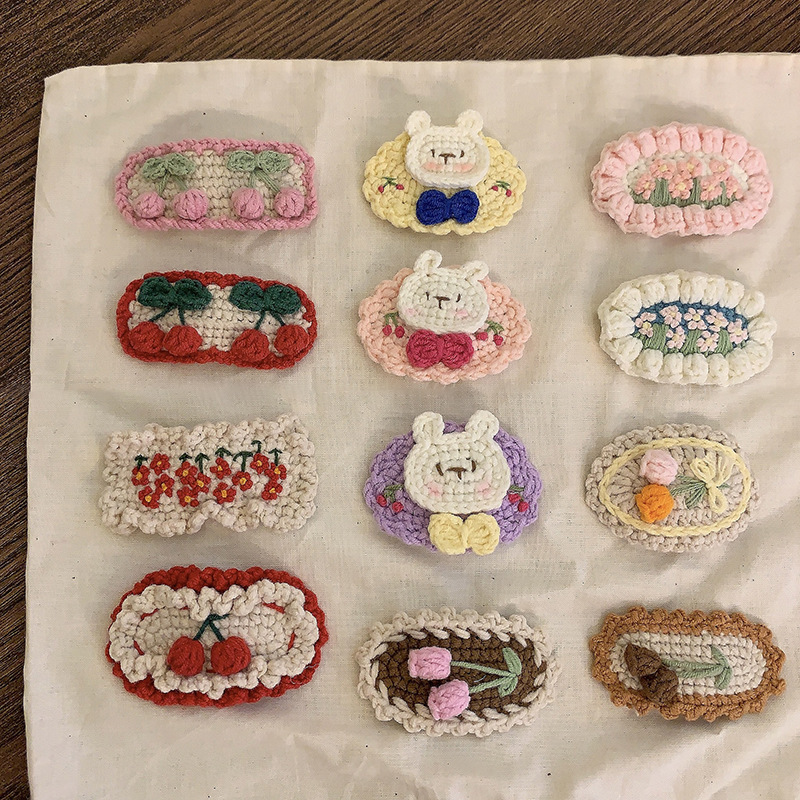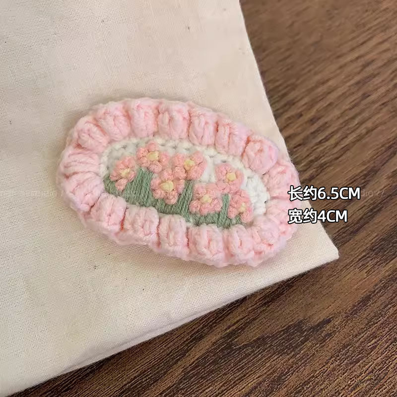 钩针编织手工毛线刺绣清新可爱甜美彩色花朵发夹侧边刘海BB夹发饰