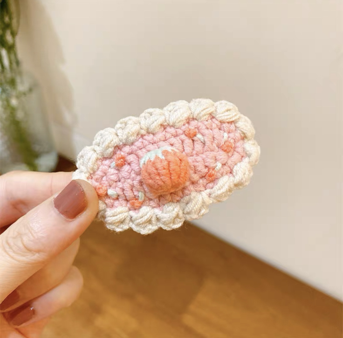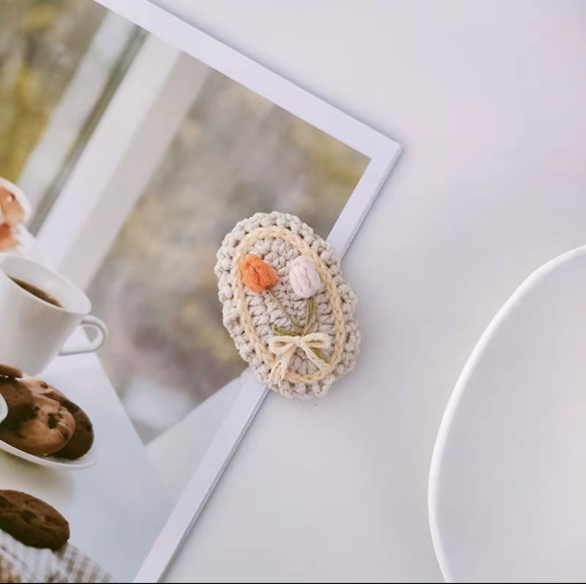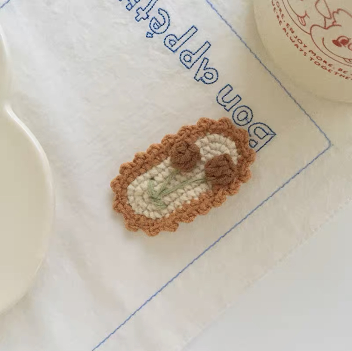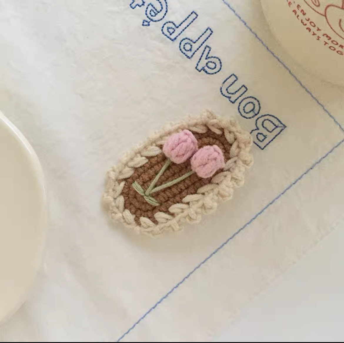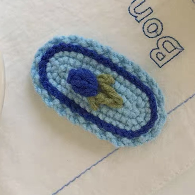 钩针编织手工毛线刺绣清新可爱甜美彩色花朵发夹侧边刘海BB夹发饰