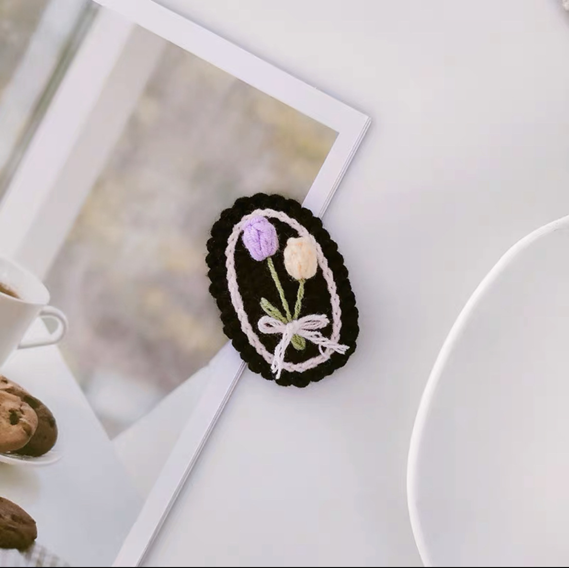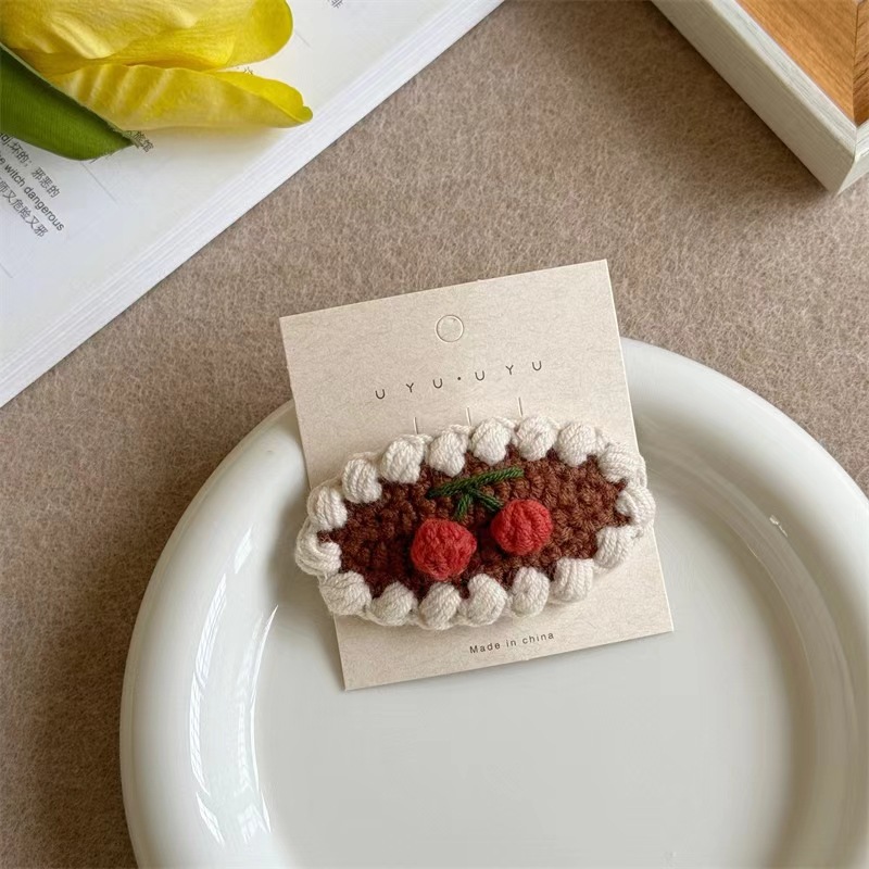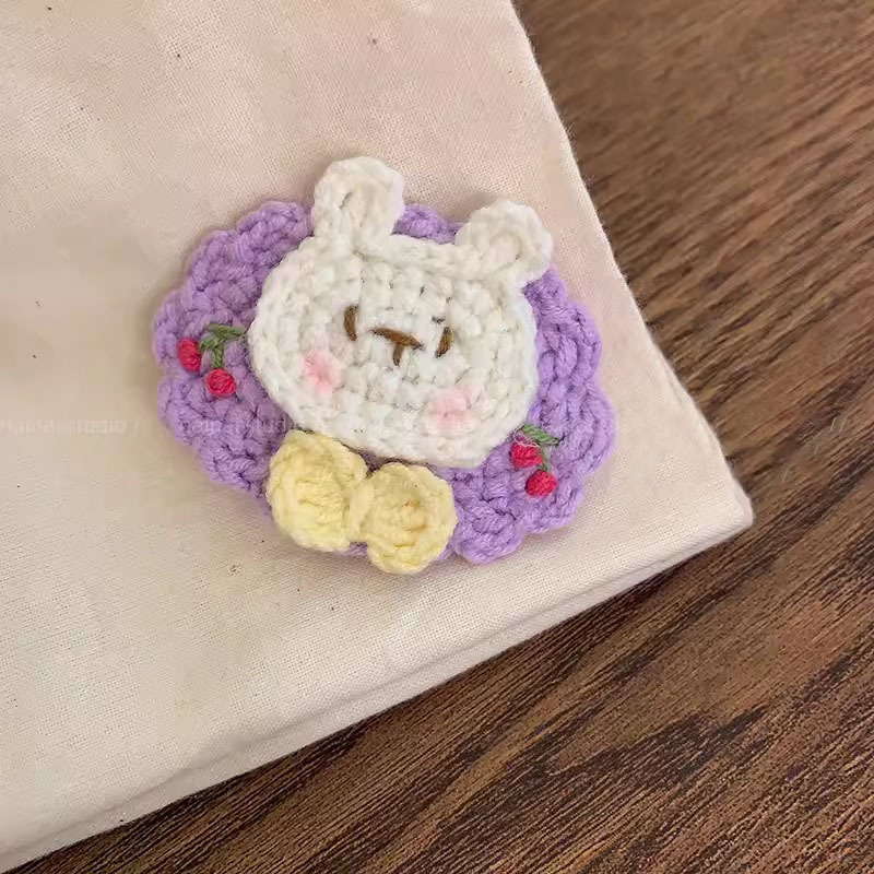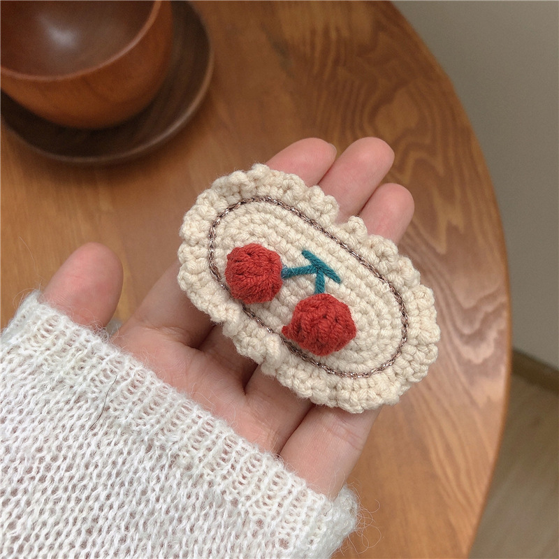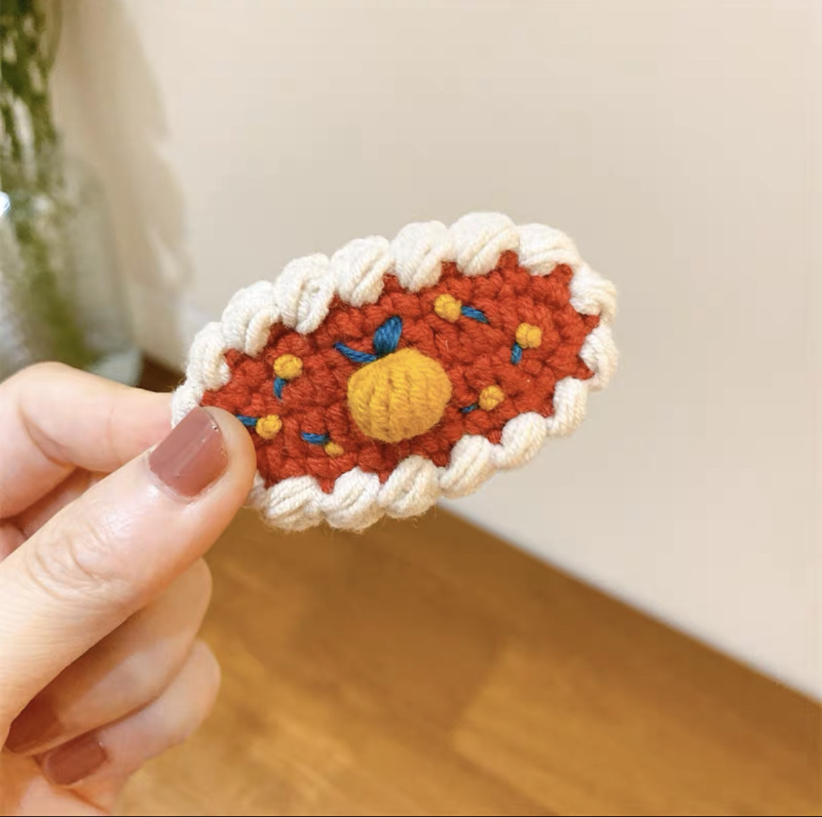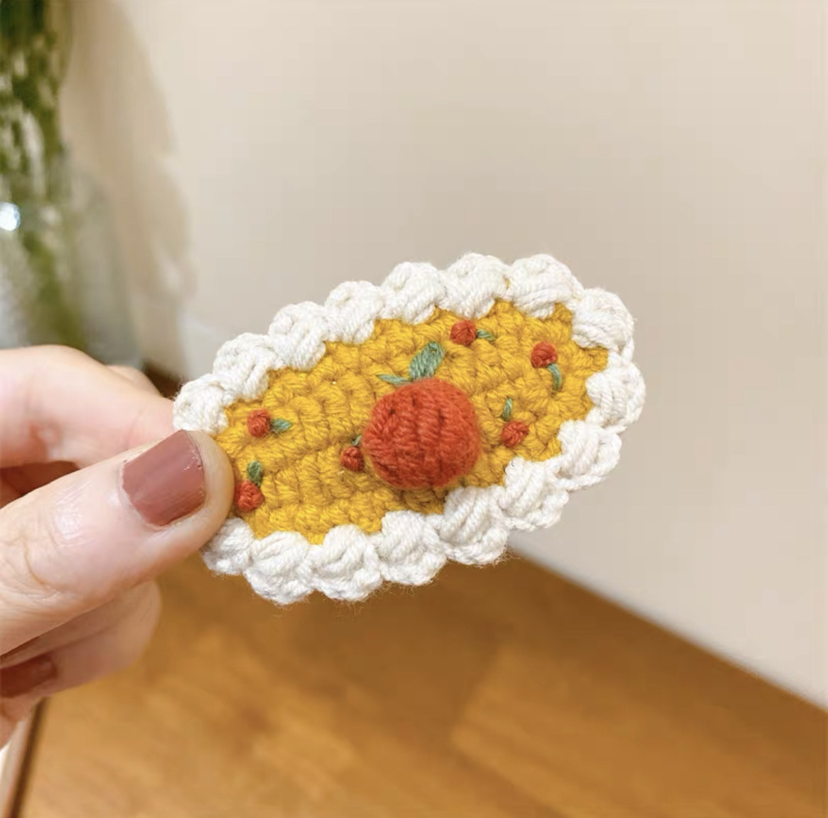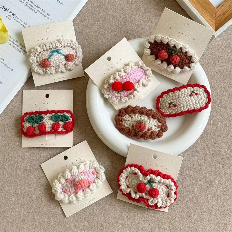钩针编织手工毛线刺绣清新可爱甜美彩色花朵发夹侧边刘海BB夹发饰