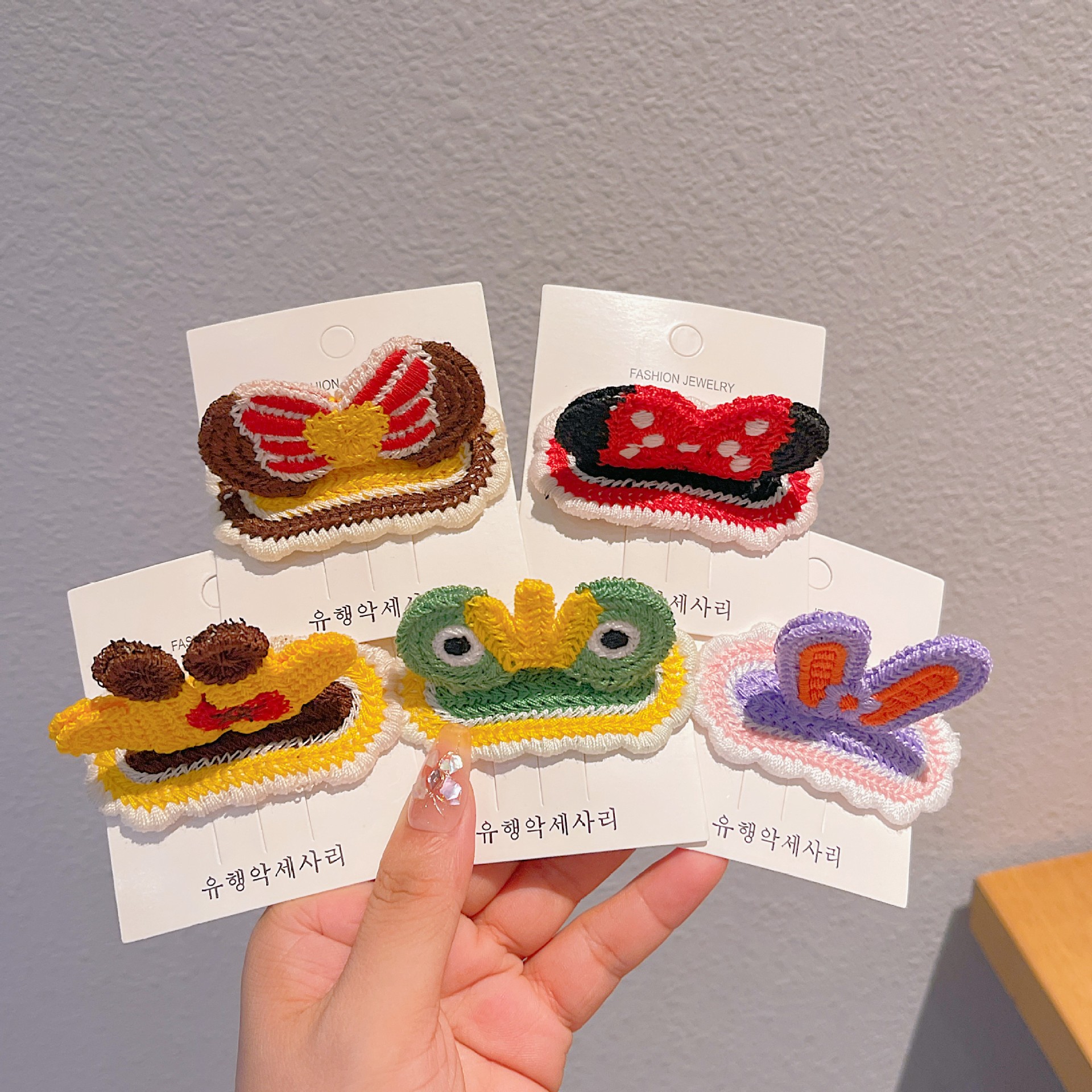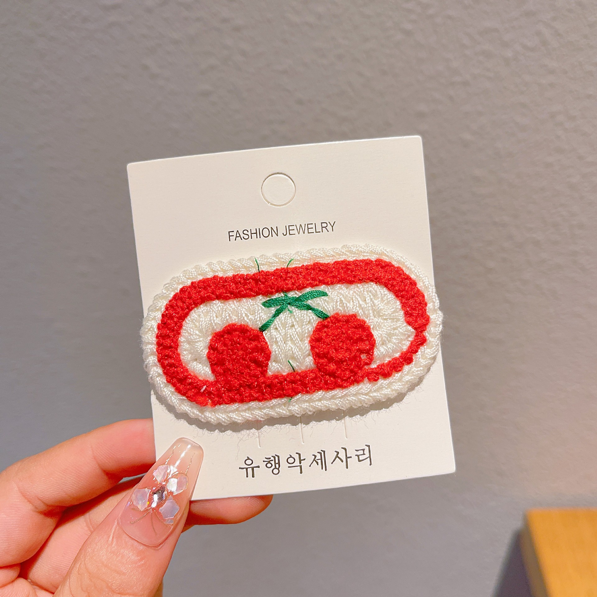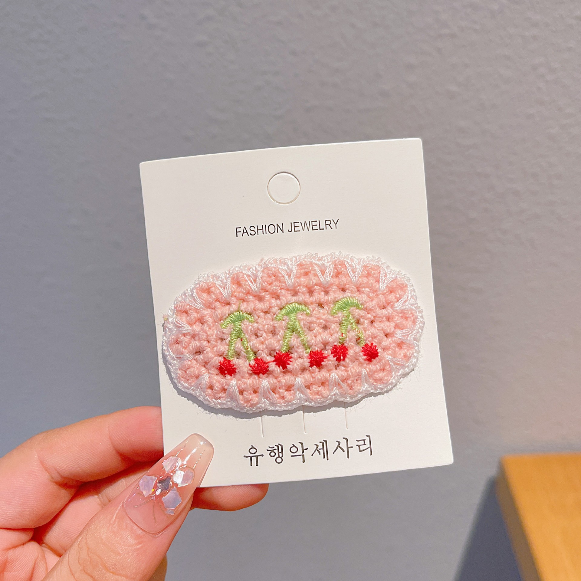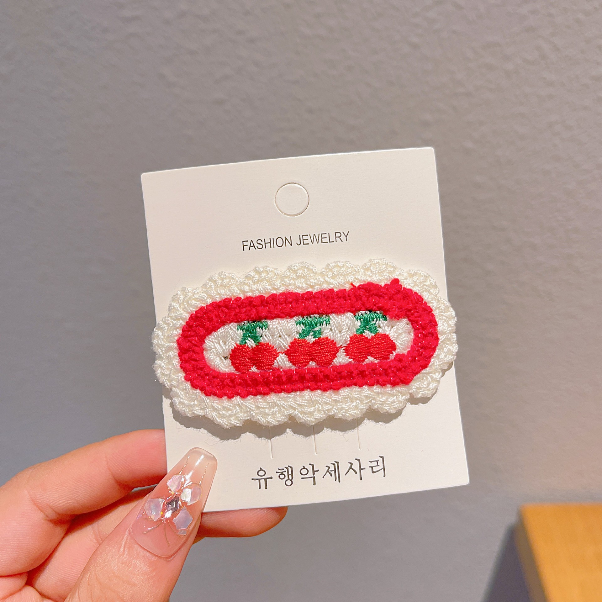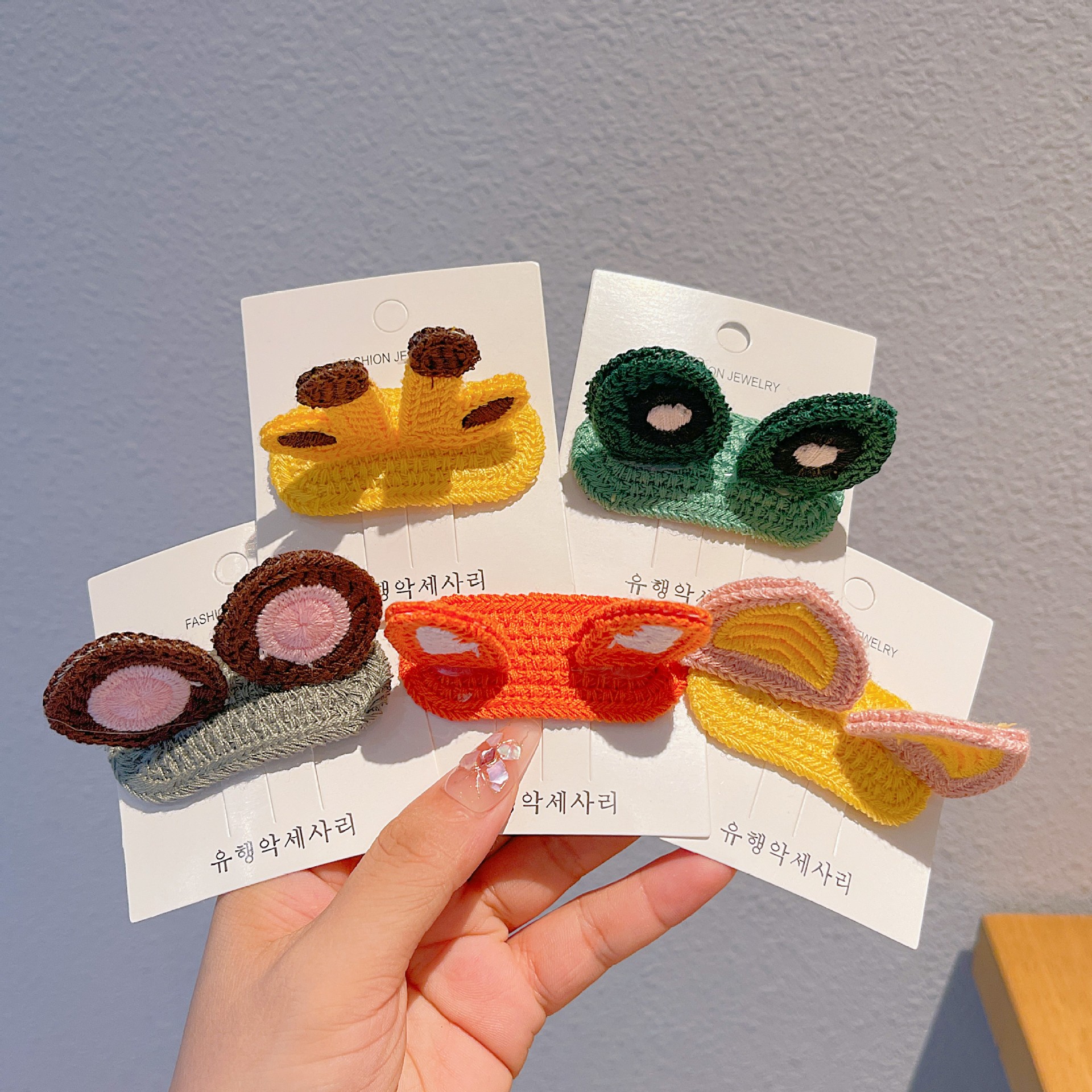 韩系毛线针织bb夹可爱风包布小动物卡通水果图案刘海夹少女心发夹