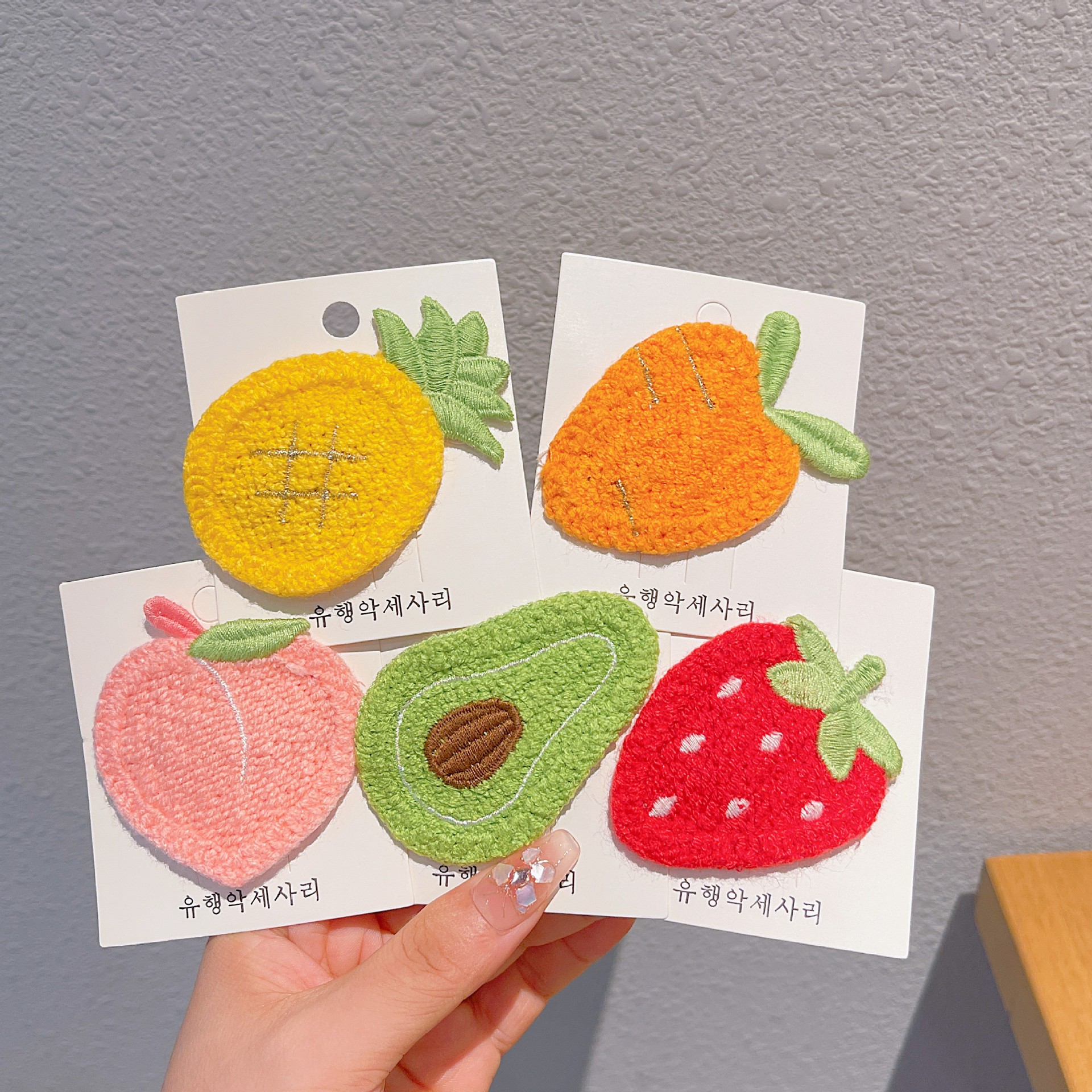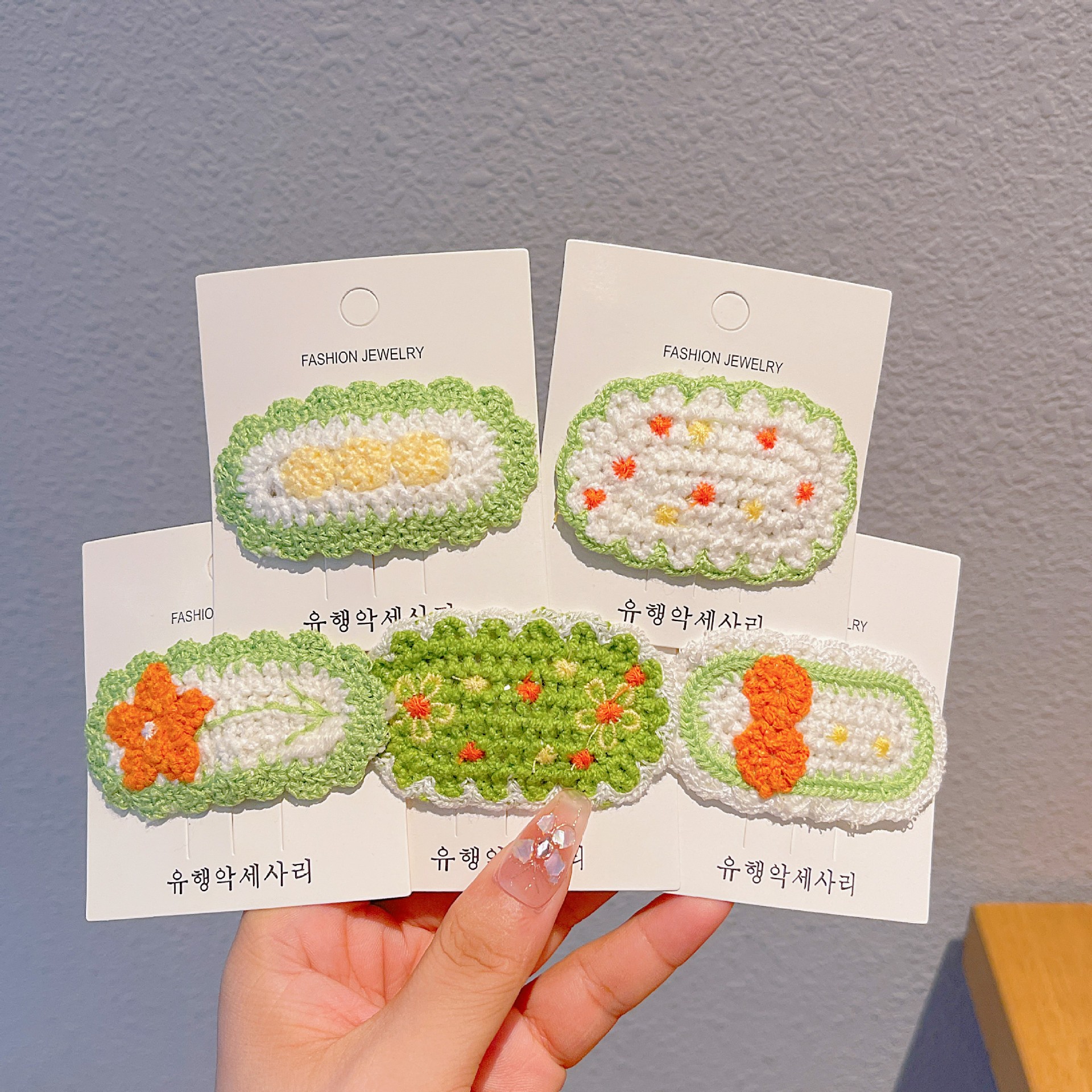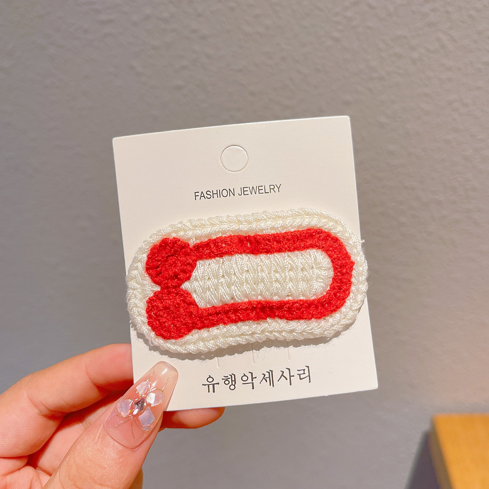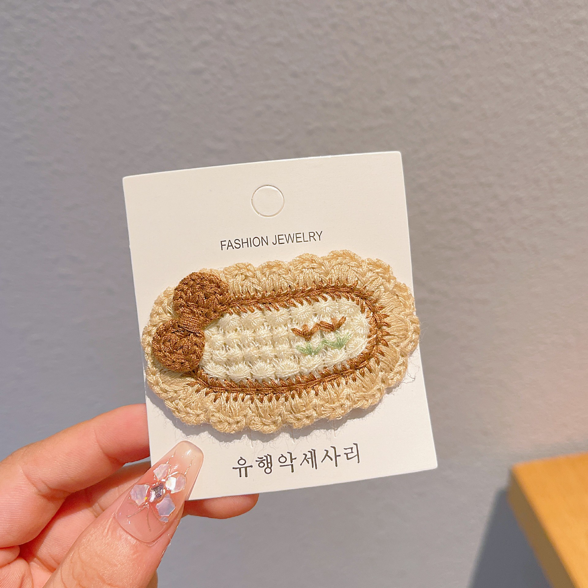 韩系毛线针织bb夹可爱风包布小动物卡通水果图案刘海夹少女心发夹