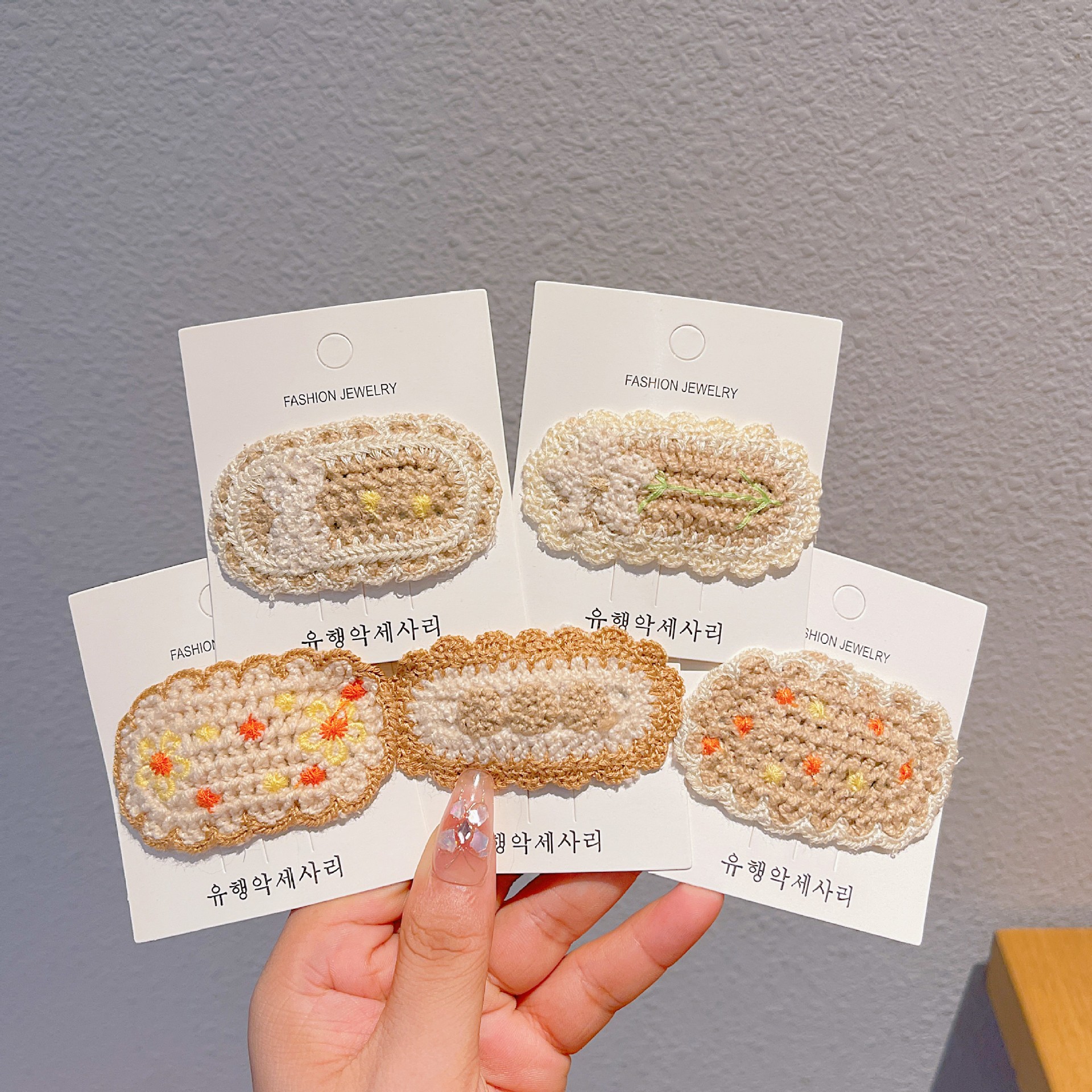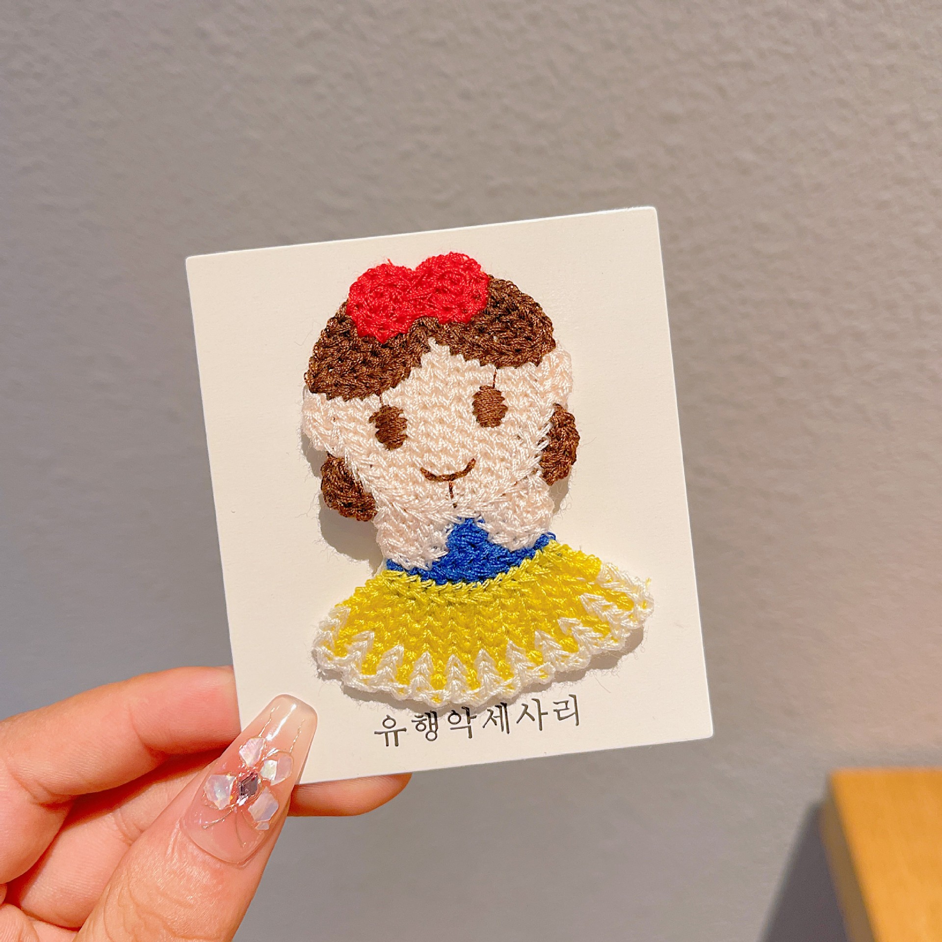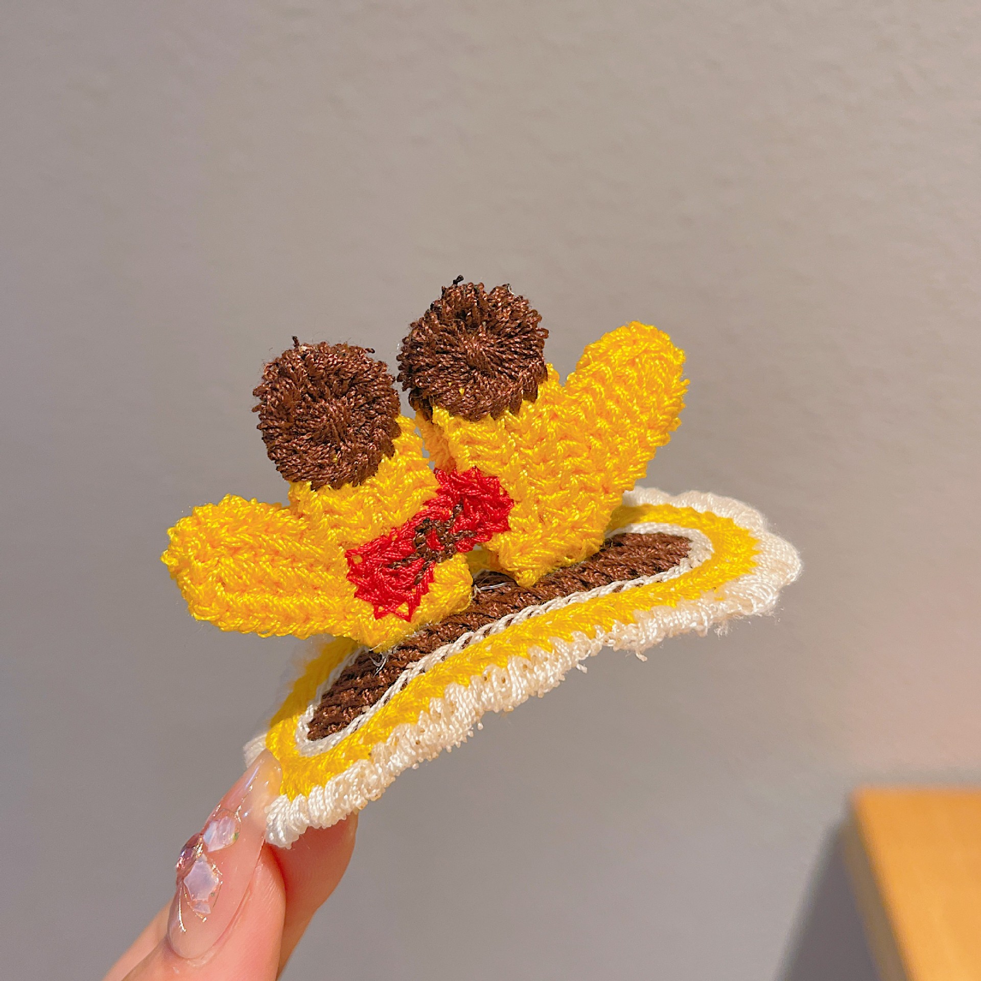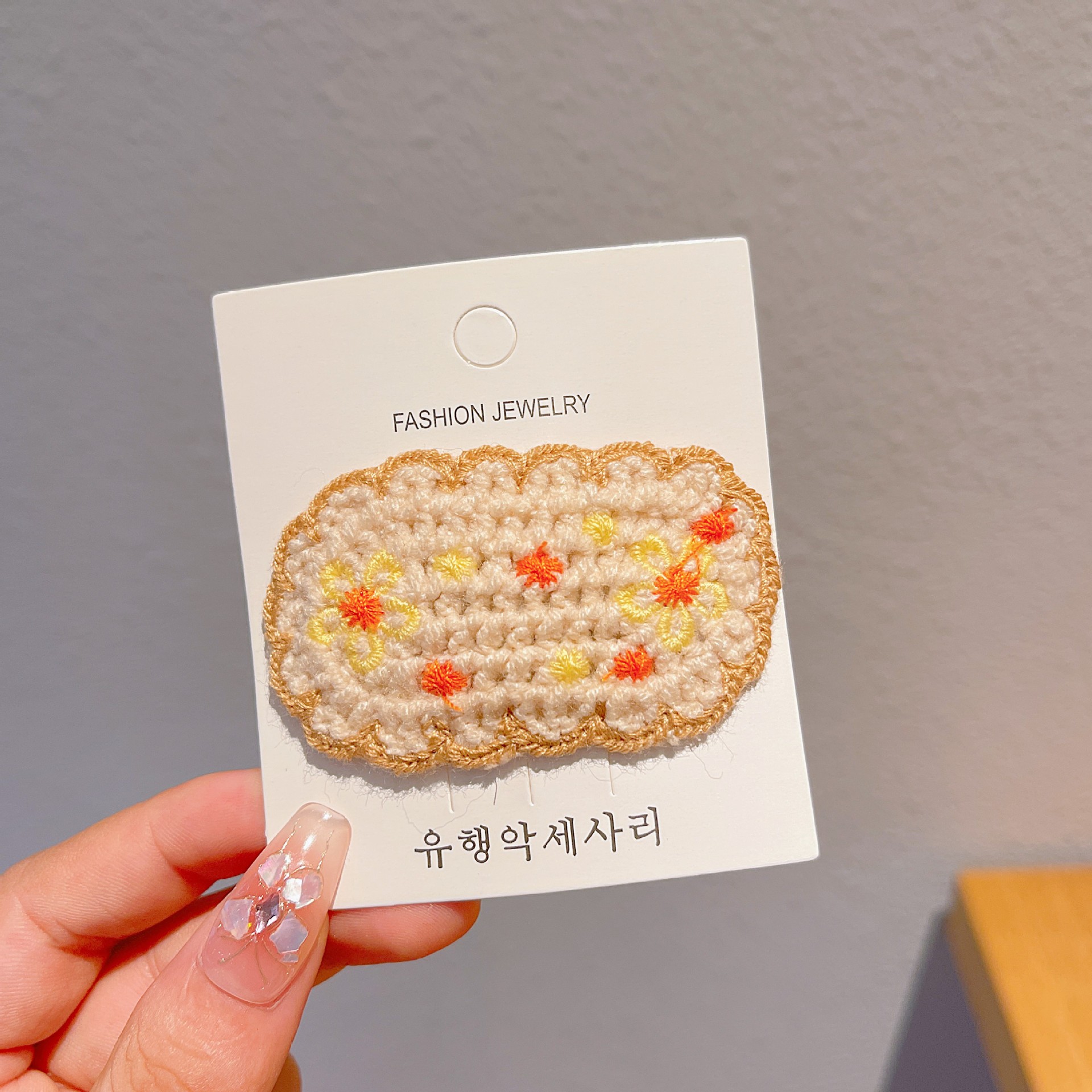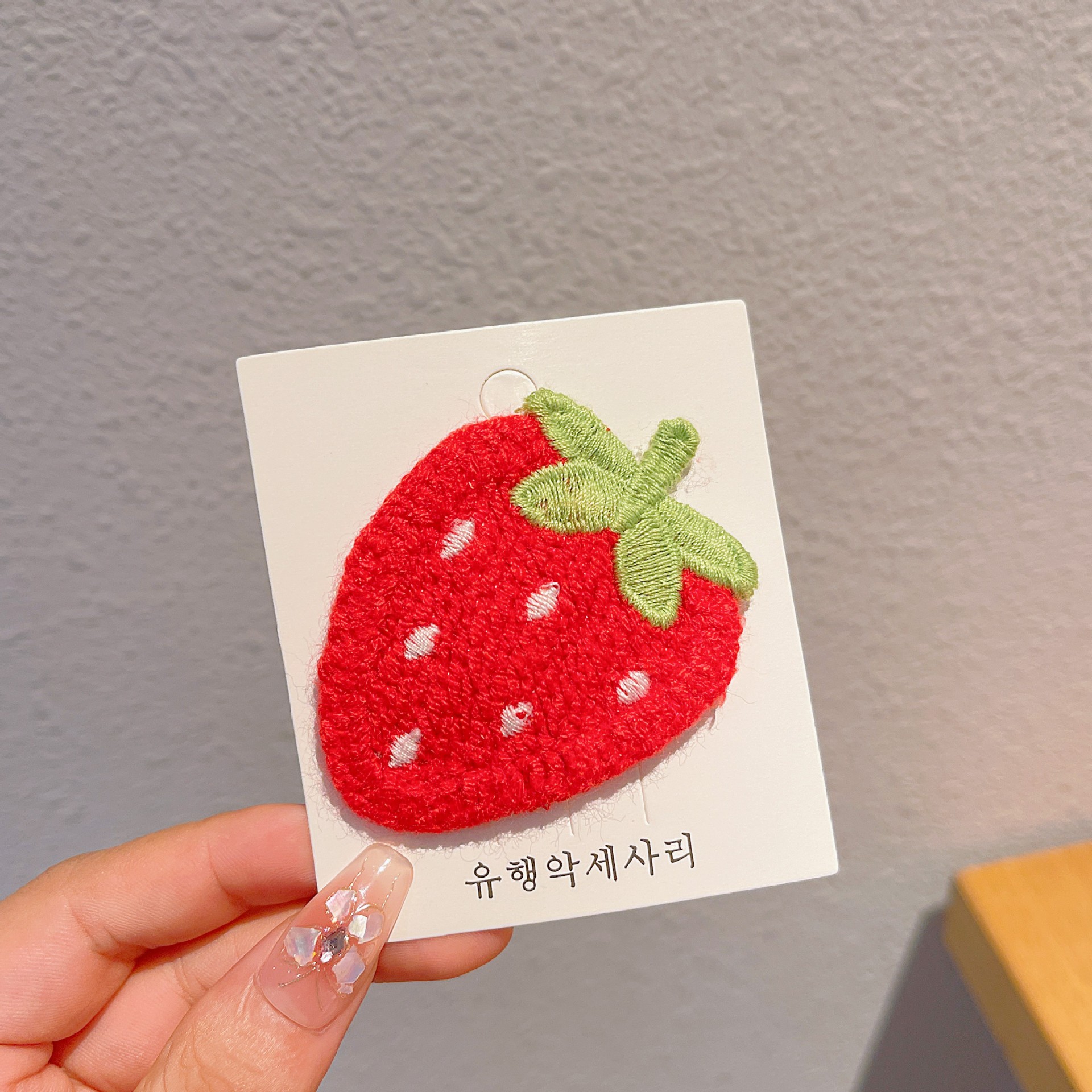 韩系毛线针织bb夹可爱风包布小动物卡通水果图案刘海夹少女心发夹