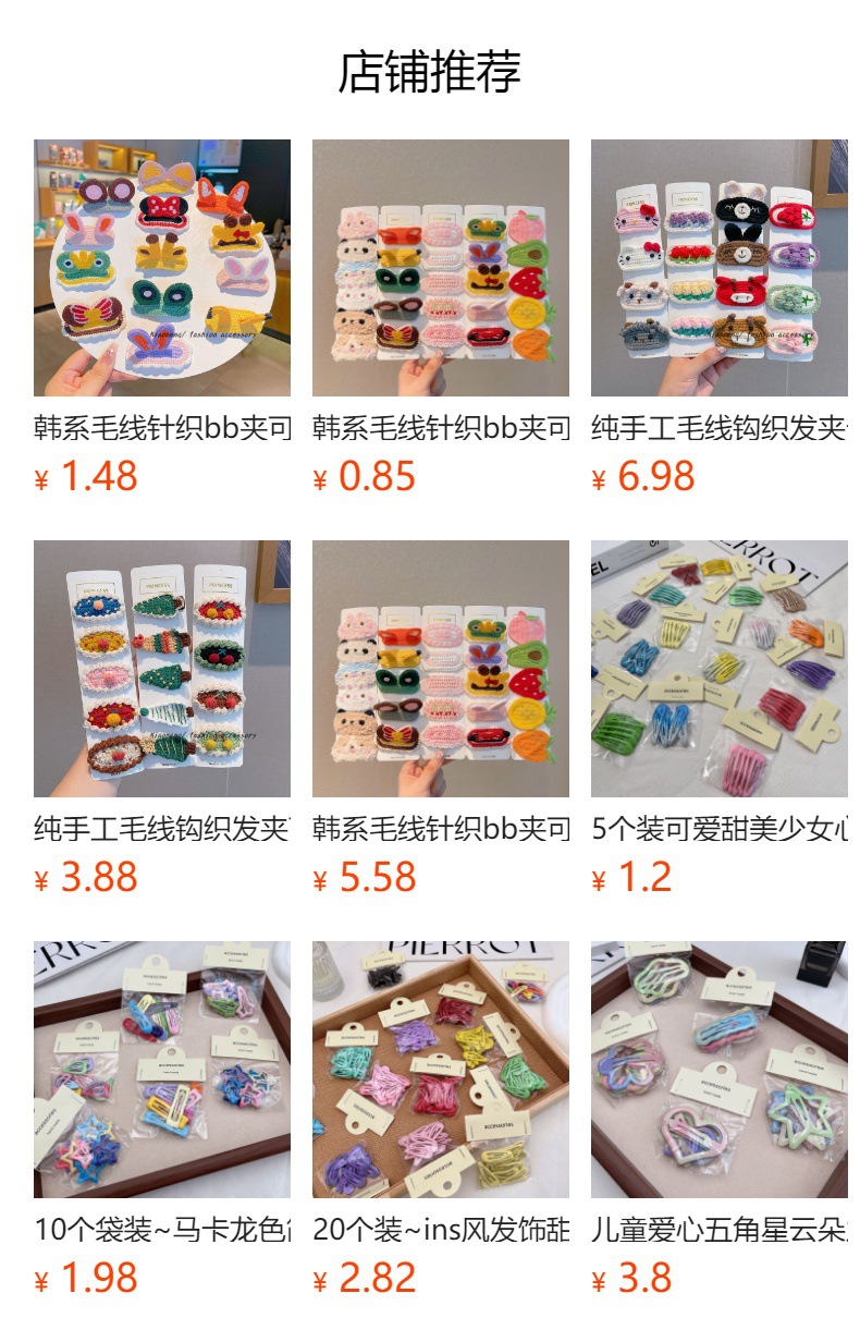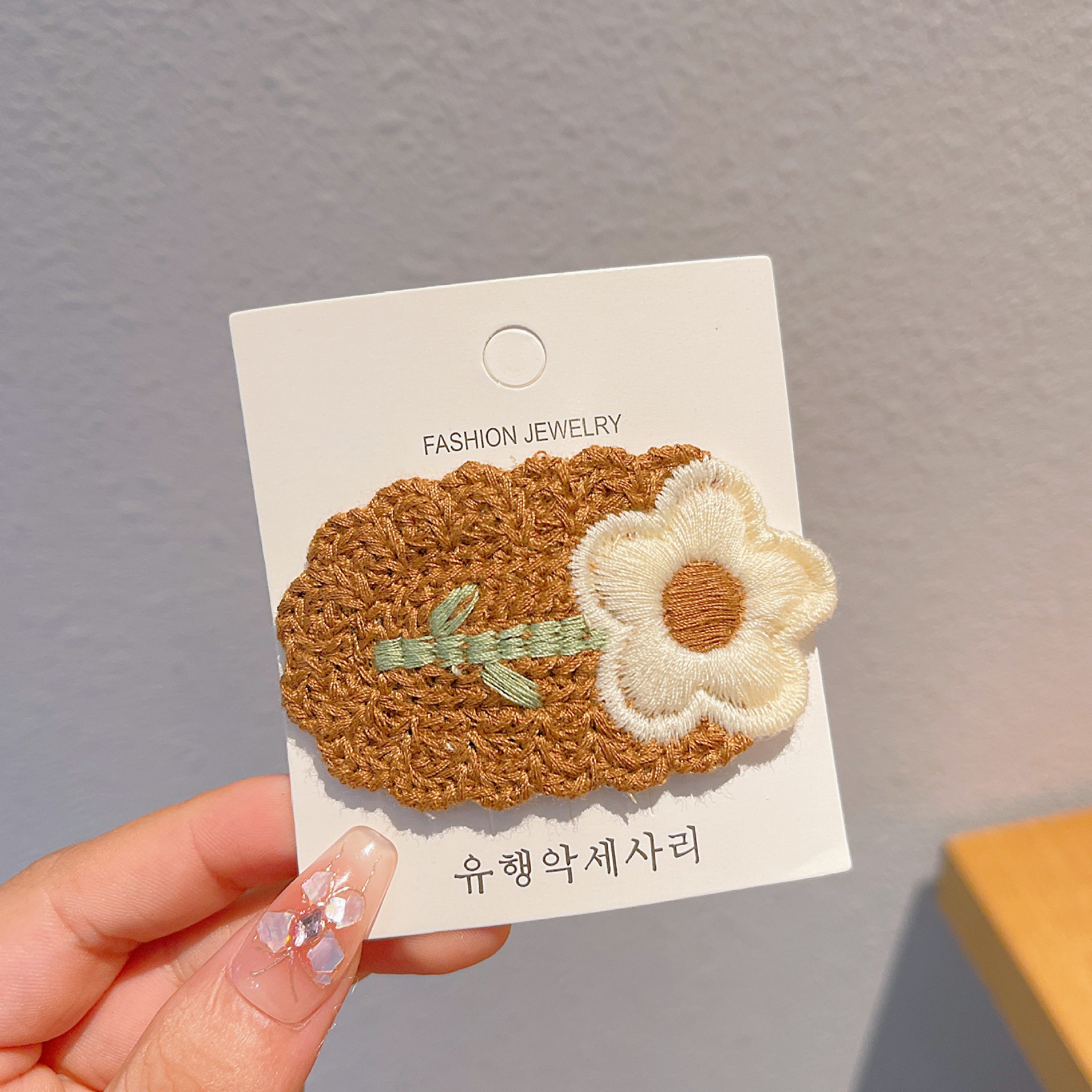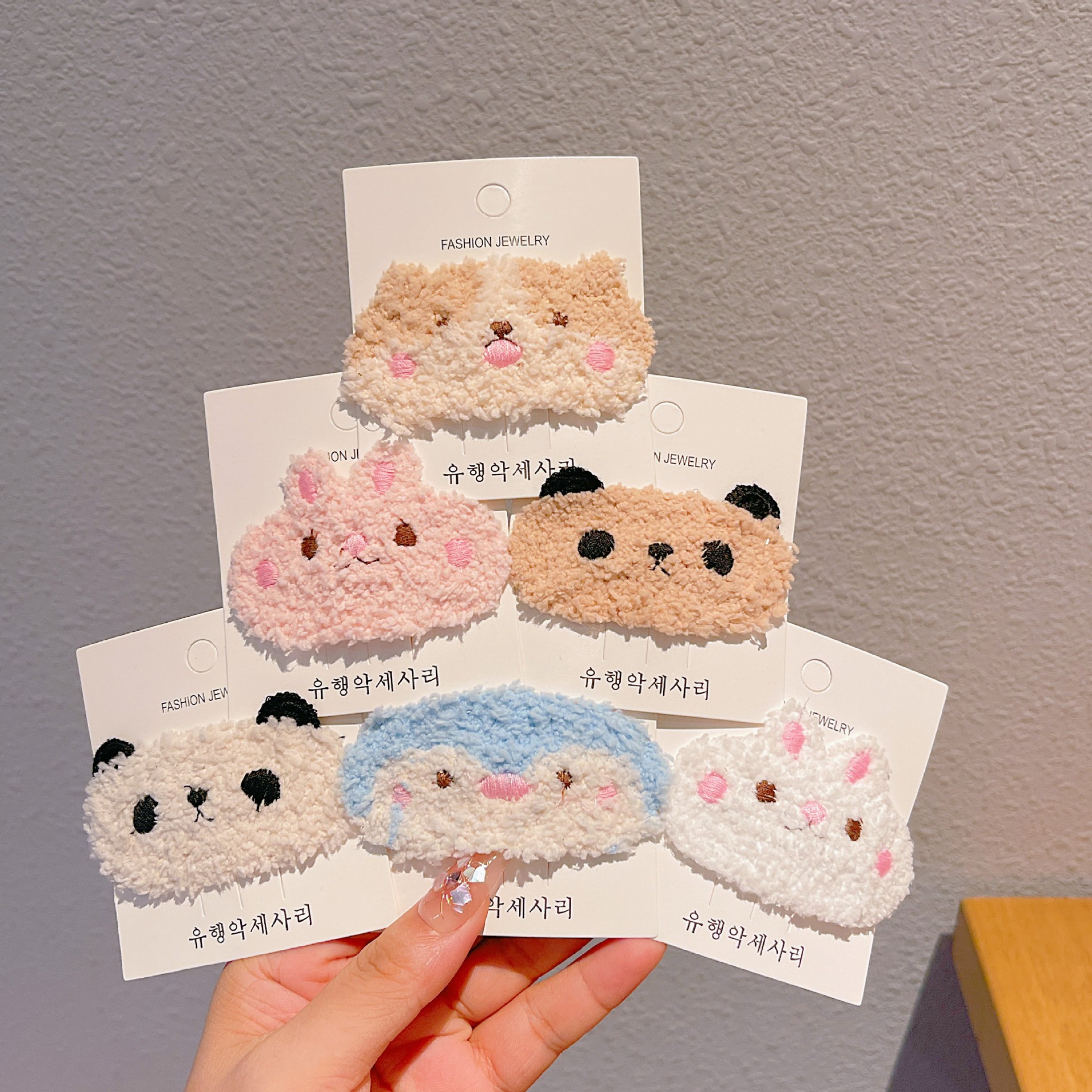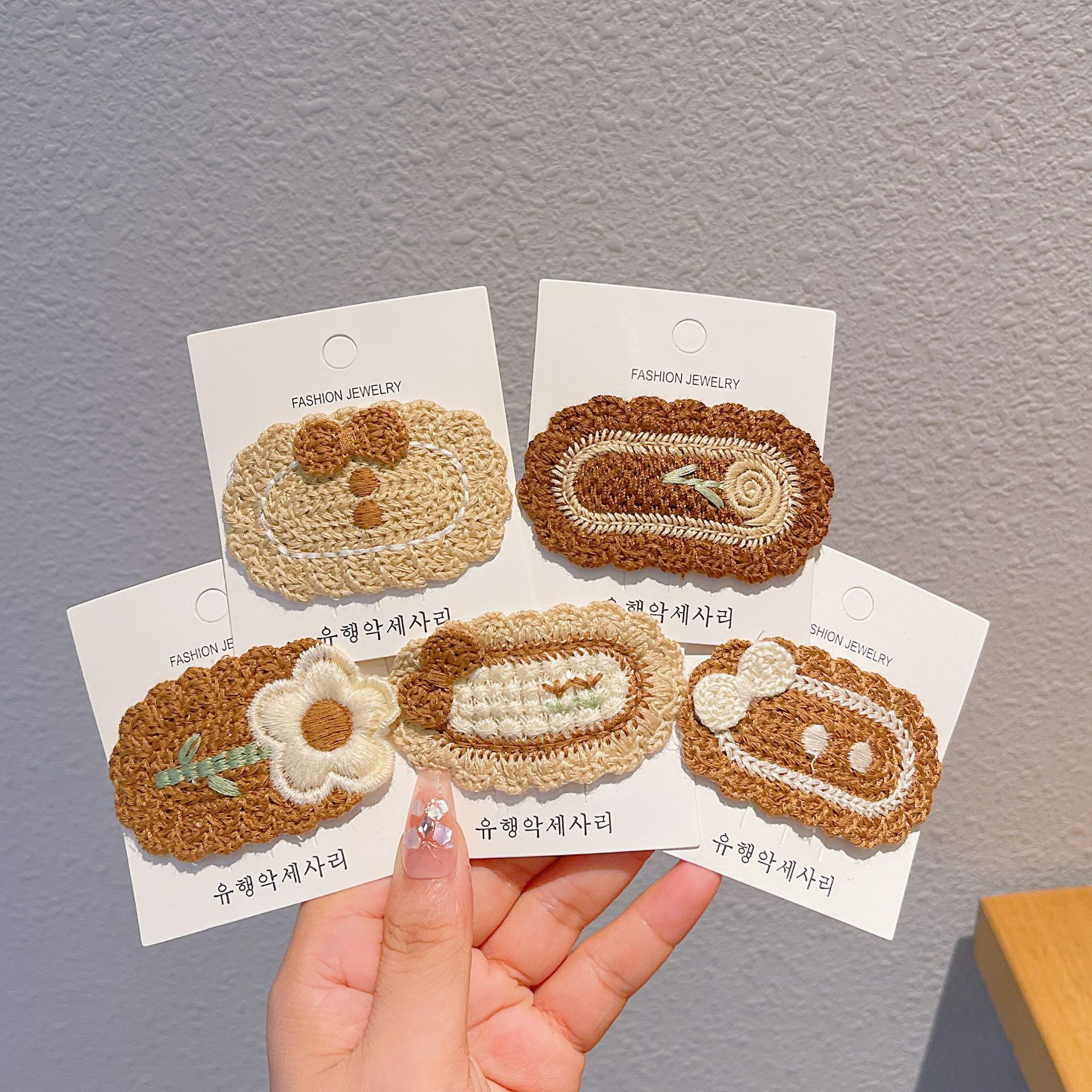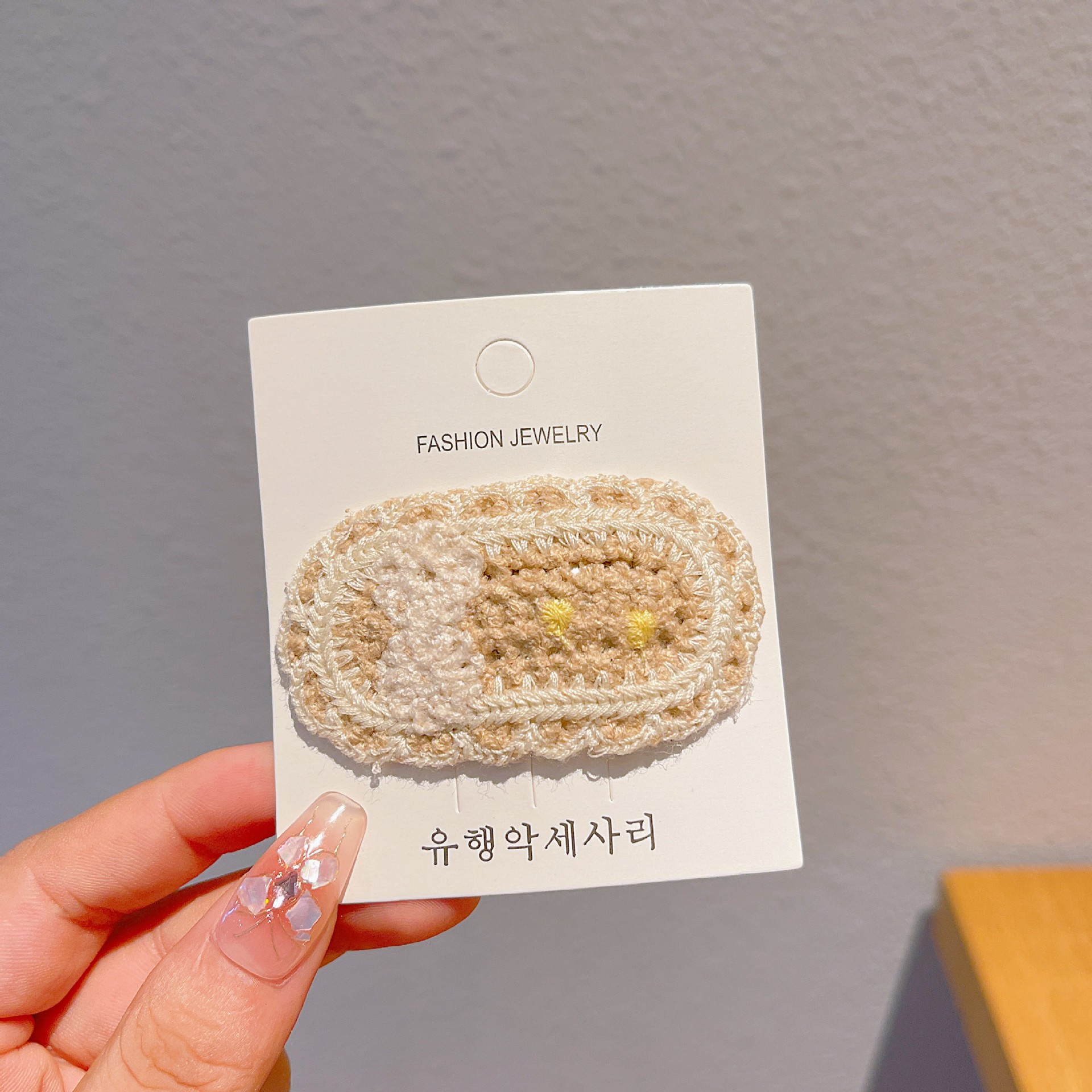 韩系毛线针织bb夹可爱风包布小动物卡通水果图案刘海夹少女心发夹