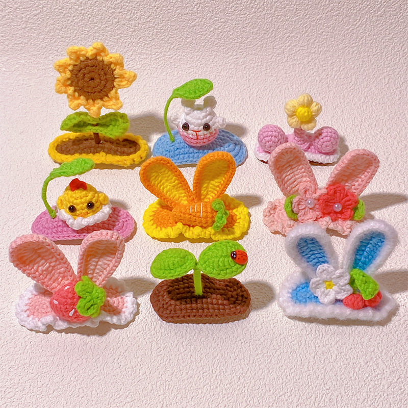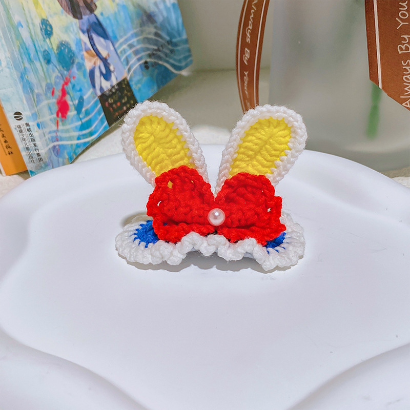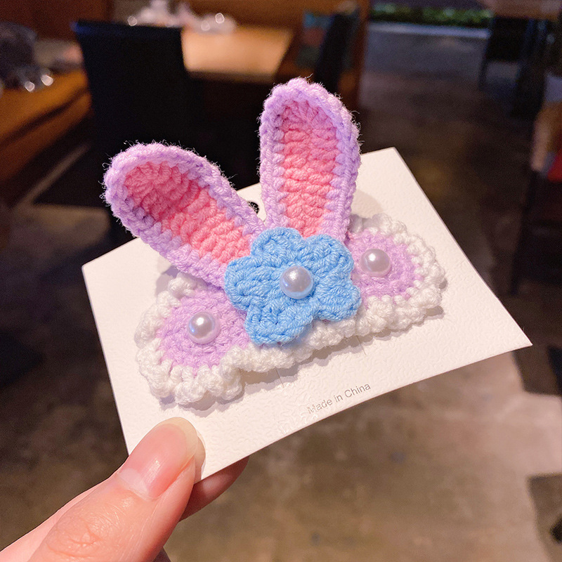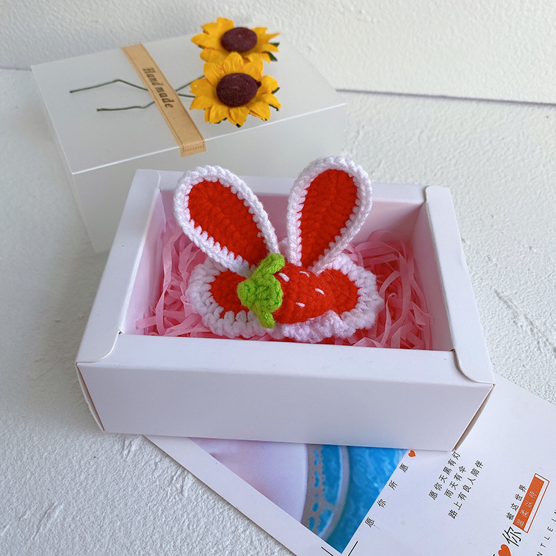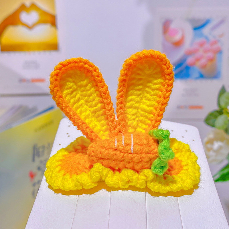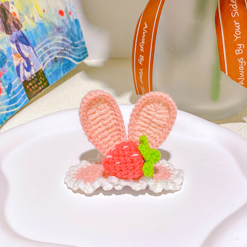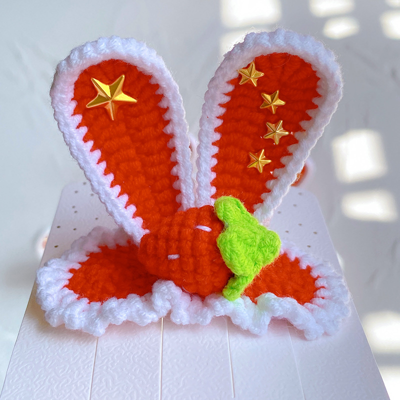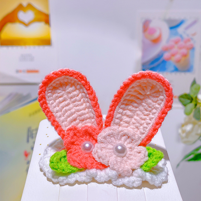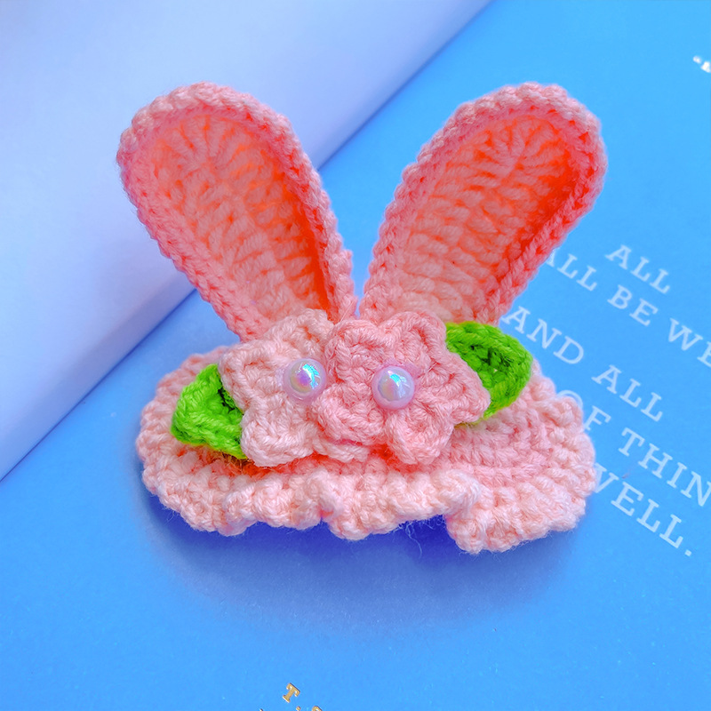 纯手工diy毛线钩织发夹 可爱兔耳朵小草立体发卡 星黛露毛线BB夹