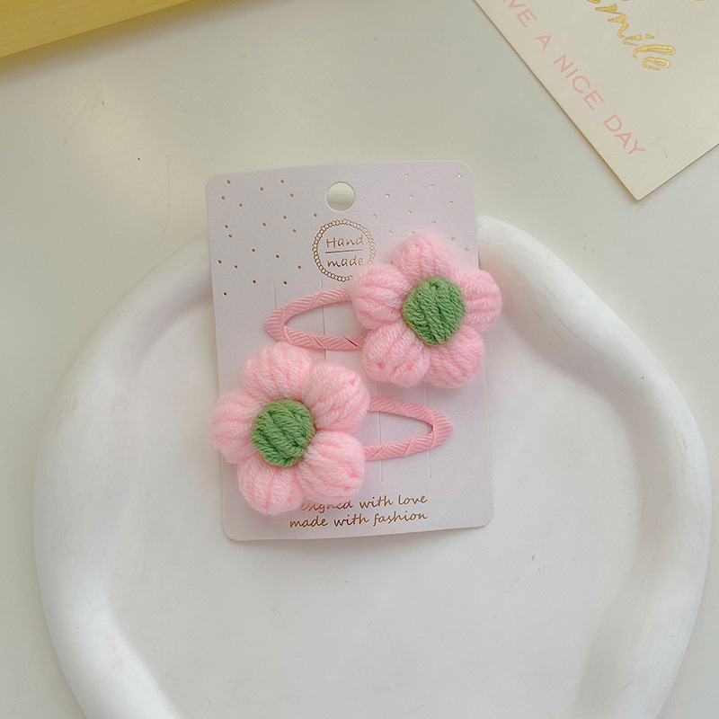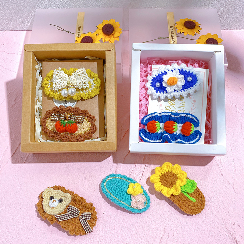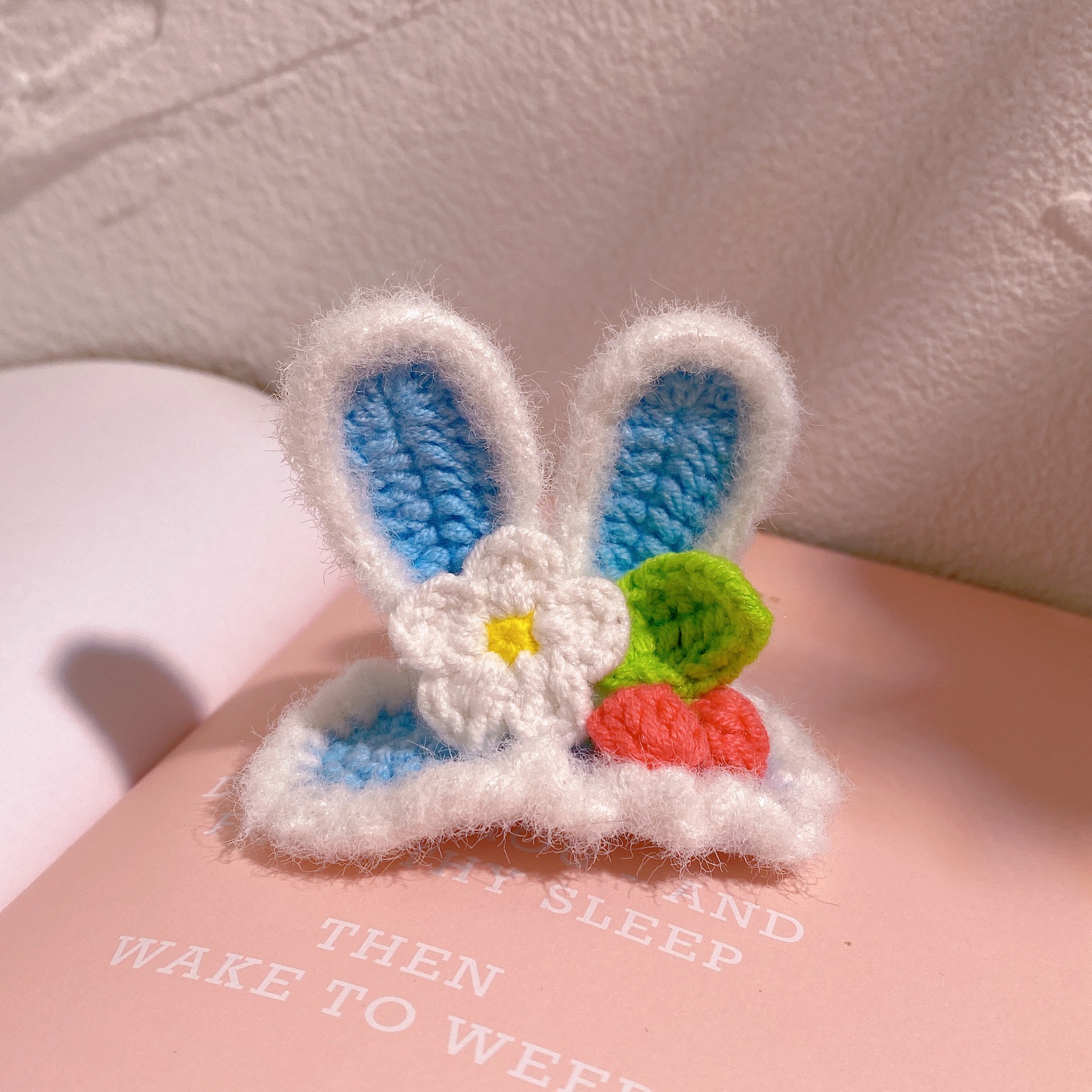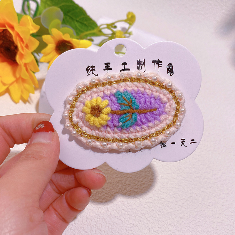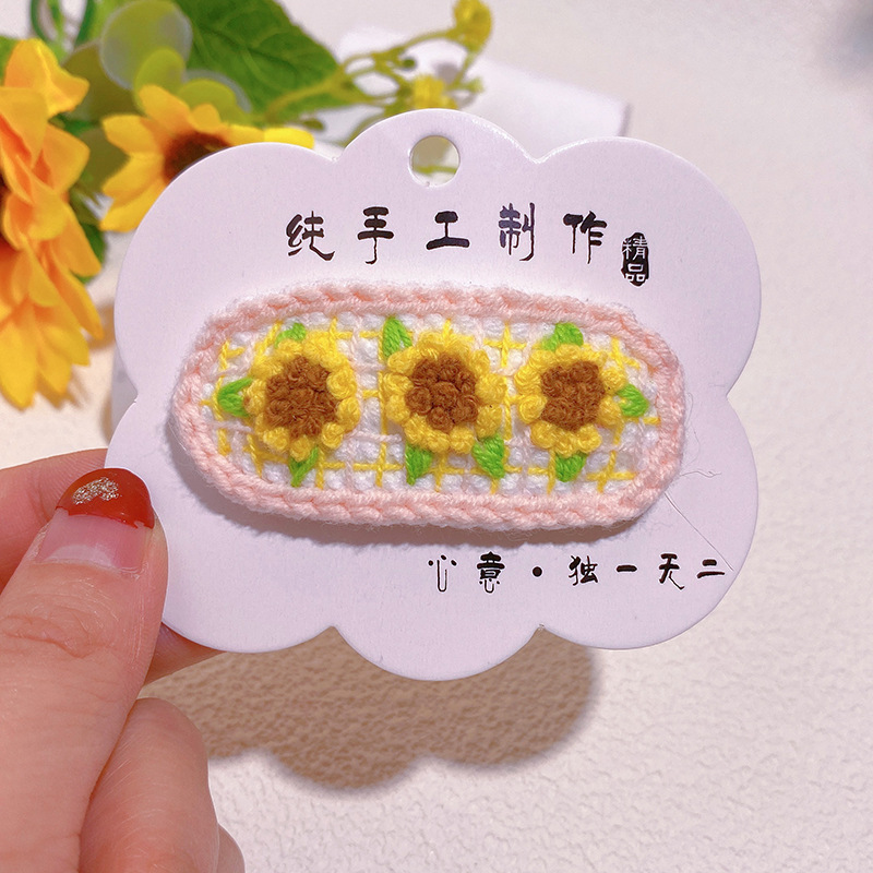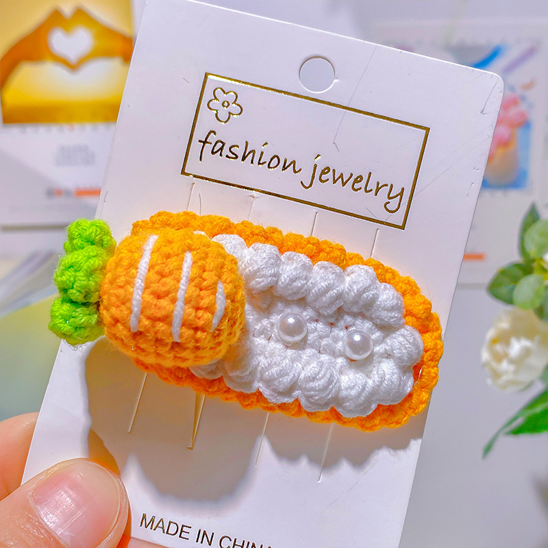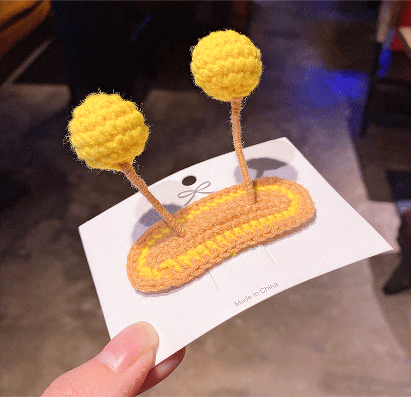 纯手工diy毛线钩织发夹 可爱兔耳朵小草立体发卡 星黛露毛线BB夹
