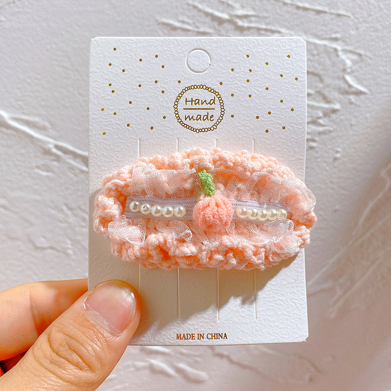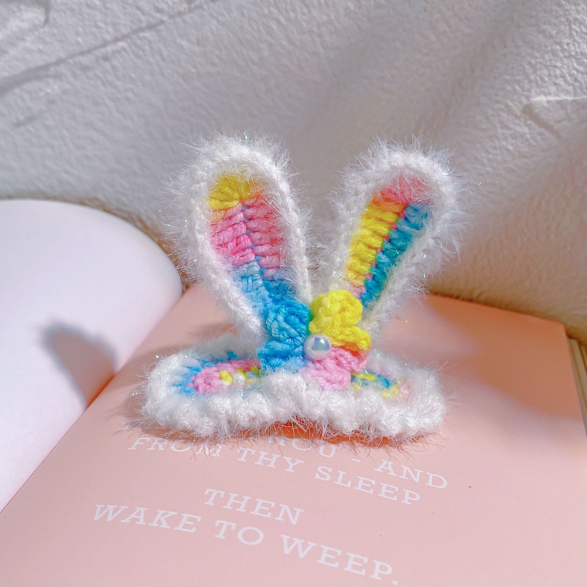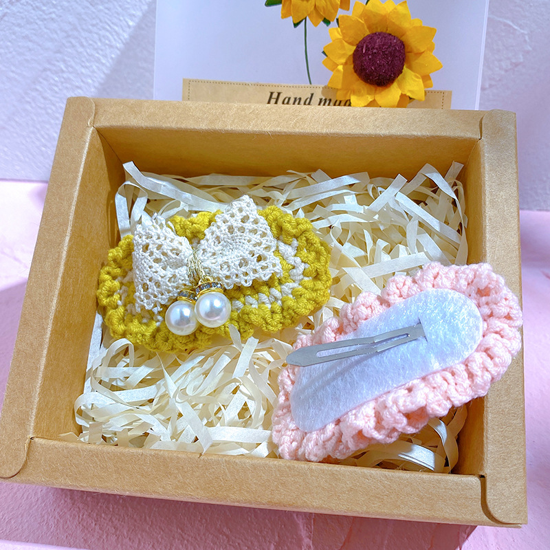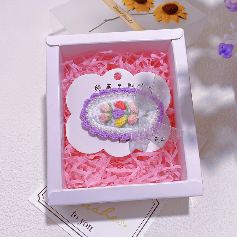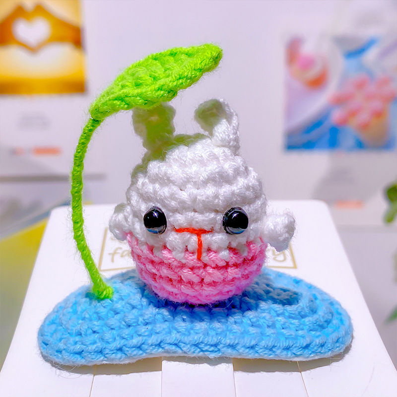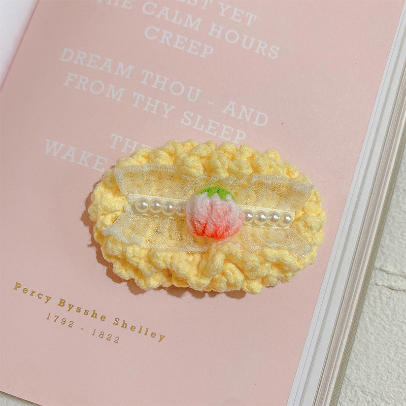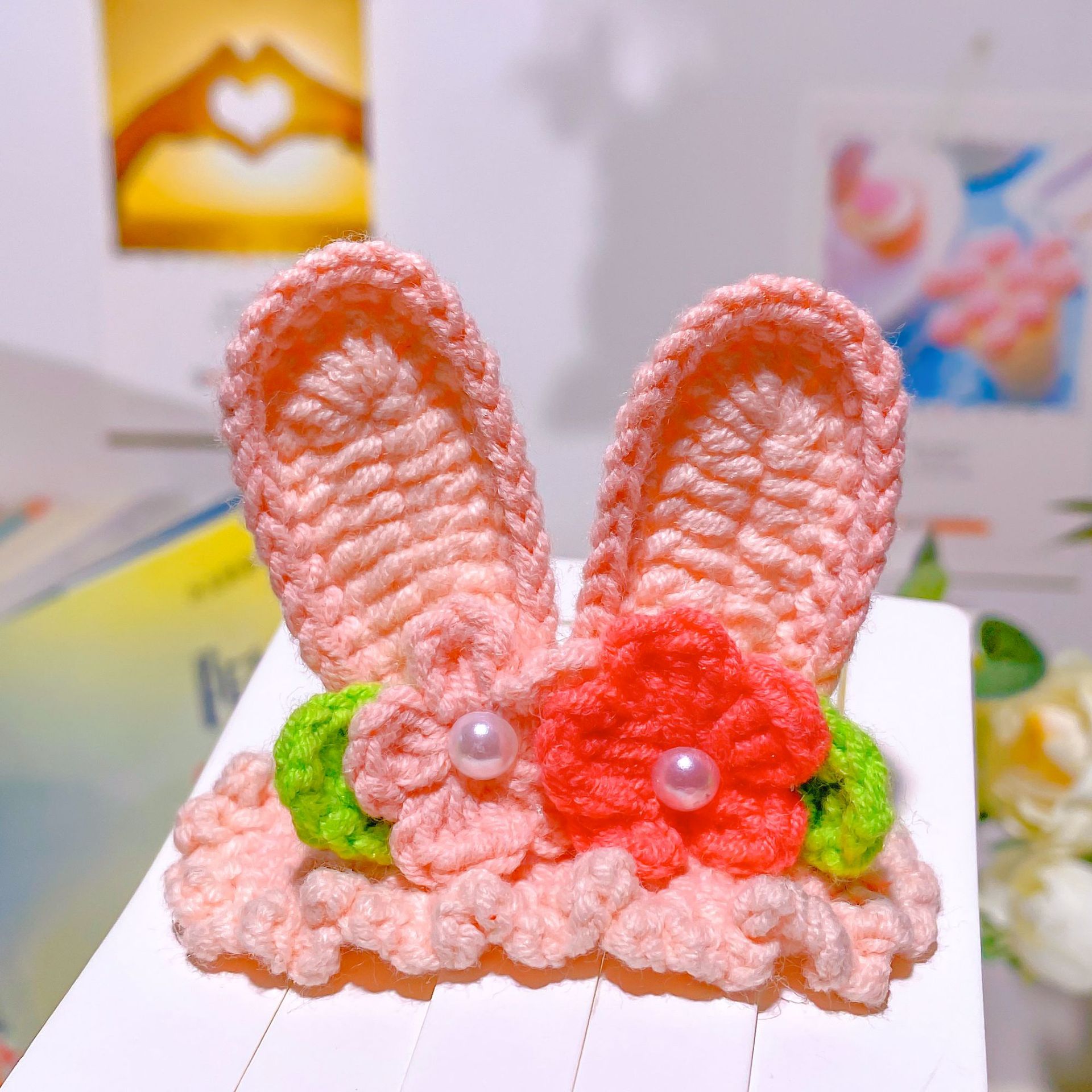 纯手工diy毛线钩织发夹 可爱兔耳朵小草立体发卡 星黛露毛线BB夹