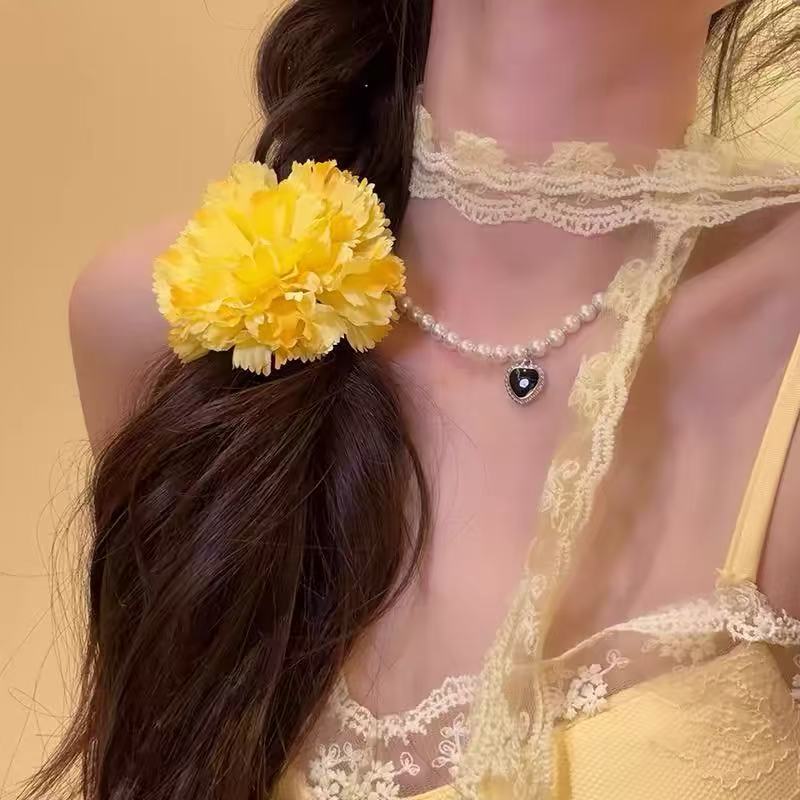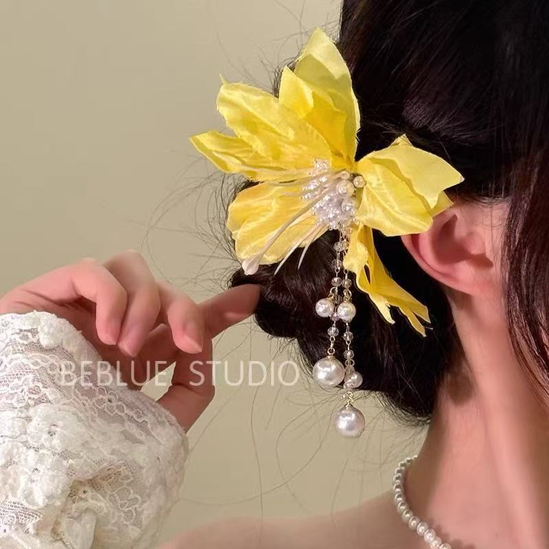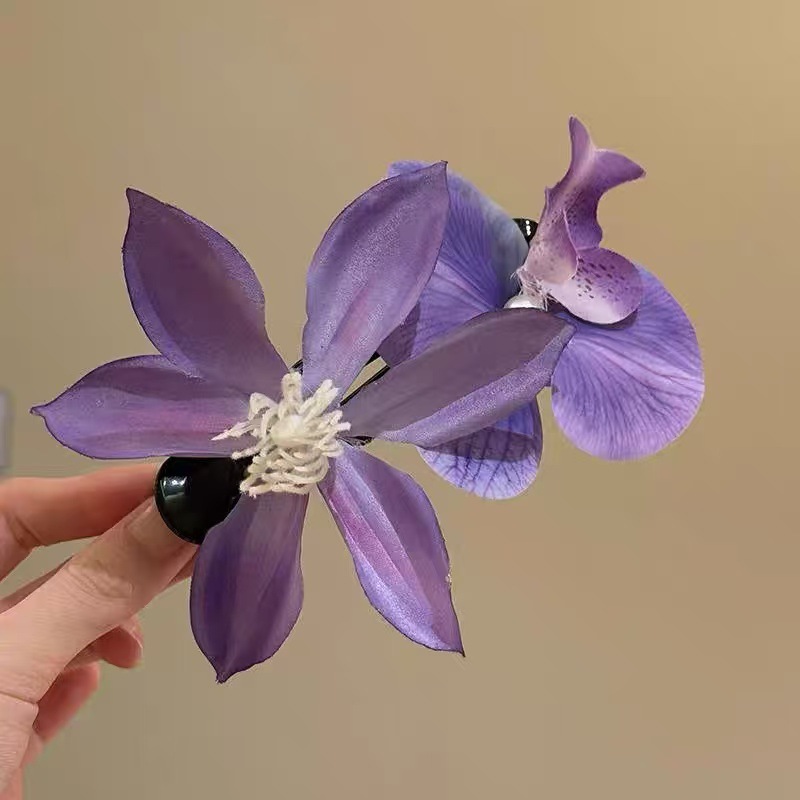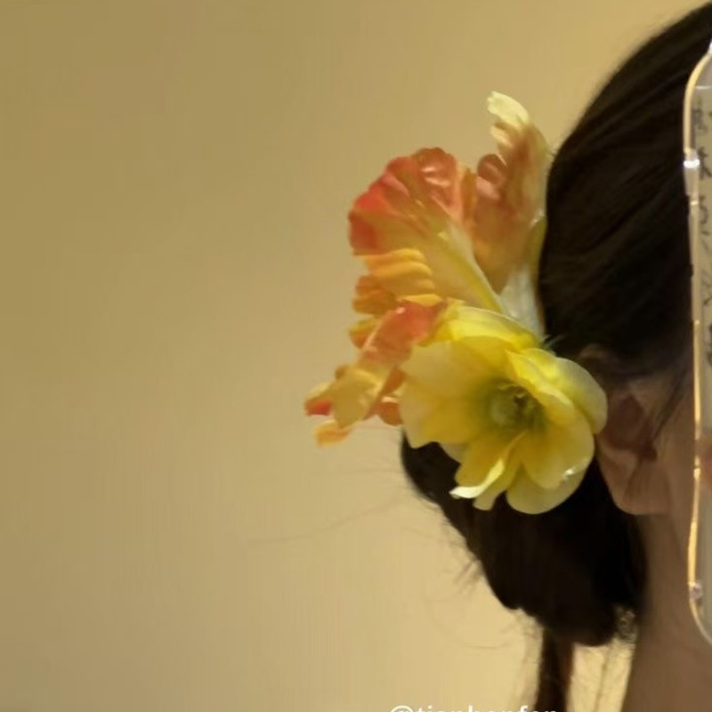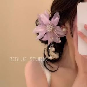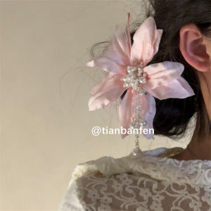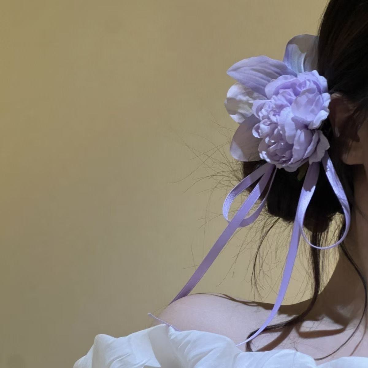 早春款新中式温柔粉色花朵发夹复古盘发丸子头簪花夹子氛围感发饰
