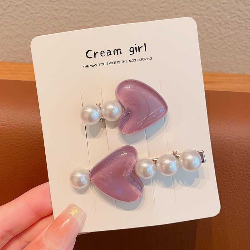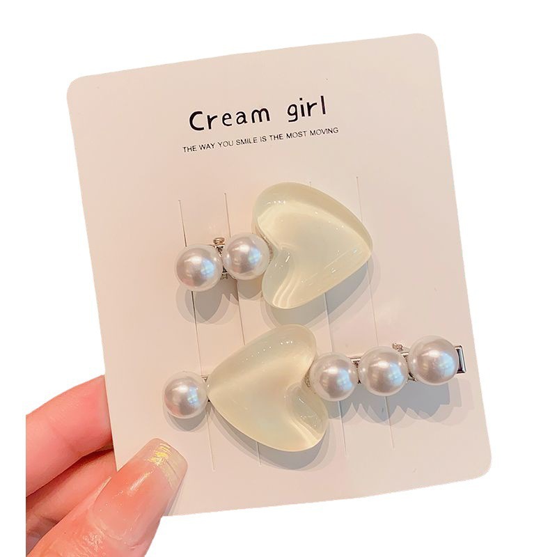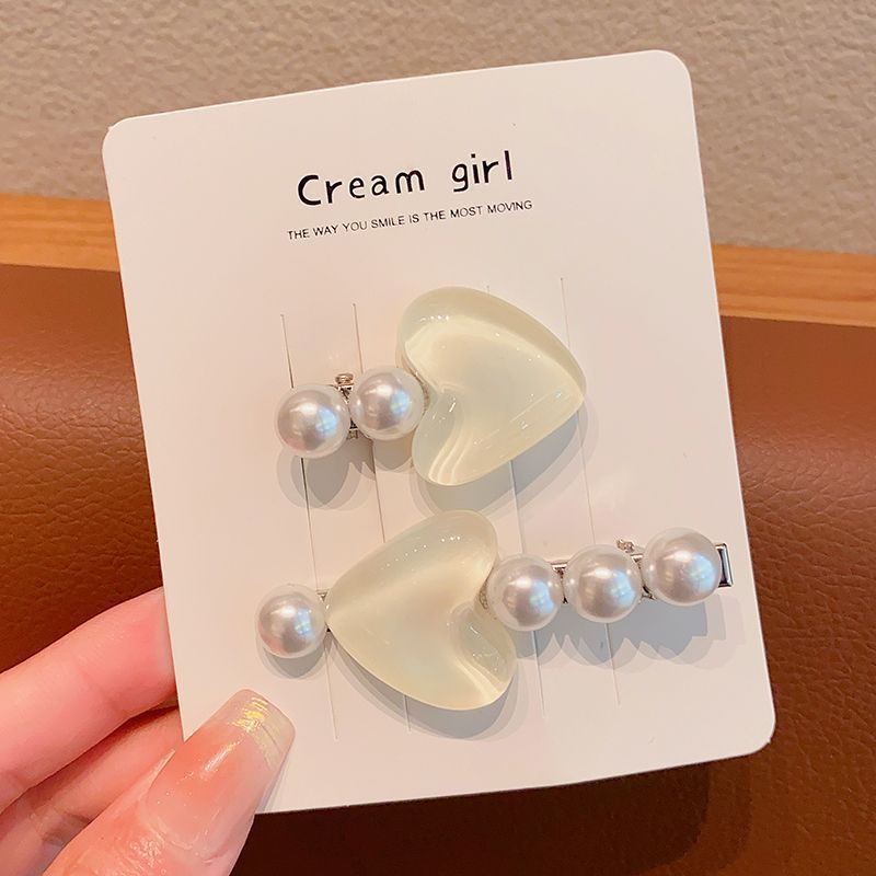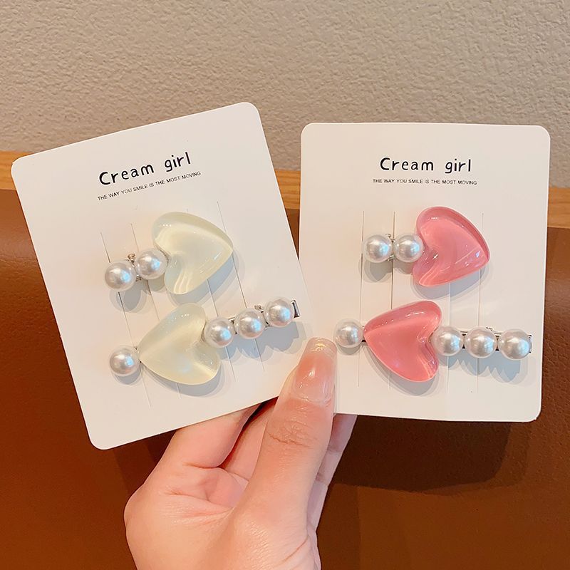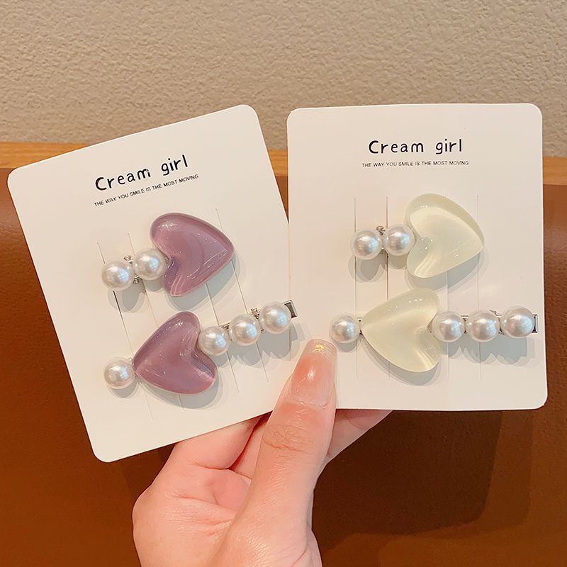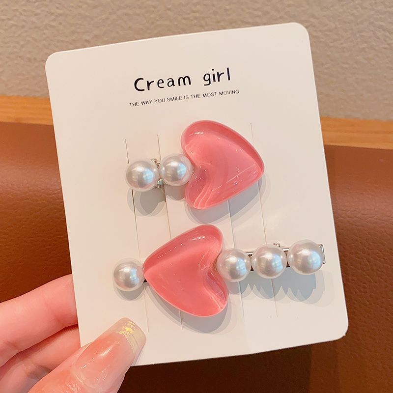 人鱼泡泡 超仙法式波光爱心珍珠发夹 高级感小众气质甜美刘海边夹