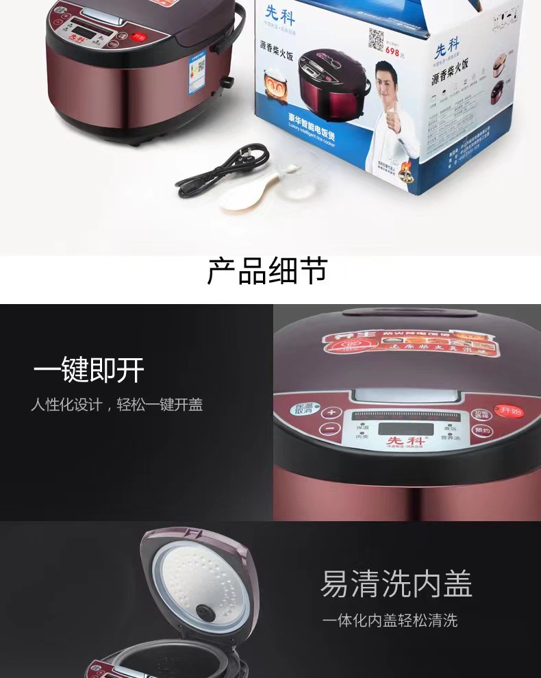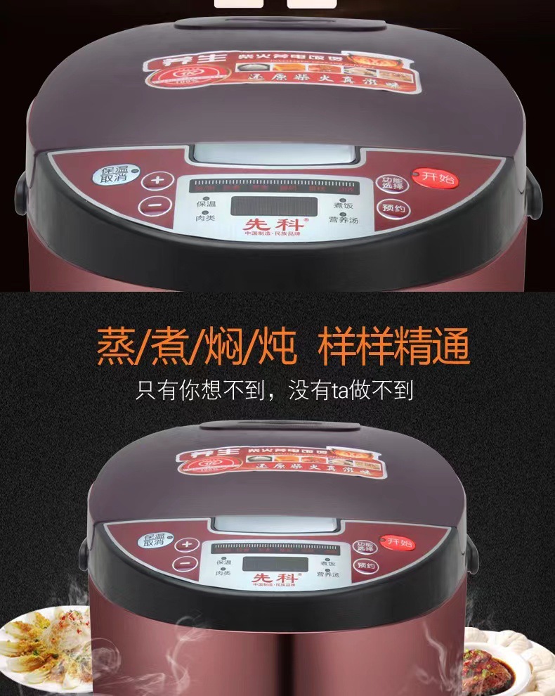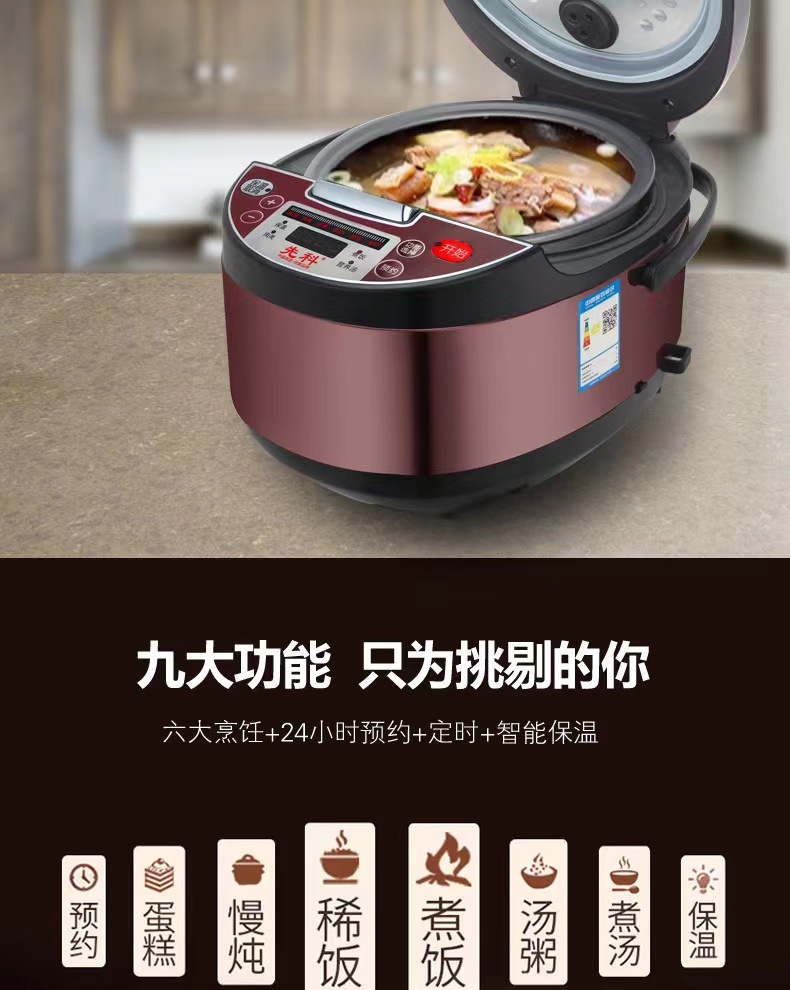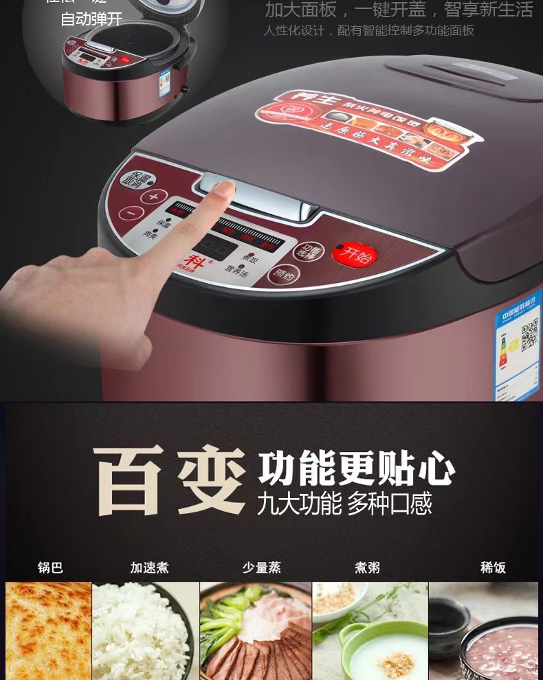先科家用5L电饭煲大容量电饭锅多功能预约智能快煮饭4-5人1件代发