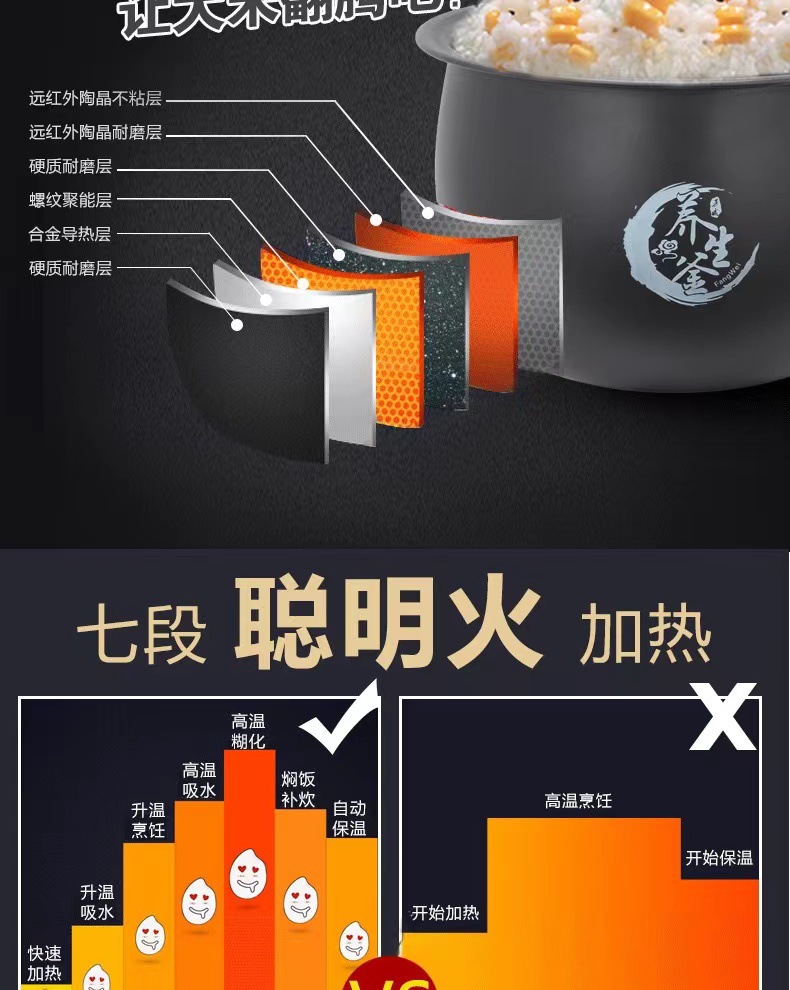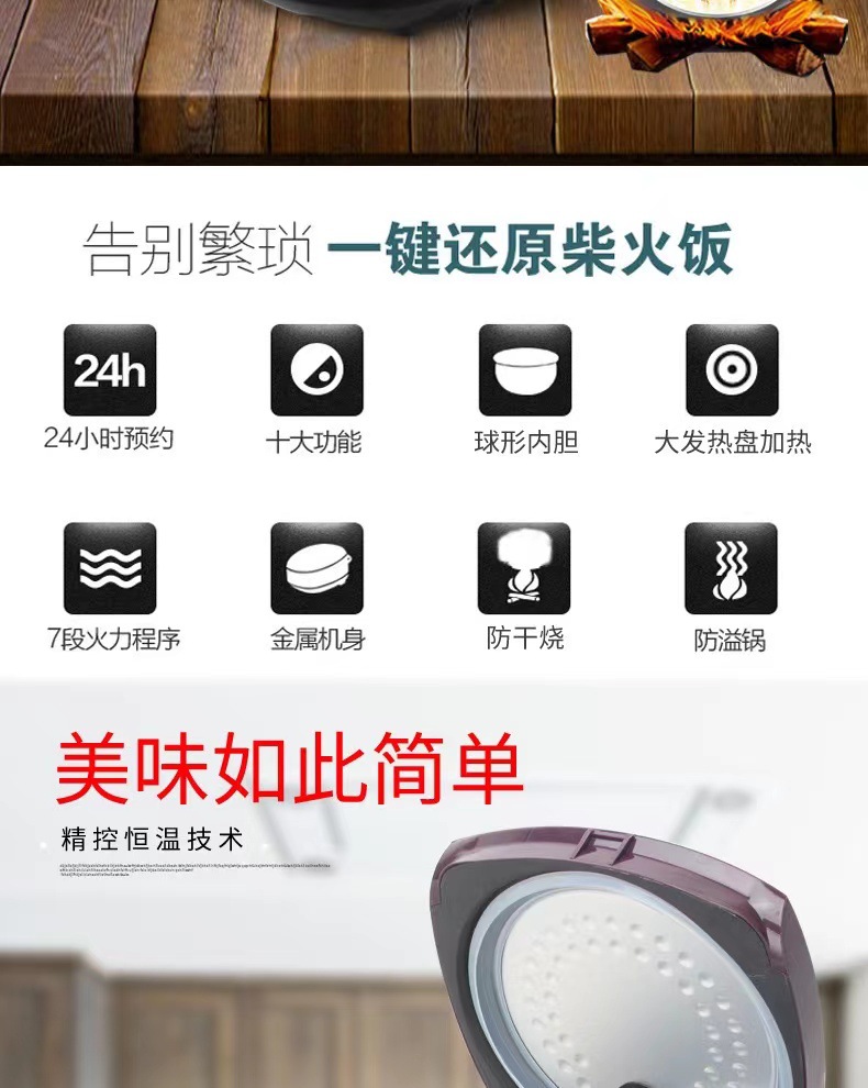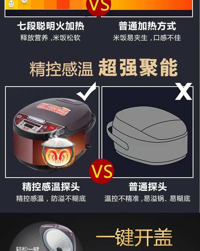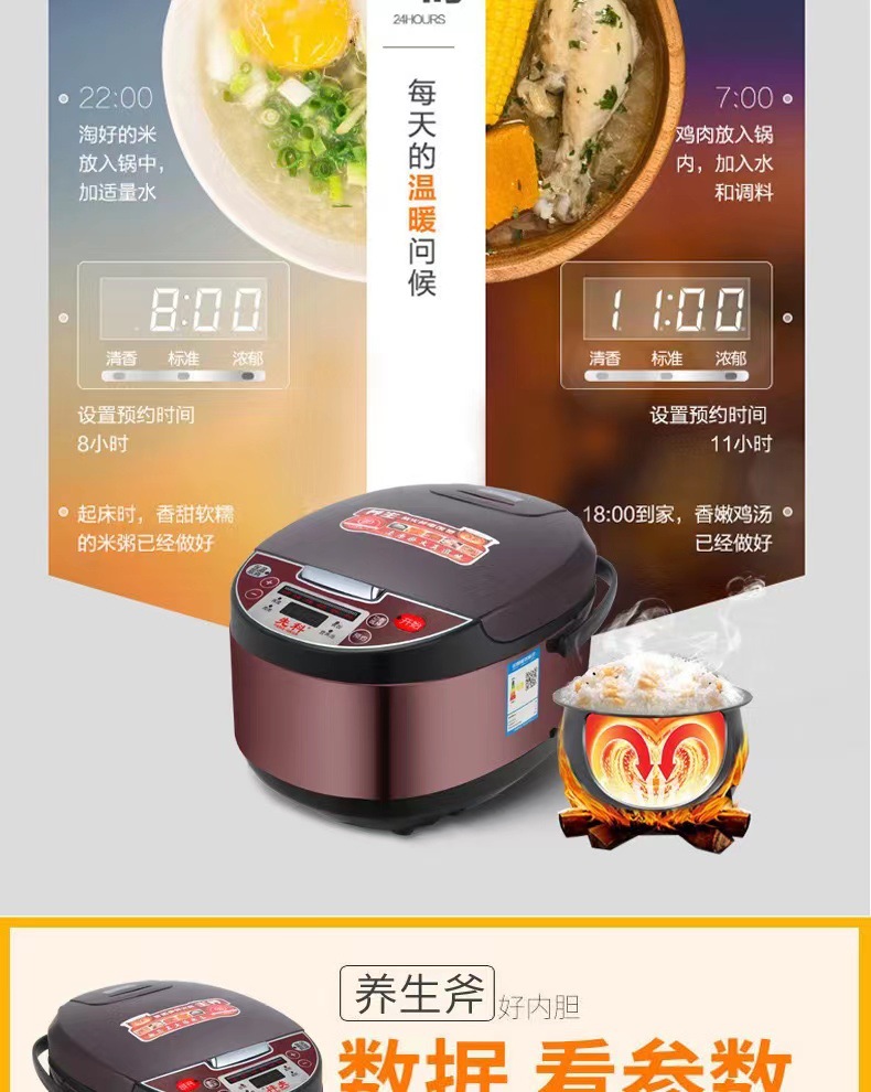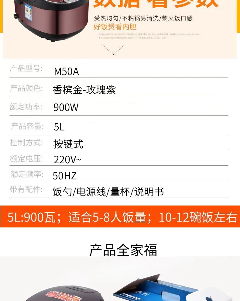 先科家用5L电饭煲大容量电饭锅多功能预约智能快煮饭4-5人1件代发