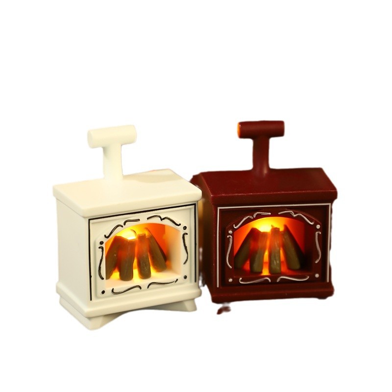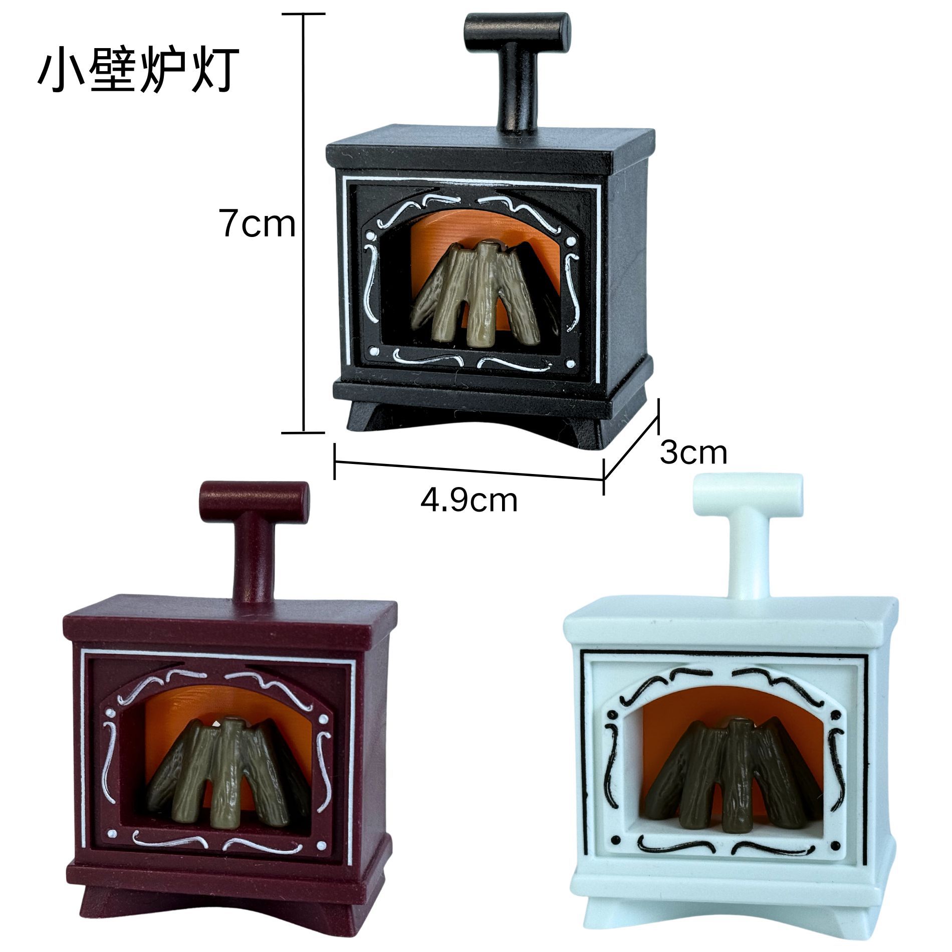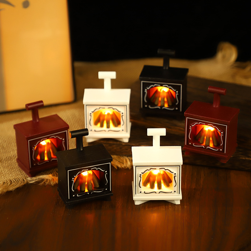 跨境复古圣诞小壁炉dollhouse娃娃屋微缩氛围摆件迷你电子蜡烛灯
