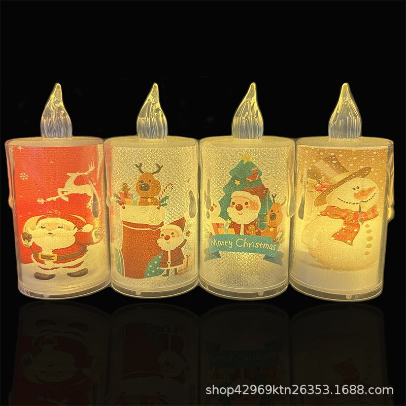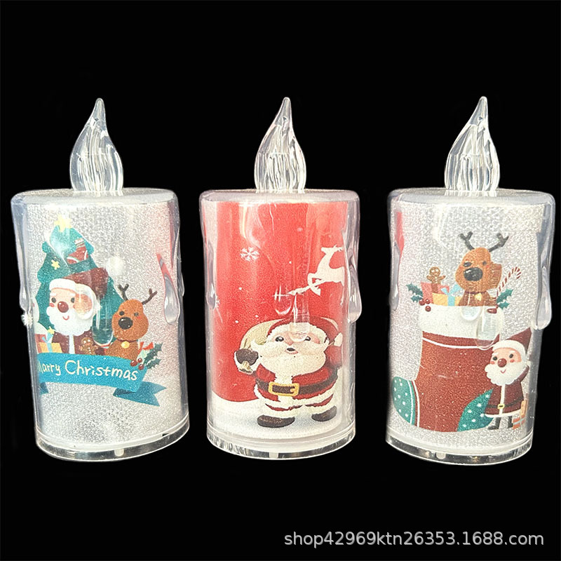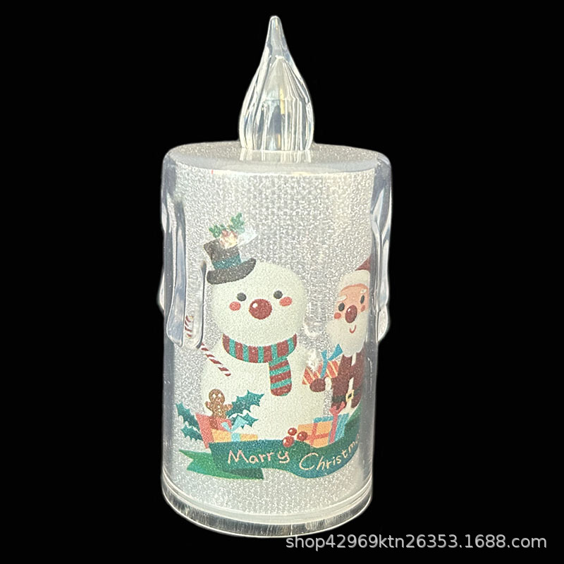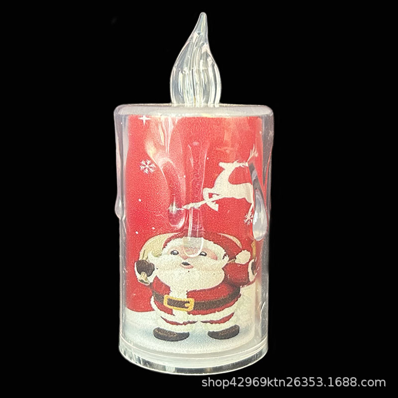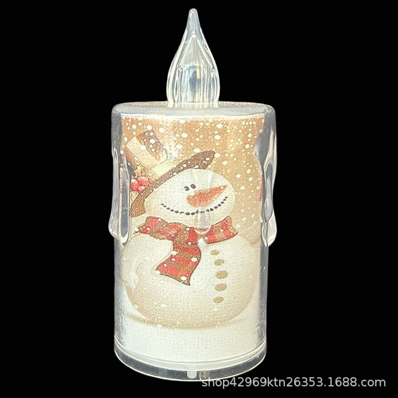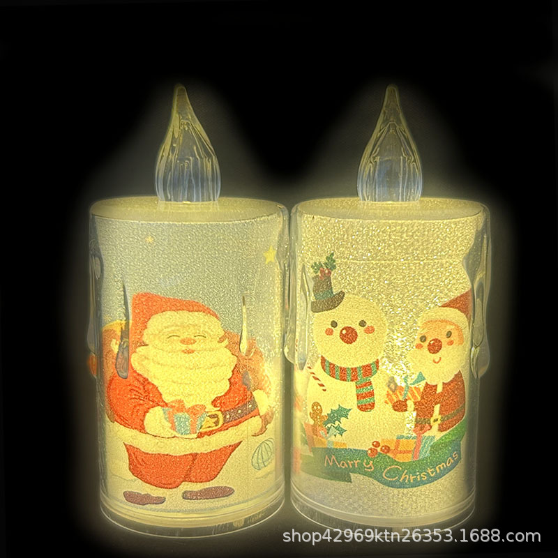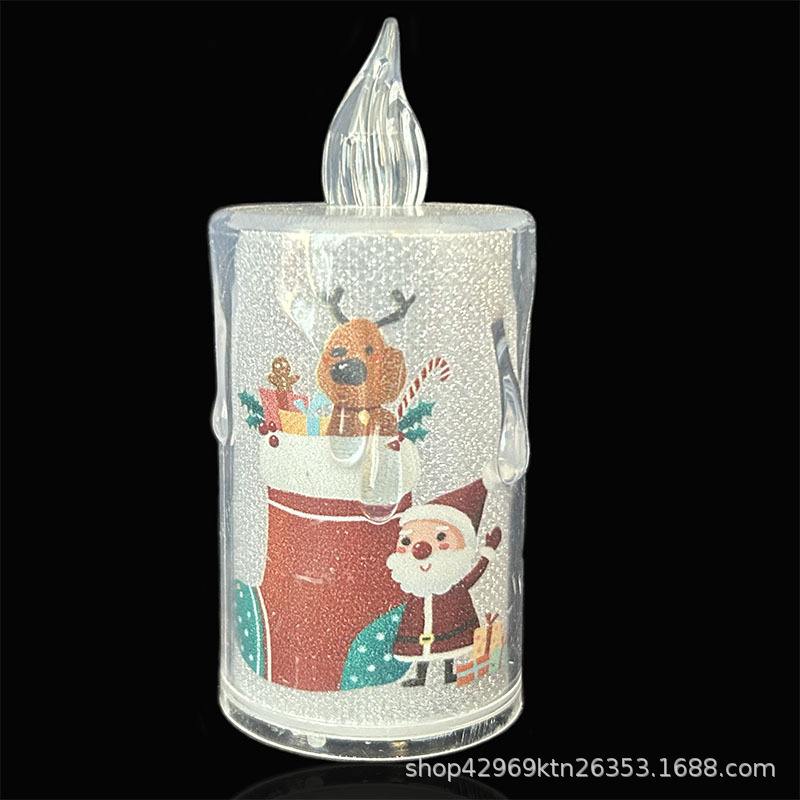 LED电子蜡烛灯 透明流泪亚克力水晶圣诞蜡烛圣诞节图案装饰工艺品