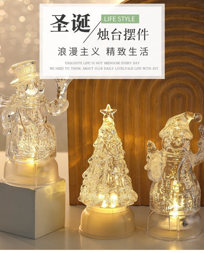 圣诞树圣诞老人电子蜡烛灯亚克力小夜灯圣诞节礼品桌面氛围小摆件