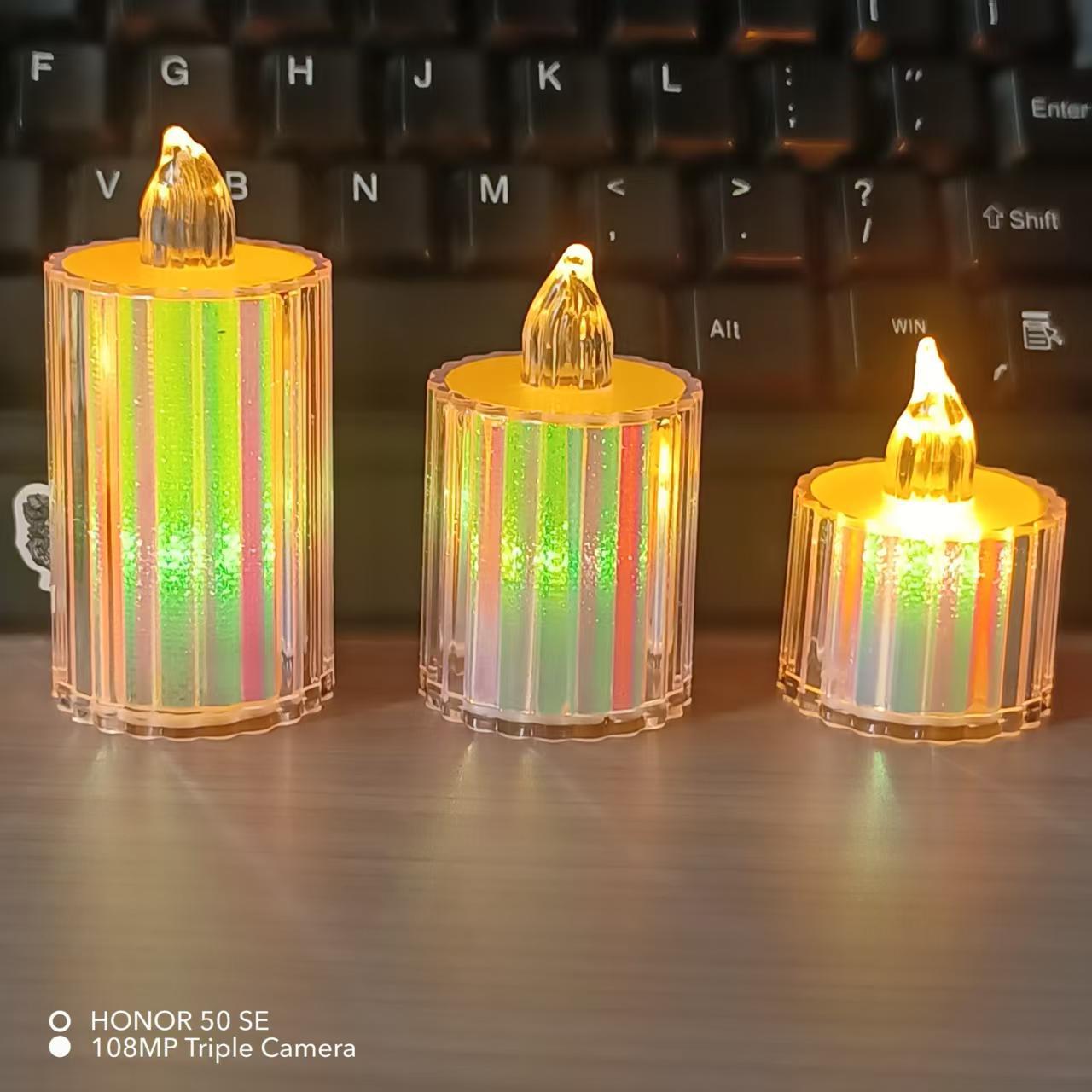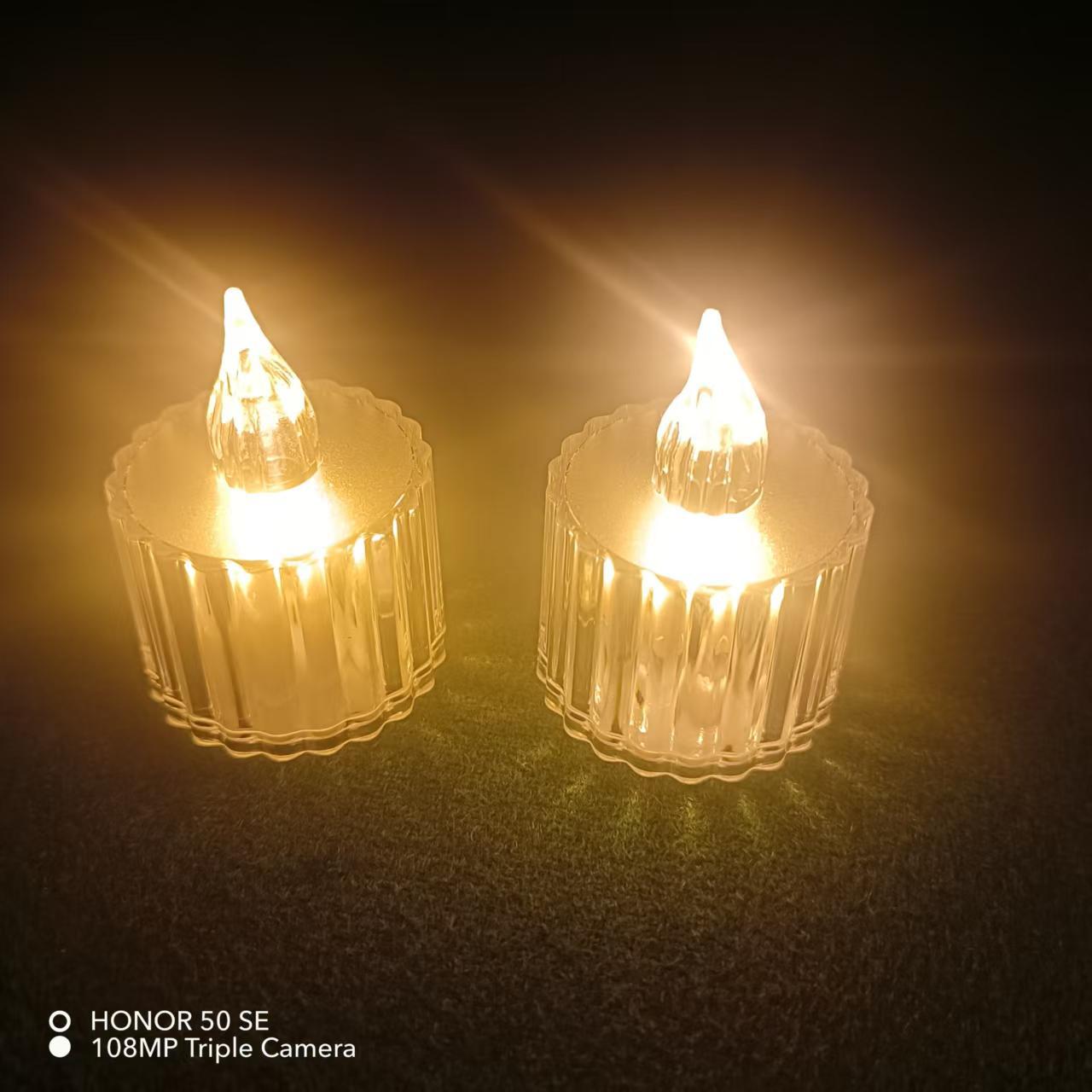 跨境 LED仿真透明电子蜡烛灯竖纹小茶蜡折射茶蜡圣诞婚庆氛围布置