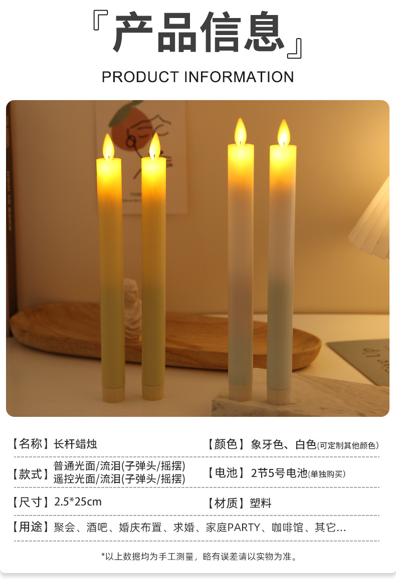 led遥控电子蜡烛长杆蜡烛婚礼装饰 跨境情人节生日仿真假蜡烛灯