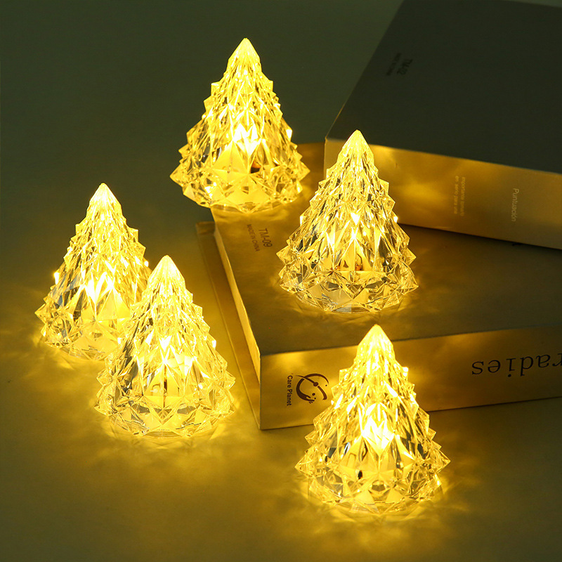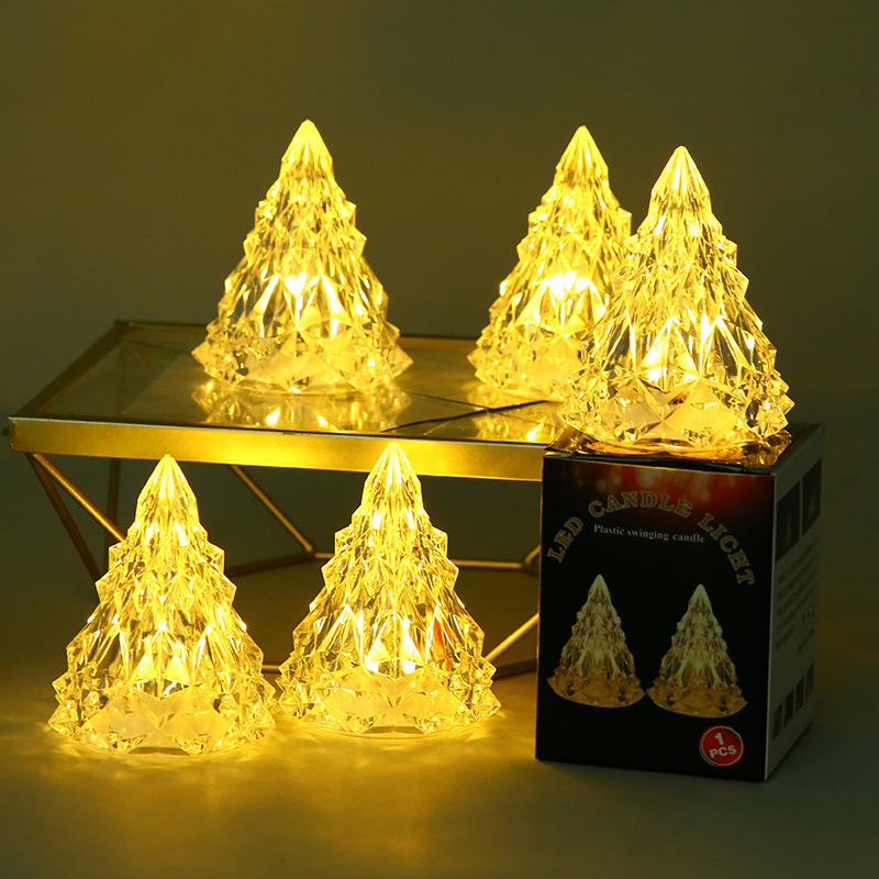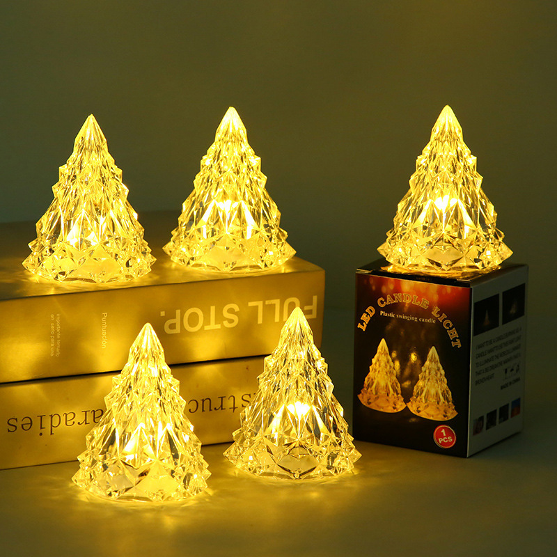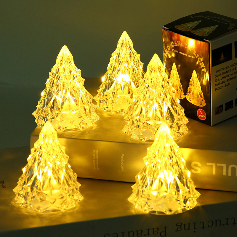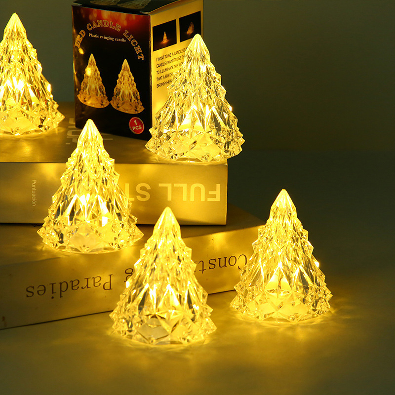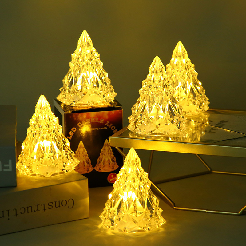 圣诞节装饰冰山氛围小夜灯 led电子蜡烛亚克力水晶灯生日礼物批发