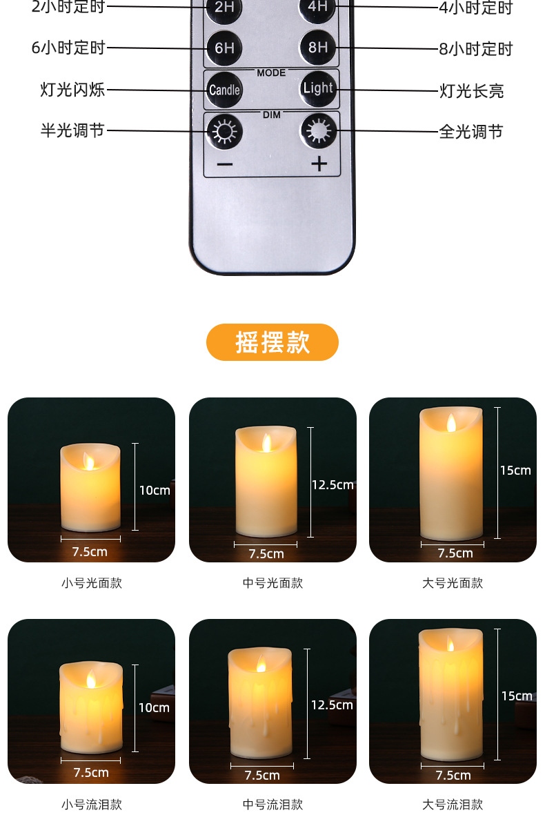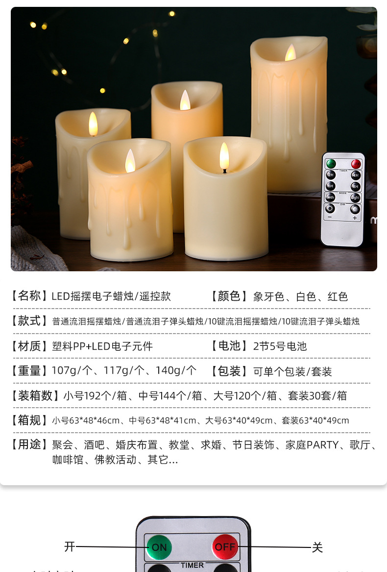 遥控led电子蜡烛灯派对节日道具电池式仿真摇摆蜡烛灯小夜灯蜡烛