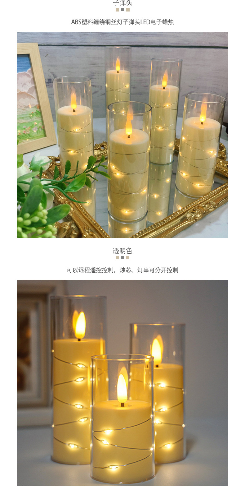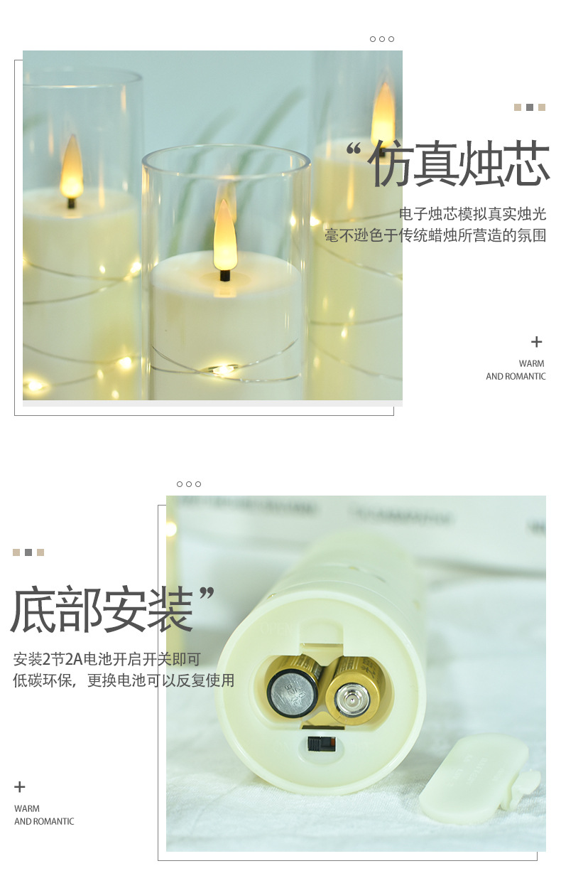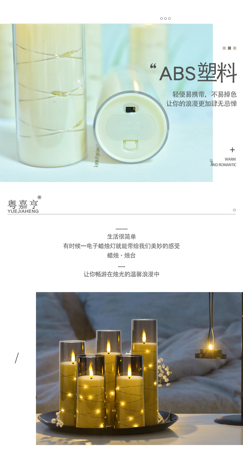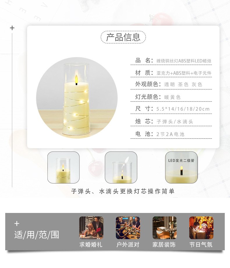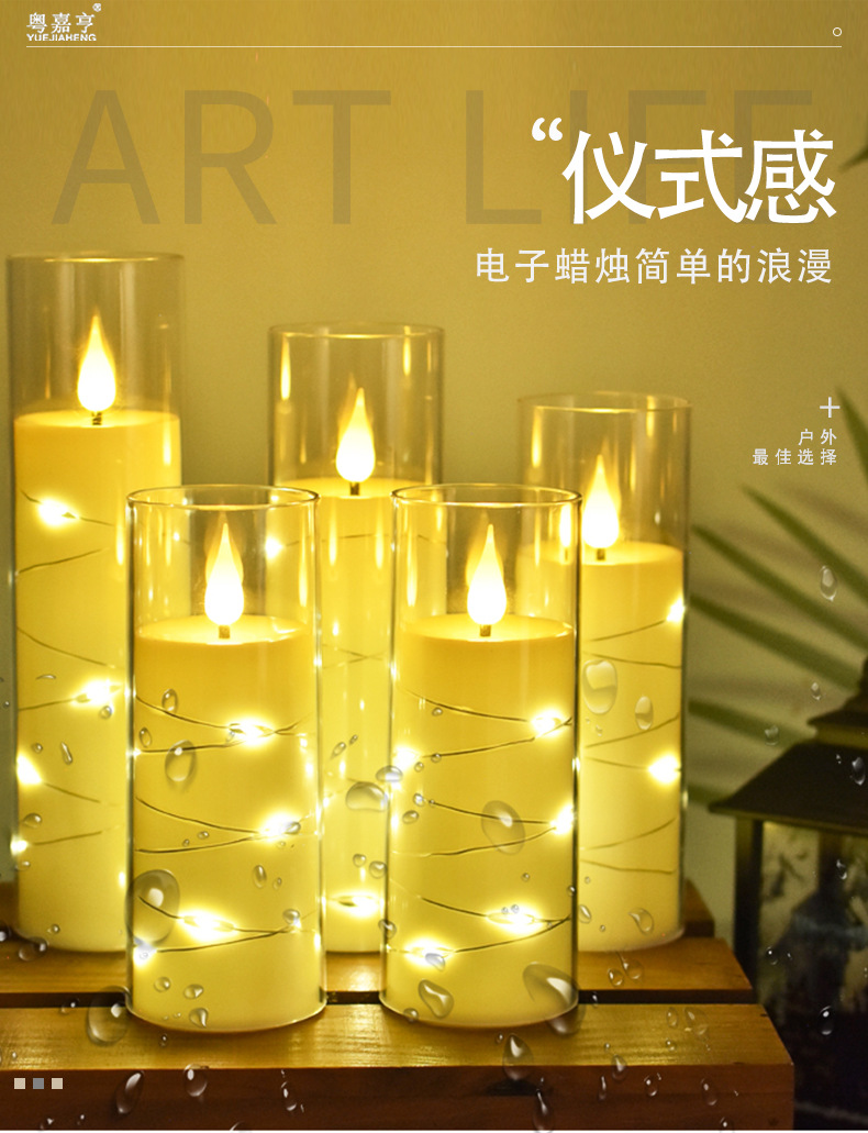 led电子蜡烛灯圣诞节派对灯串西餐厅摆件亚克力带杯蜡烛婚礼布置