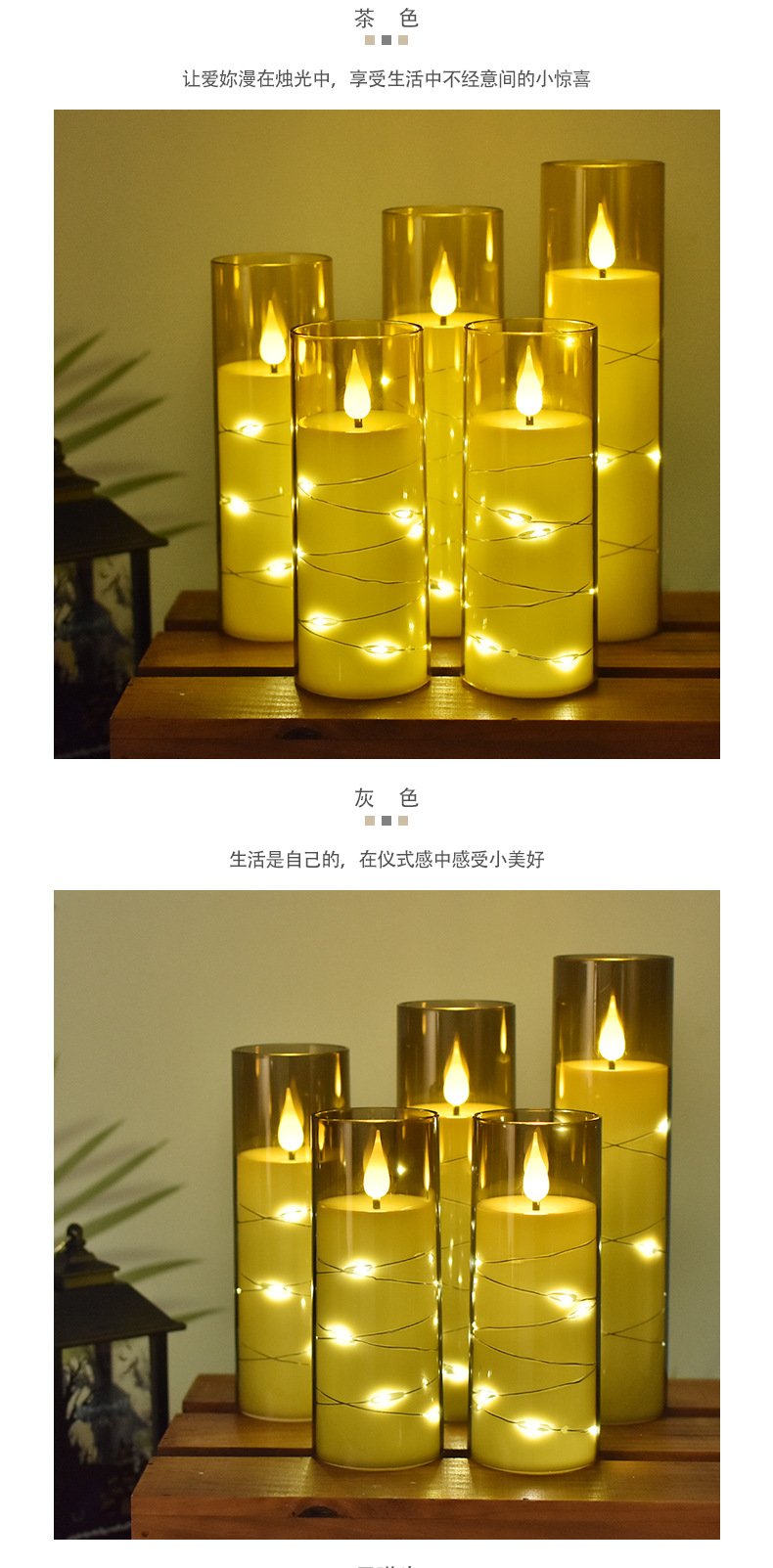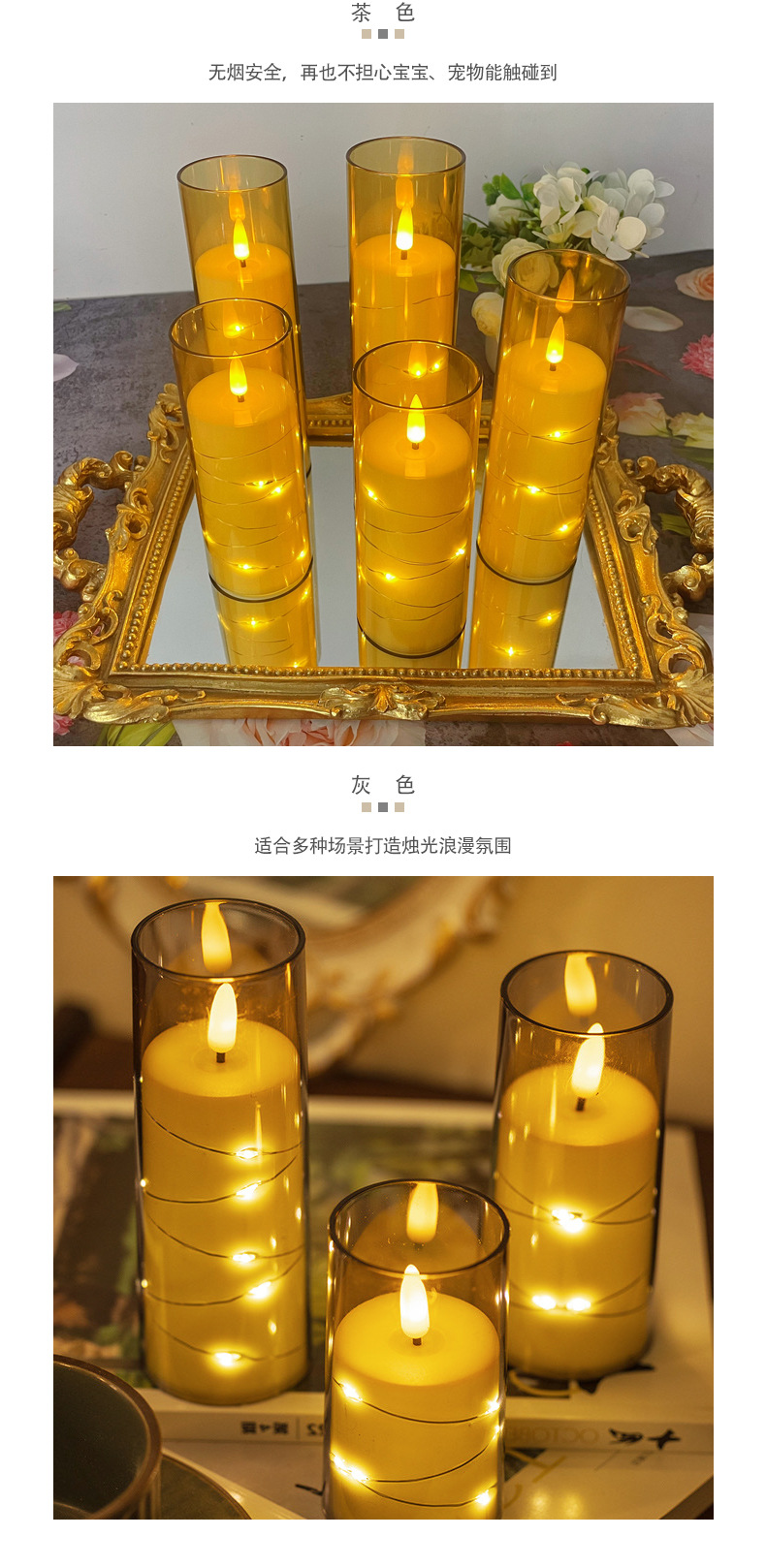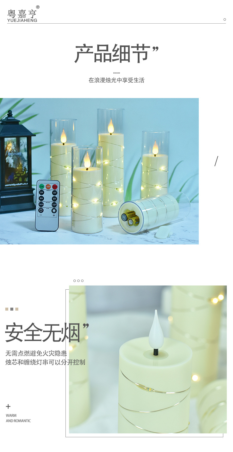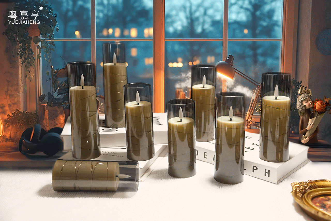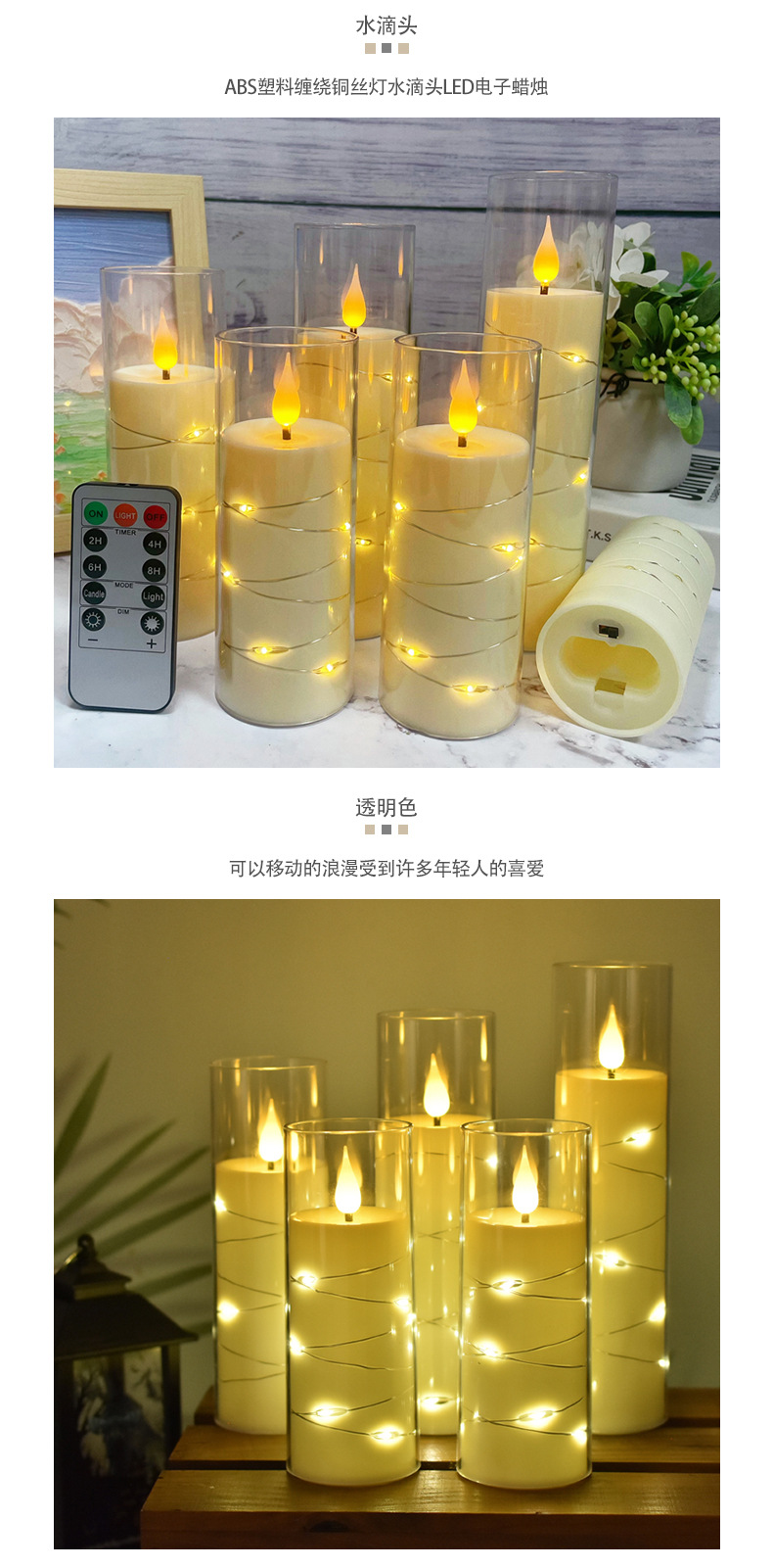 led电子蜡烛灯圣诞节派对灯串西餐厅摆件亚克力带杯蜡烛婚礼布置