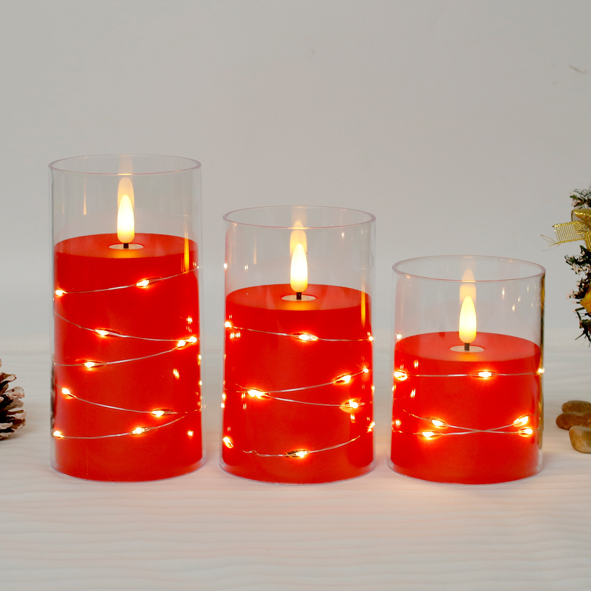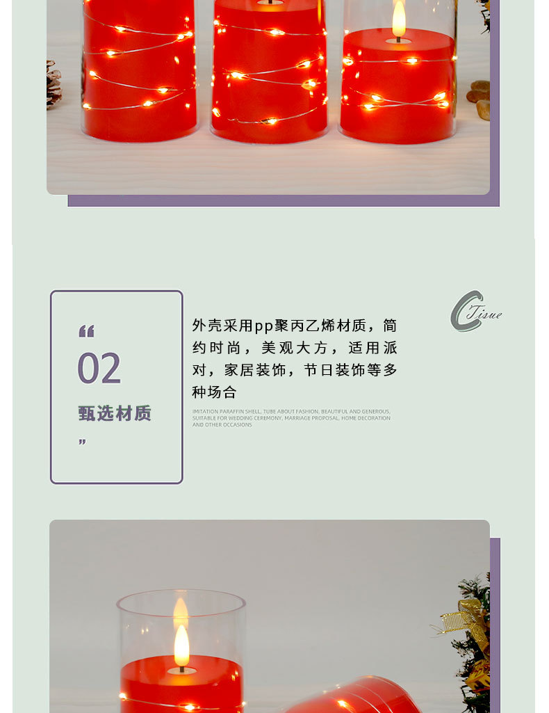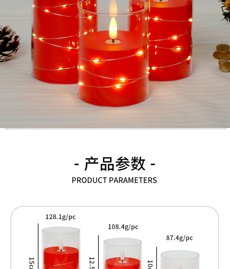 亚马逊热卖亚克力遥控无烟杯蜡led圣诞蜡烛套装塑料LED电子蜡烛灯
