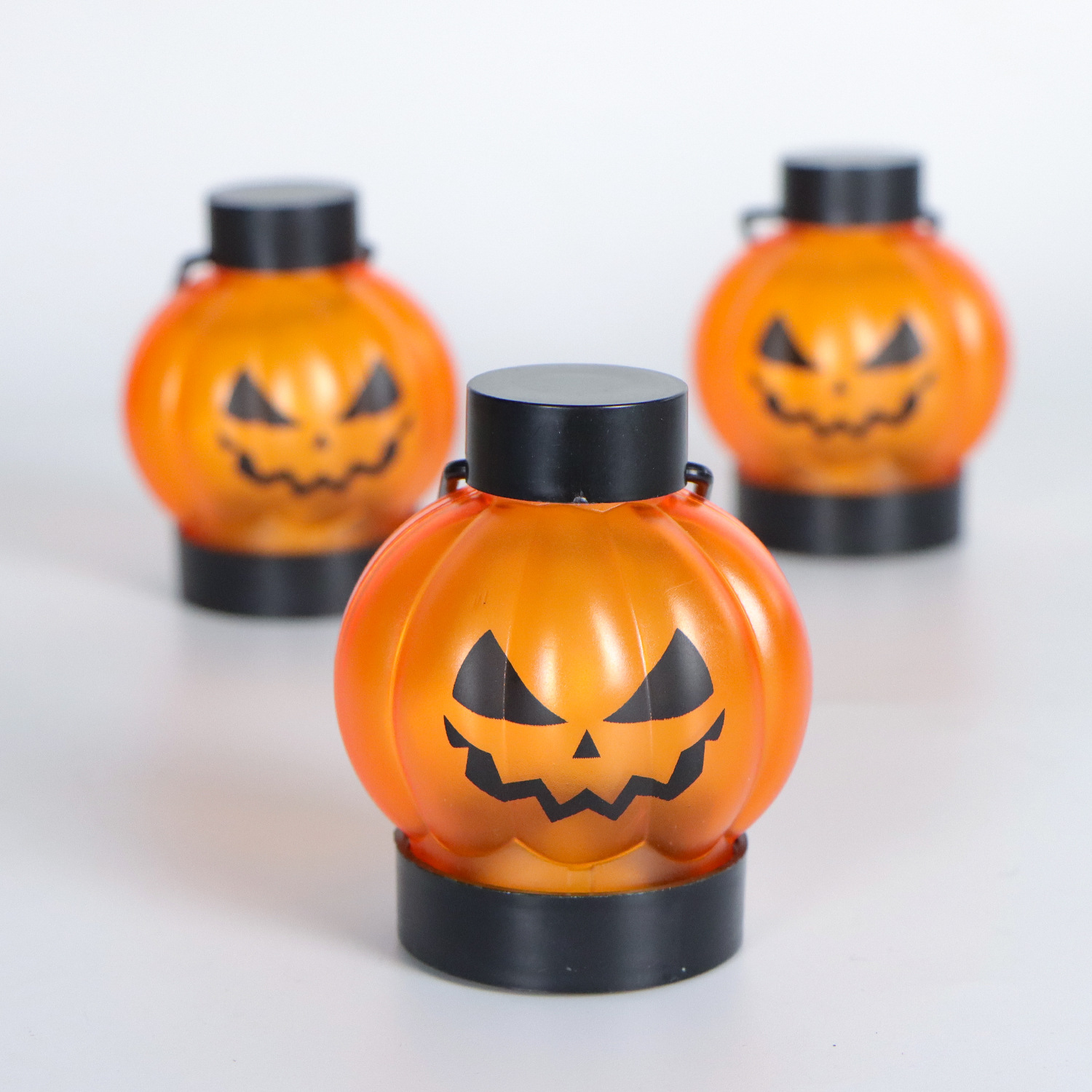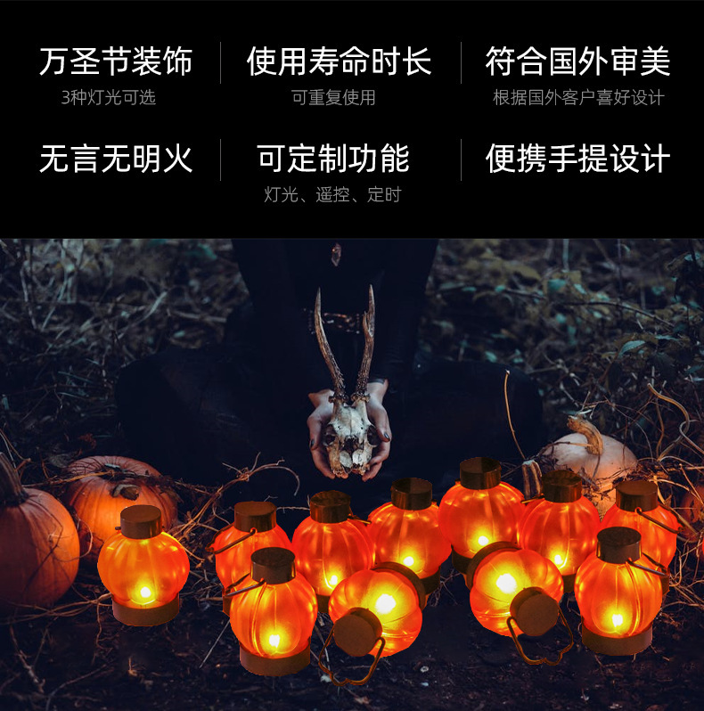 印刷鬼脸南瓜灯南瓜小灯笼 万圣节LED蜡烛灯圣诞树装饰灯塑料蜡烛