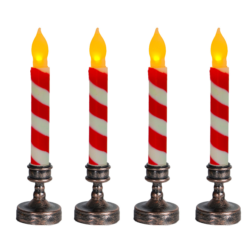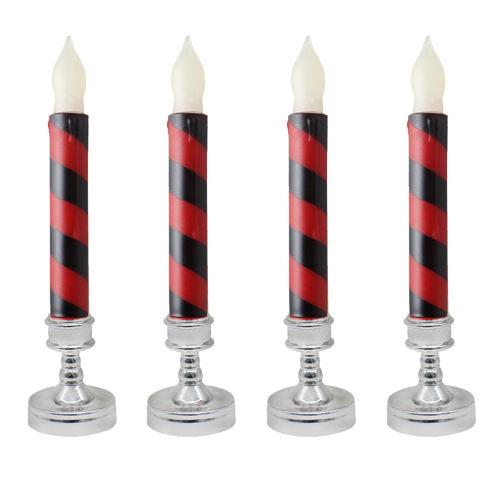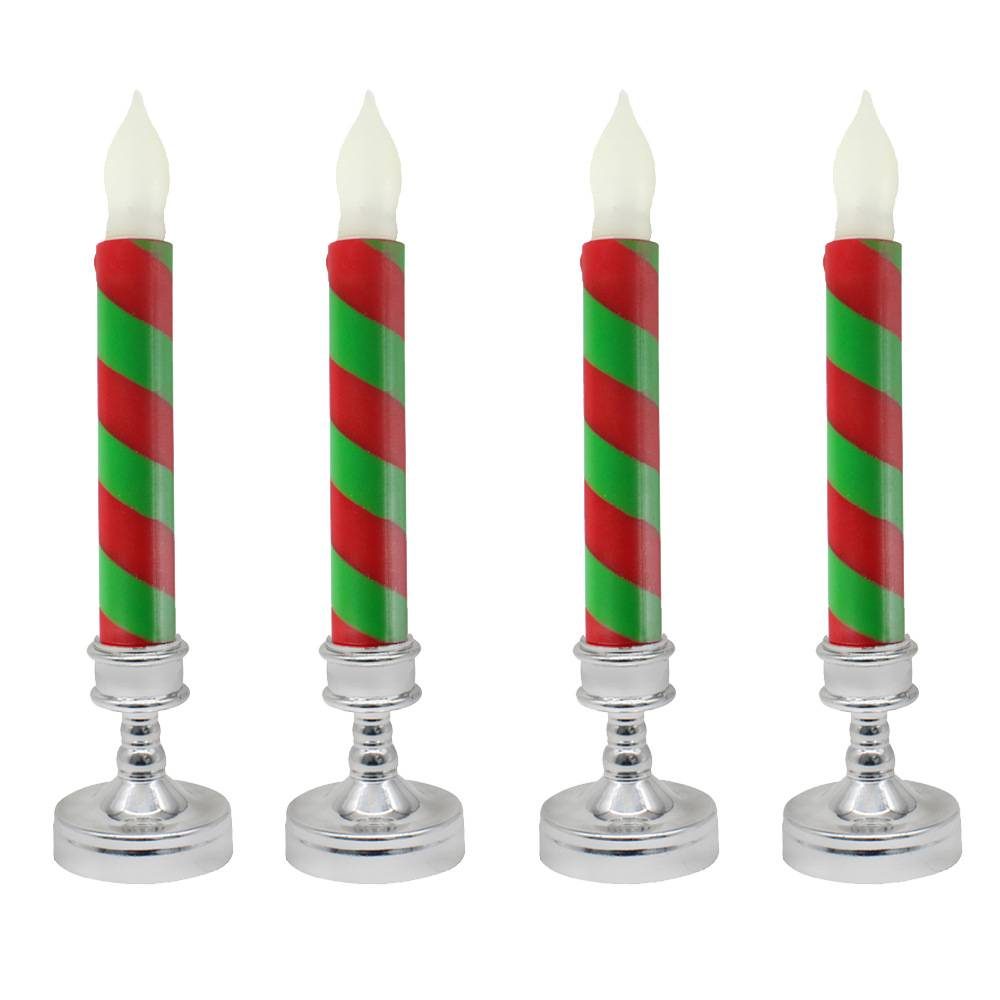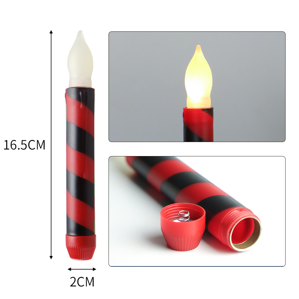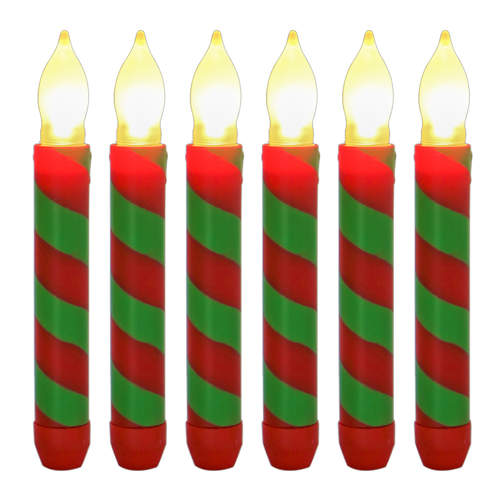 Amazon热卖货源创意仿真条纹LED蜡烛灯 圣诞节日装饰红绿电子杆蜡