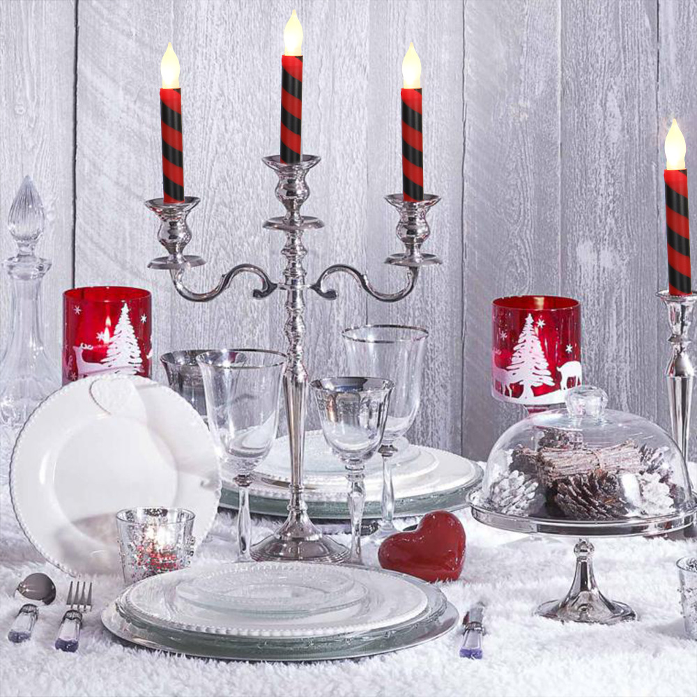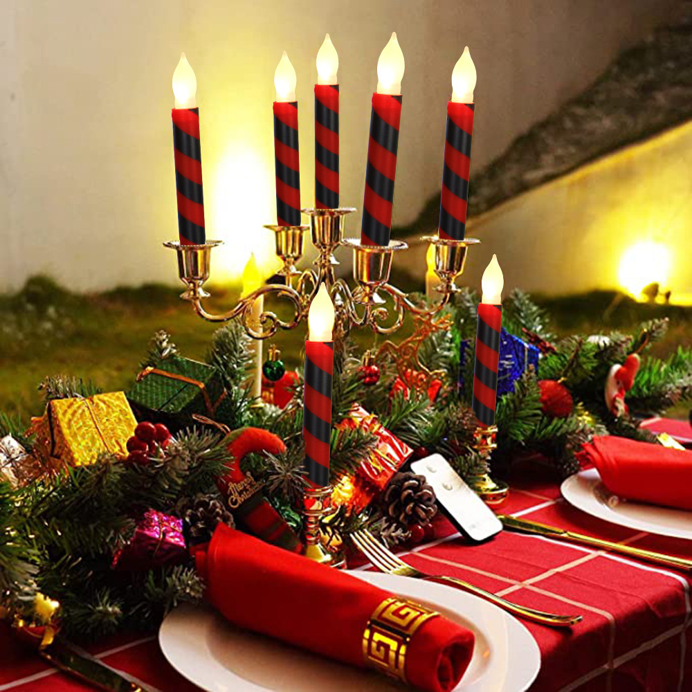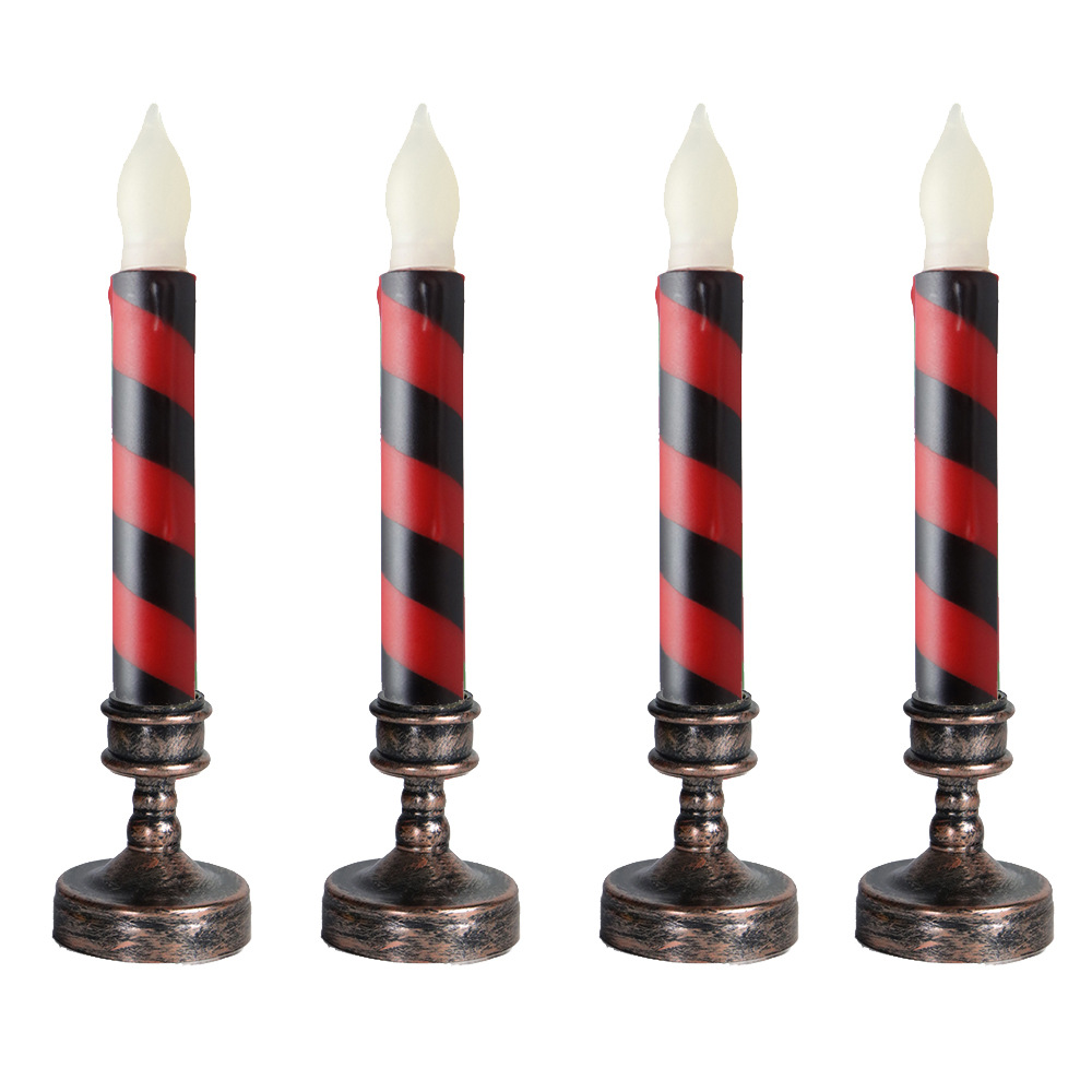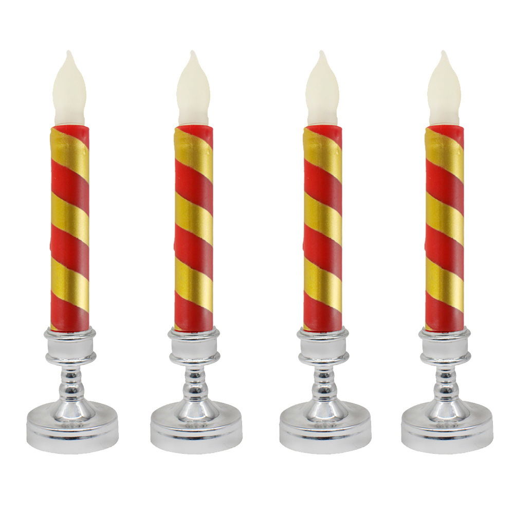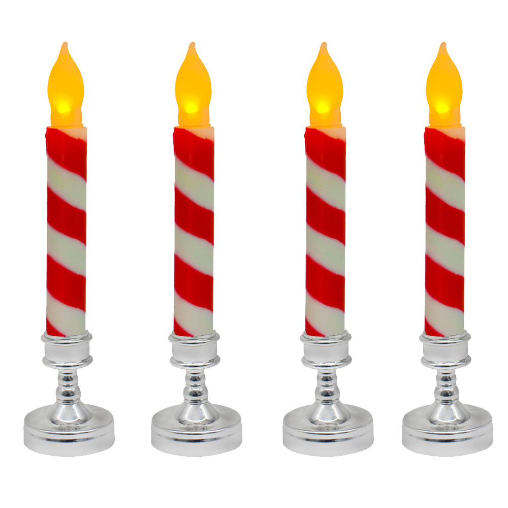 Amazon热卖货源创意仿真条纹LED蜡烛灯 圣诞节日装饰红绿电子杆蜡