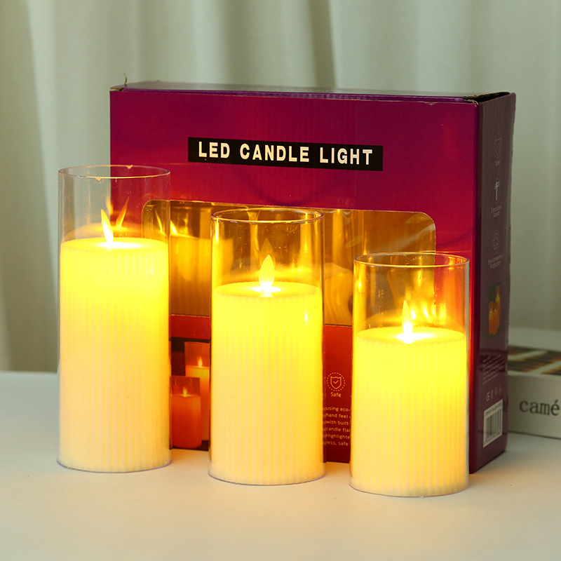 跨境透明齿轮款电子蜡烛平口摇摆火焰LED蜡烛灯浪漫家居气氛摆件
