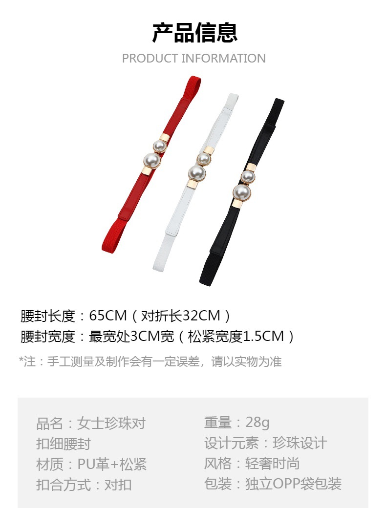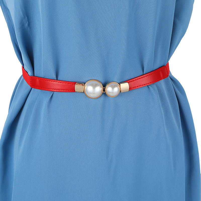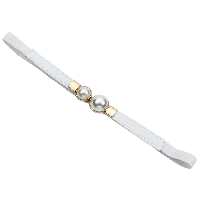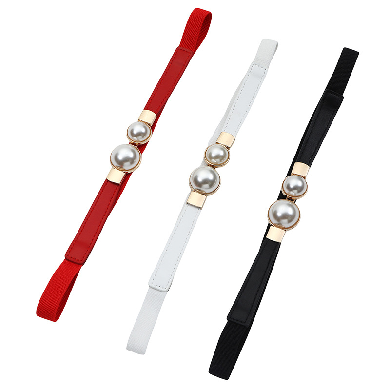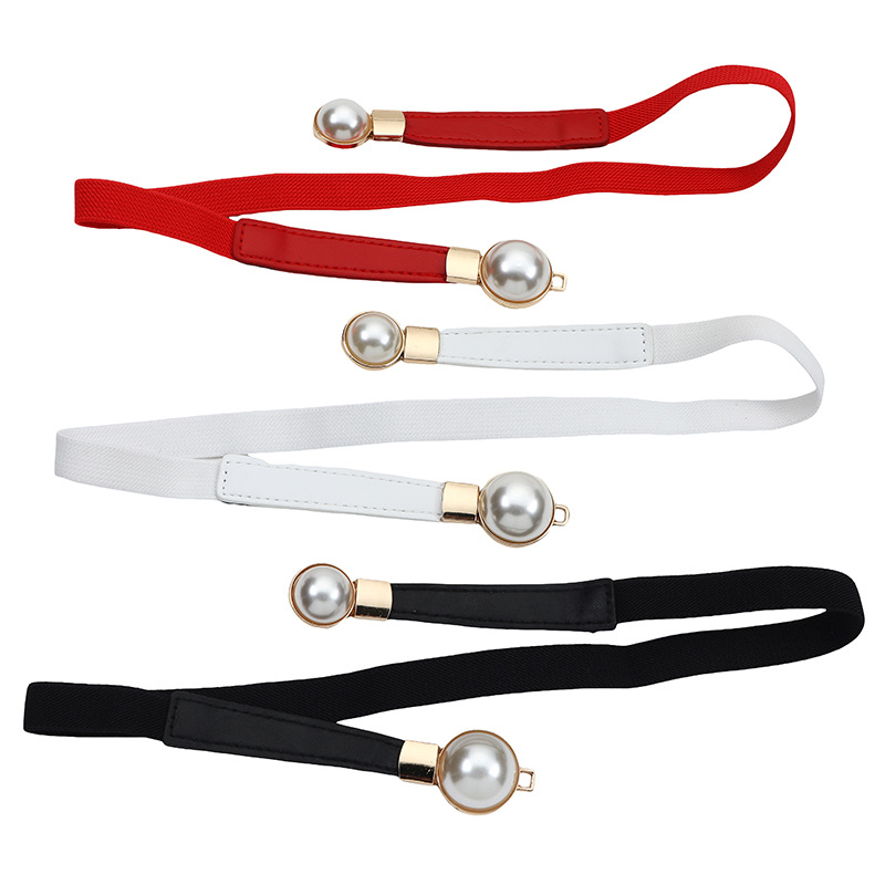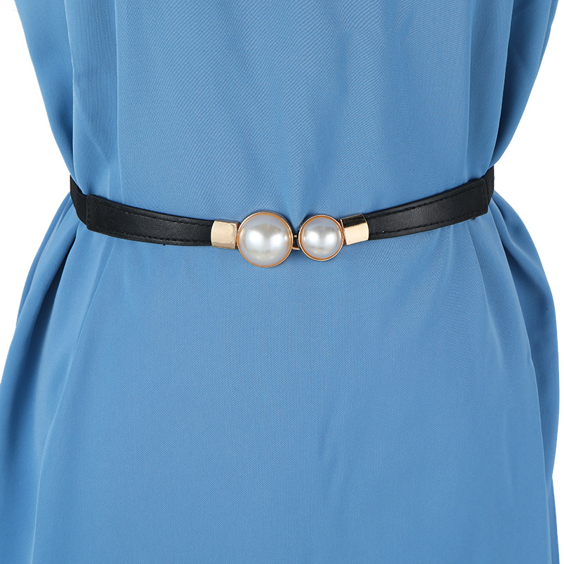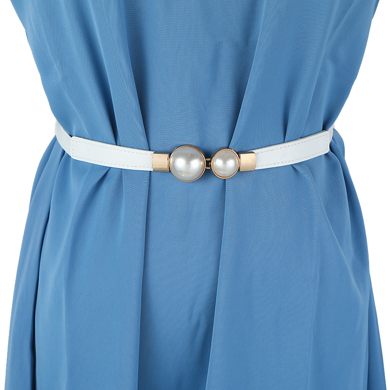 珍珠对扣细腰带女士百搭装饰连衣裙弹力腰封女款高级感外穿束腰封