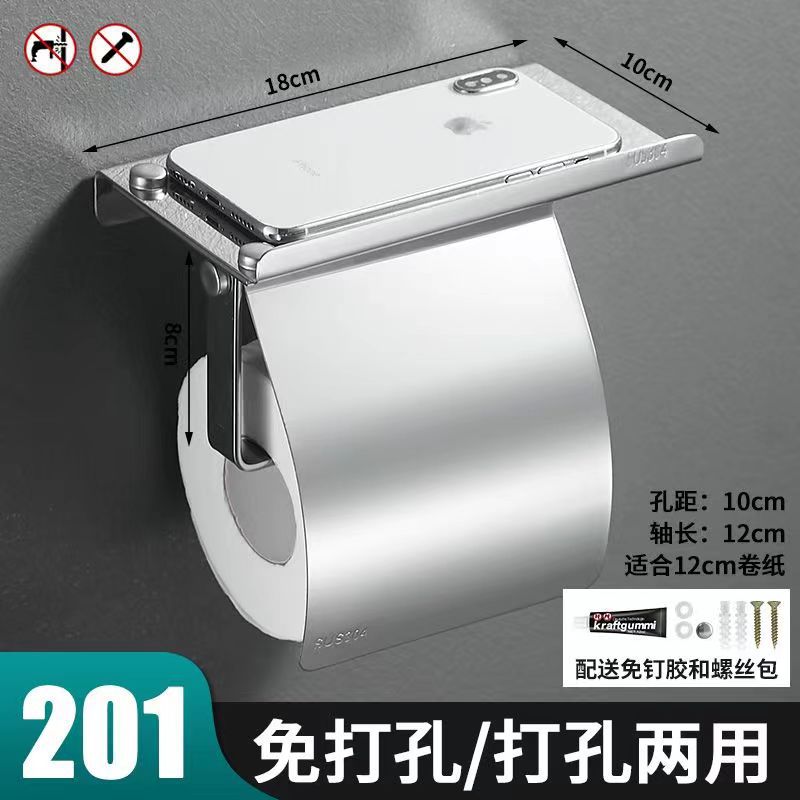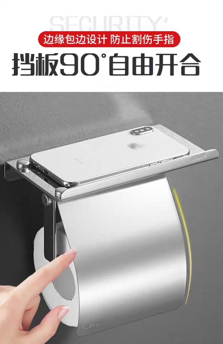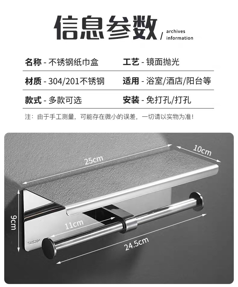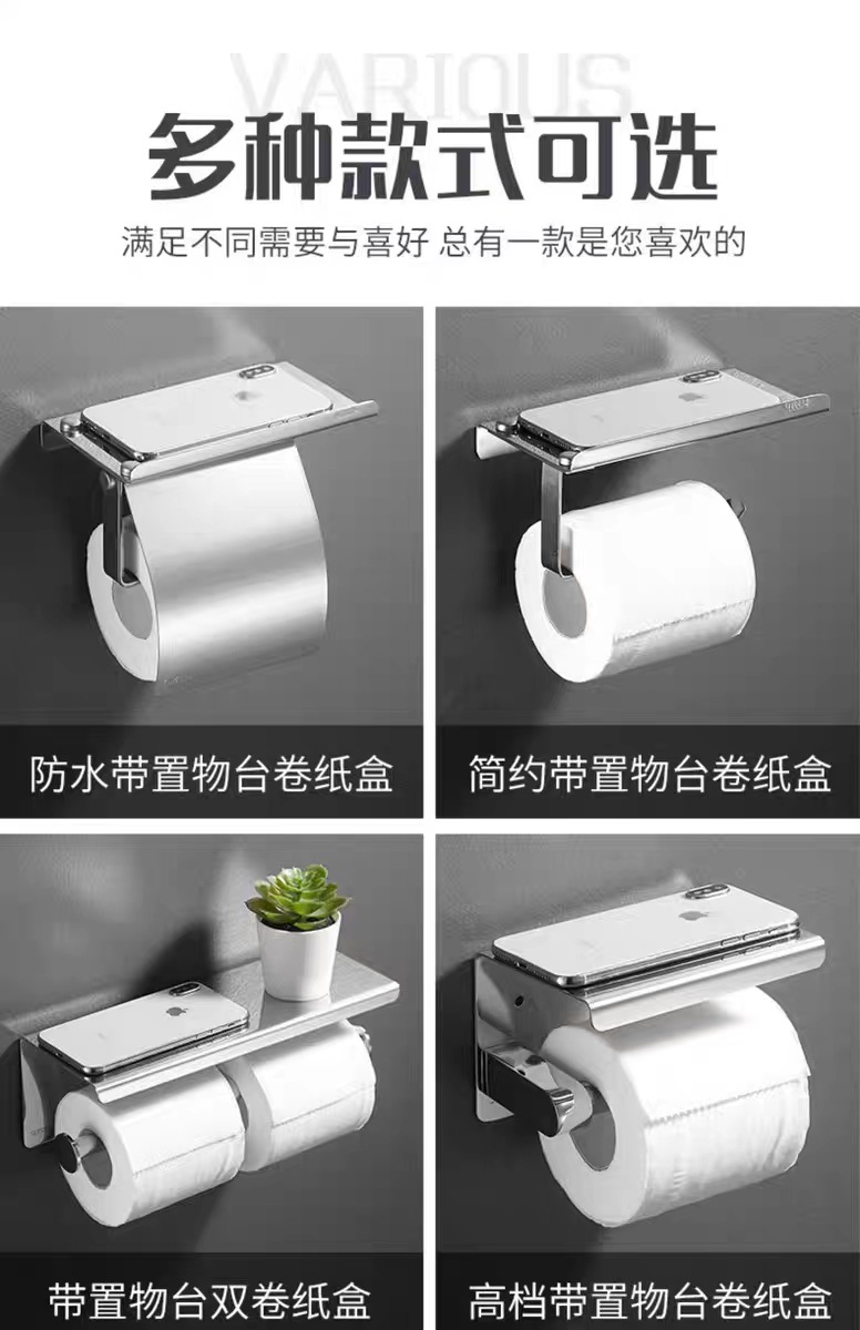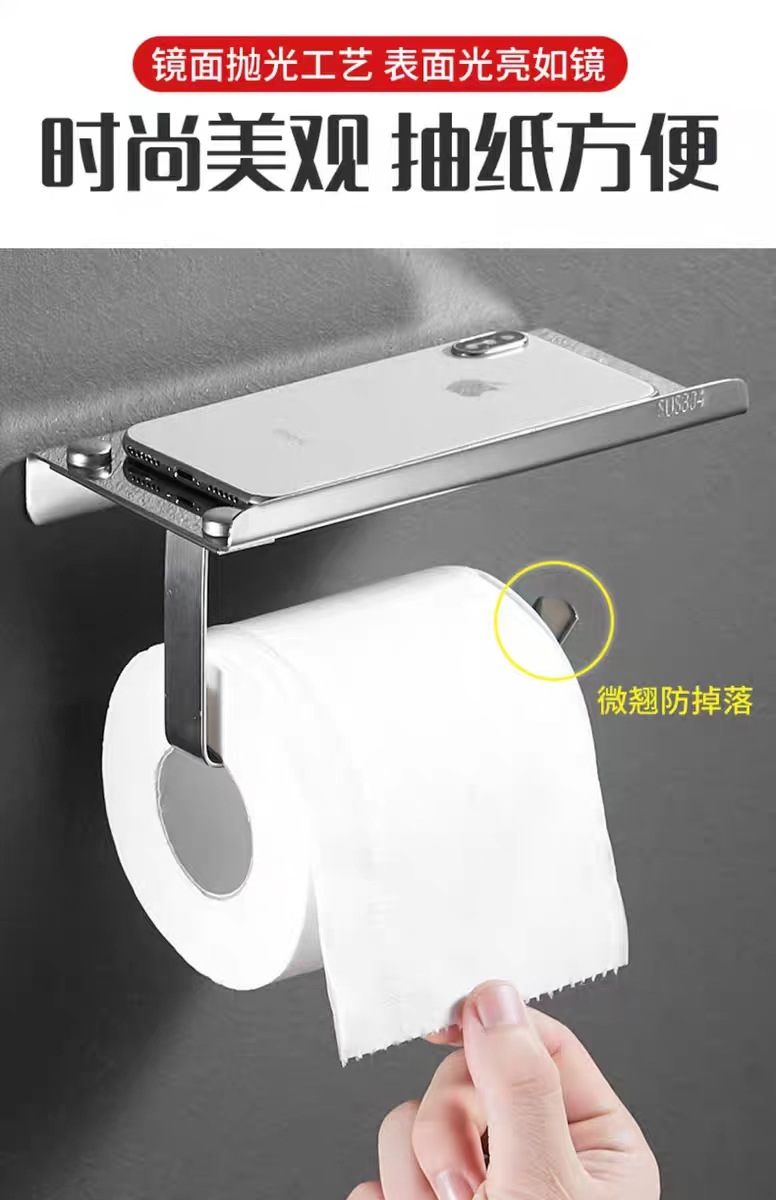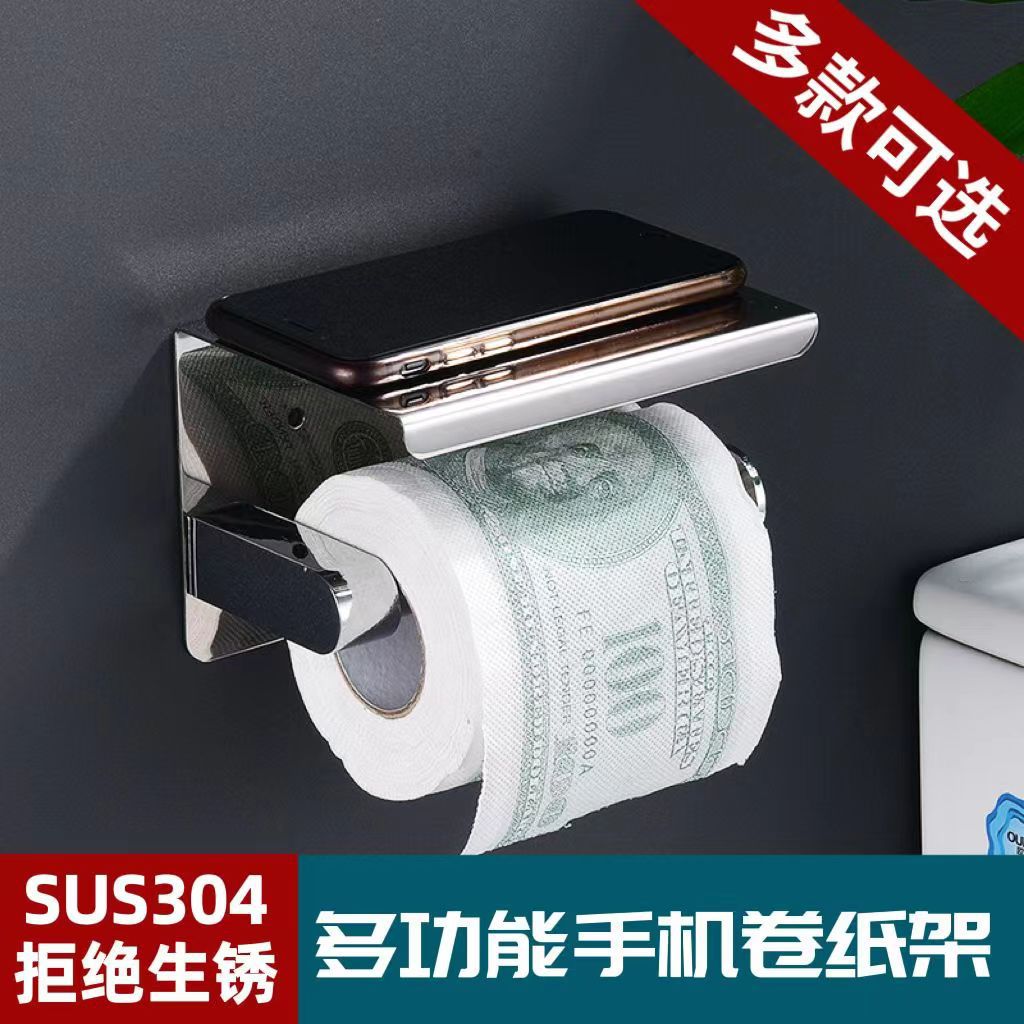 304不锈钢纸巾架卫生间手机挂架 酒店厕所卷纸架浴室免打孔纸巾盒