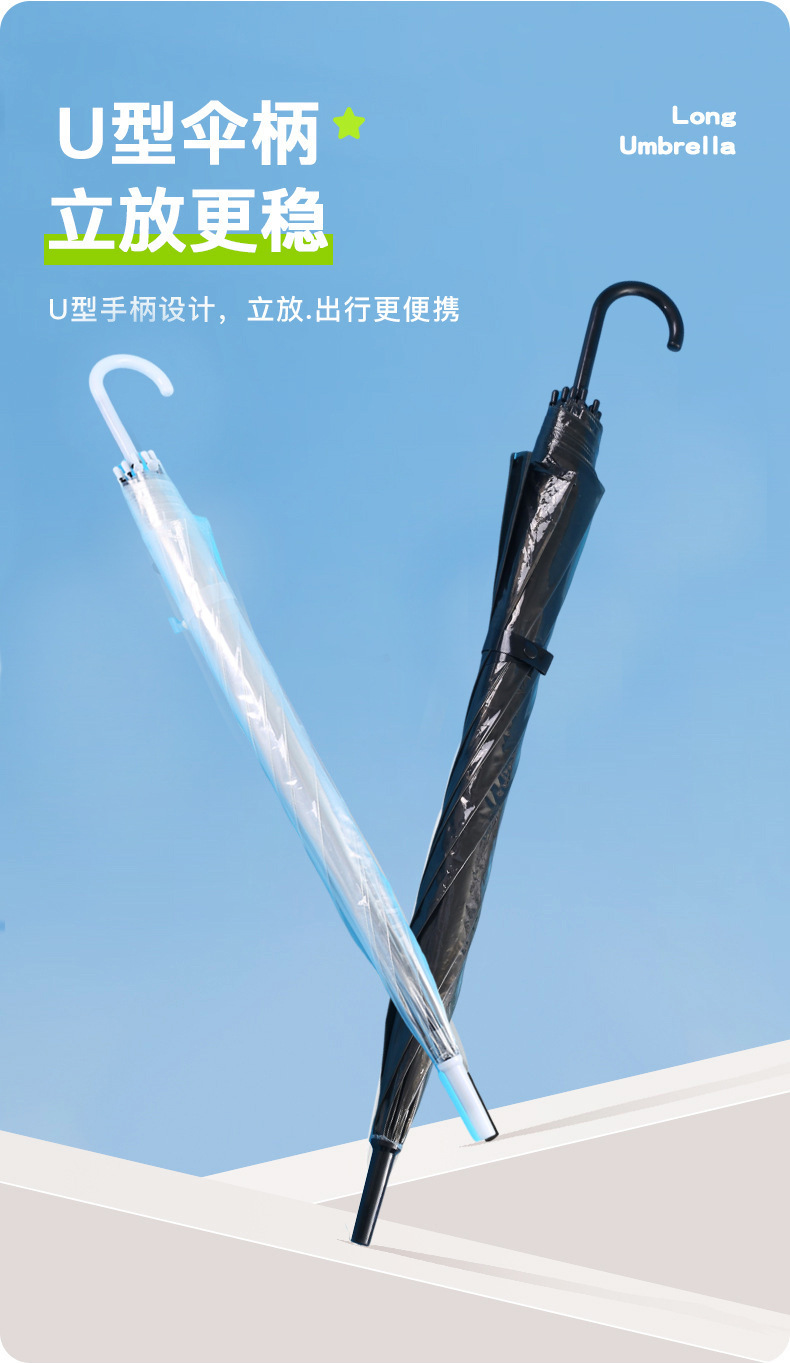 透明雨伞大号加厚半自动折叠景区长柄伞简约透明广告伞塑料晴雨伞
