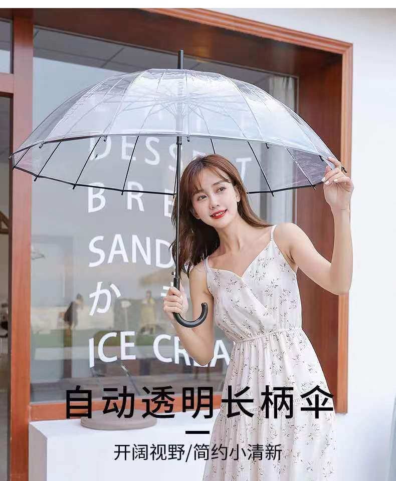 透明甜美雨伞长柄磨砂女网红韩版加厚学生女小清新学生高级雨伞