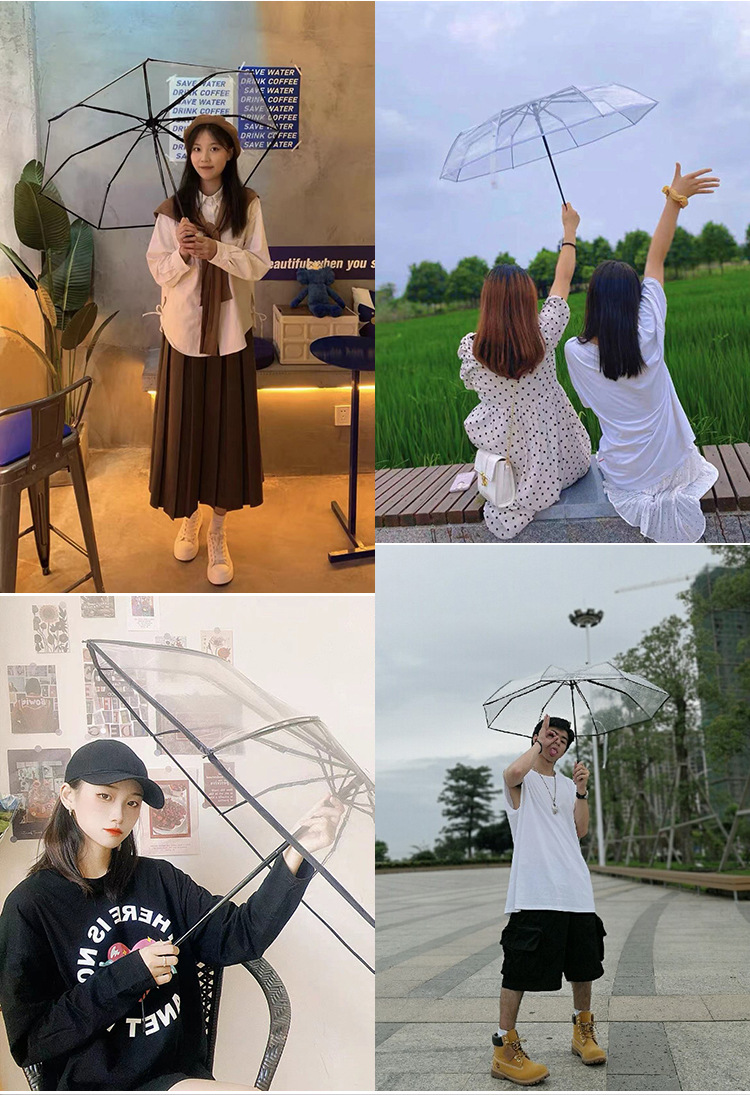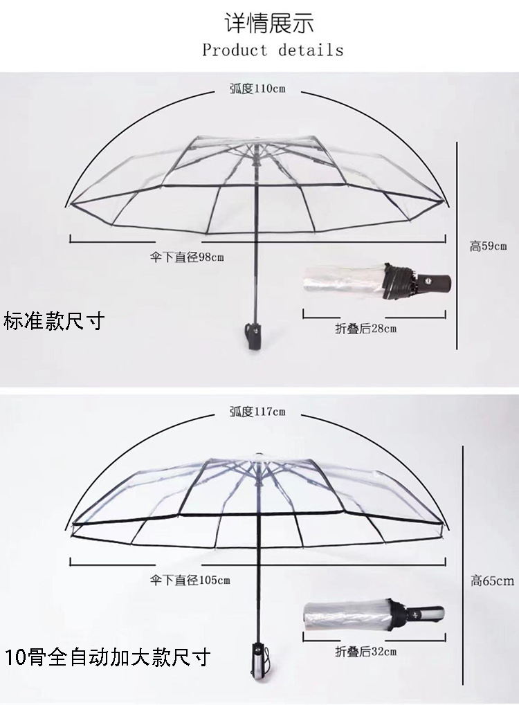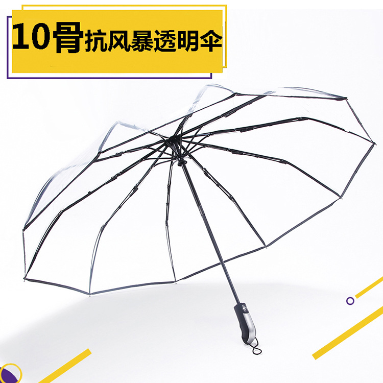 透明雨伞折叠全自动透明三折伞可印广告logo的广告伞工厂厂家供应
