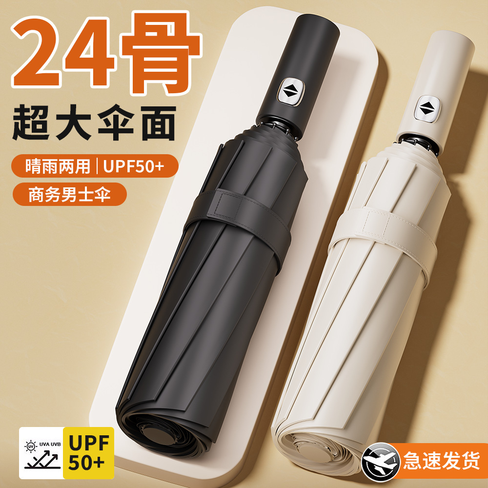 雨伞自动全24骨大号晴雨两用定制批发男士折叠伞高级感遮阳防晒伞