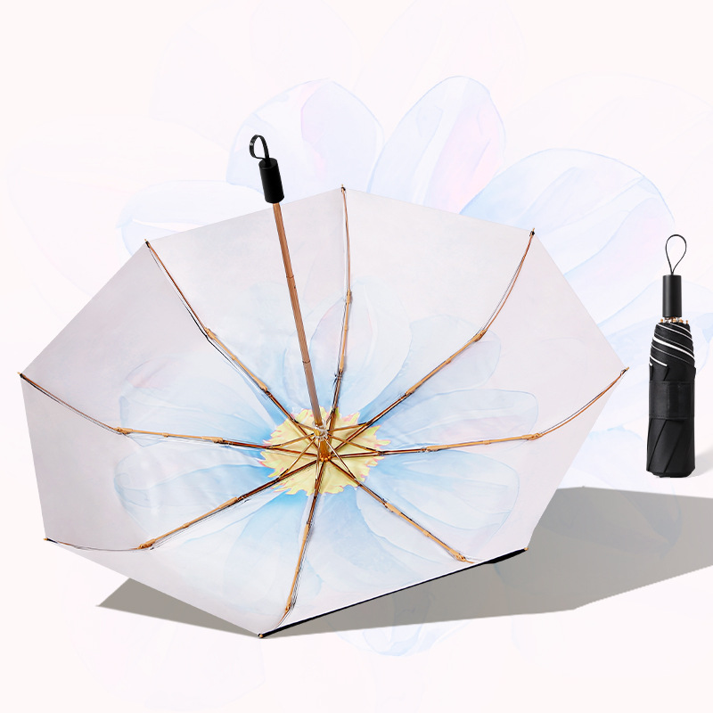 现货三折双层钛银遮阳伞女防晒防紫外线加固抗风雨伞纯色太阳伞