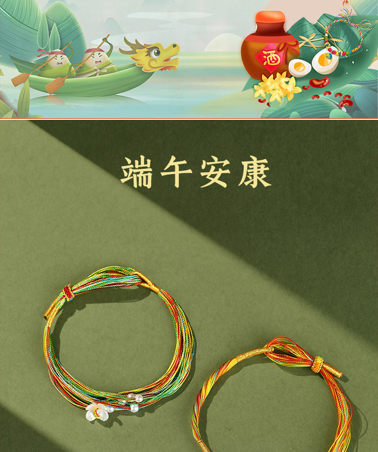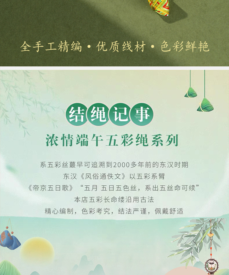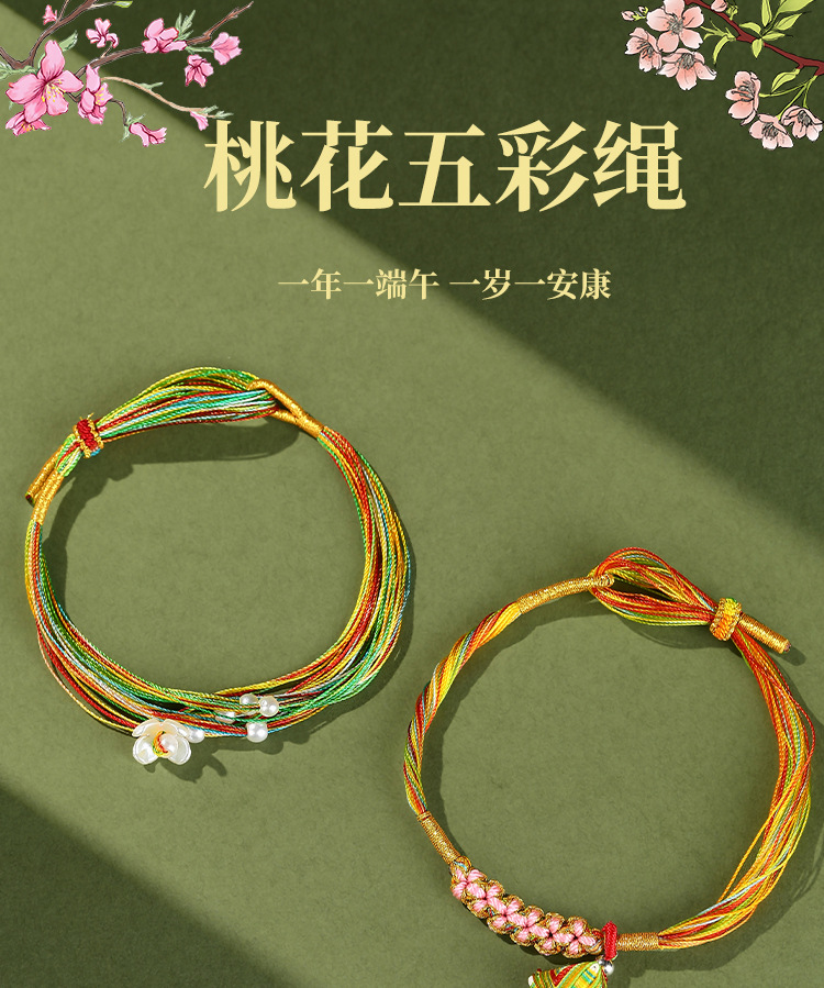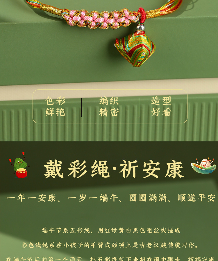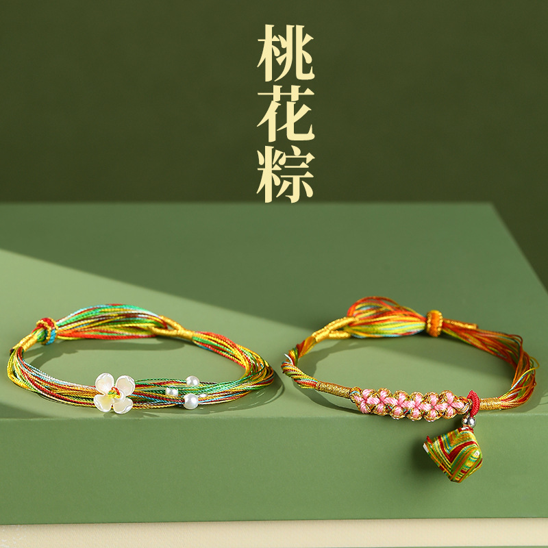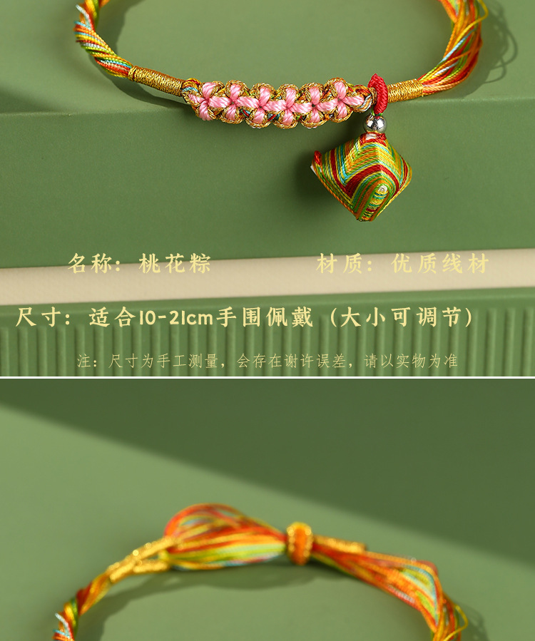 端午节五彩绳手链小粽子桃花手工编织男女成人手绳男女五色线手饰