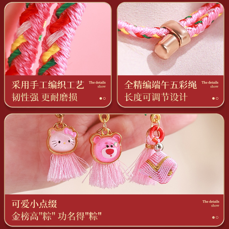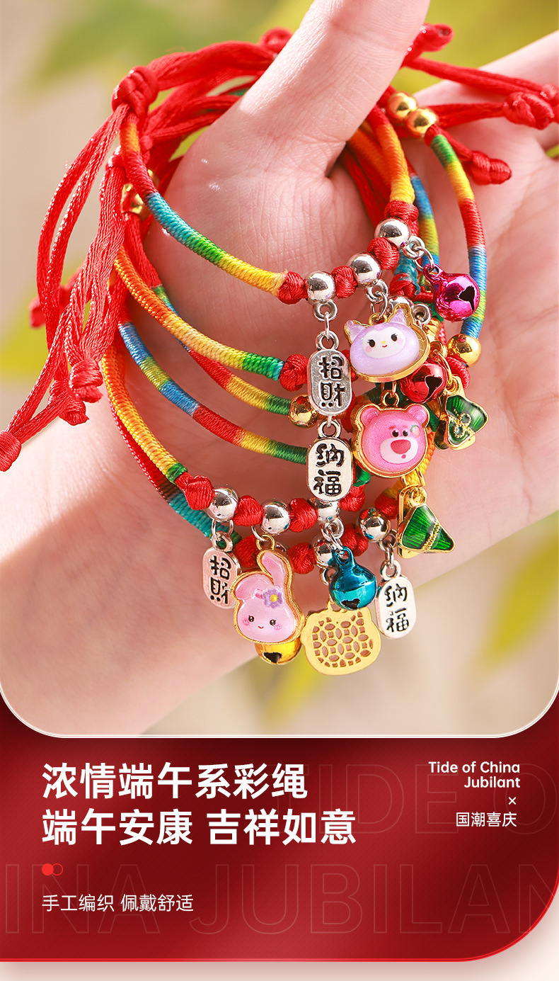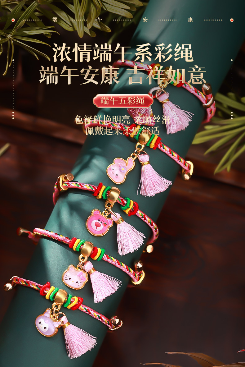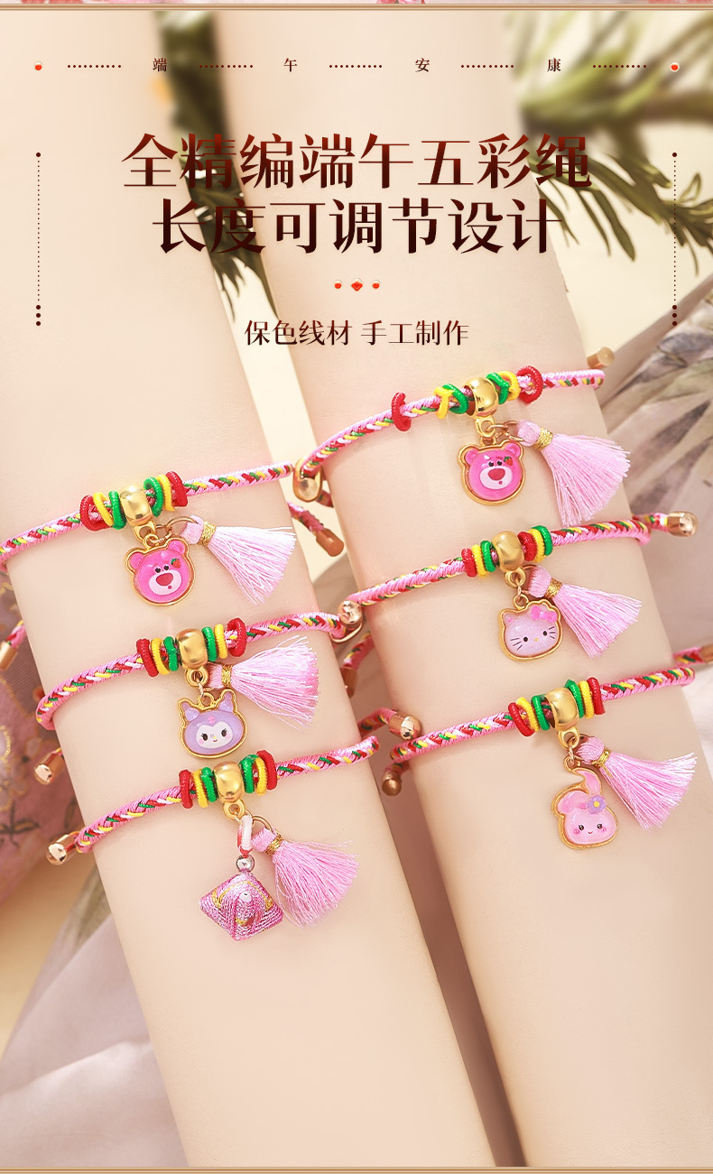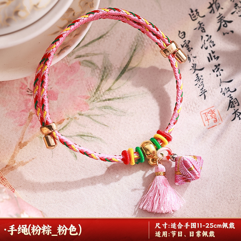 端午节五彩绳批货粉色粽子手链手工编织红绳男女儿童手饰端午手绳