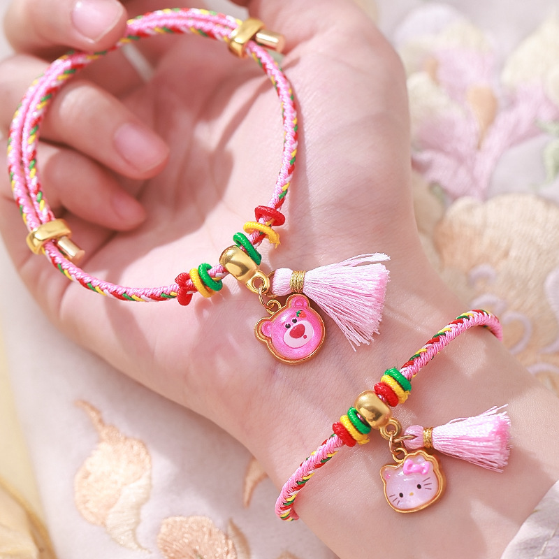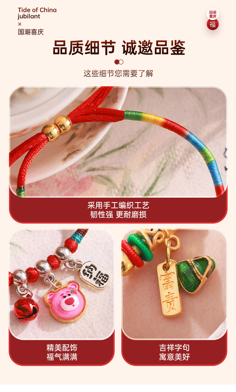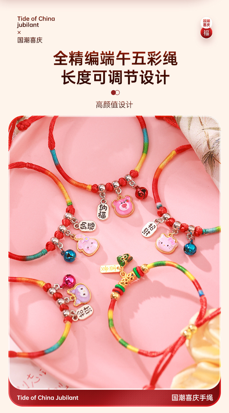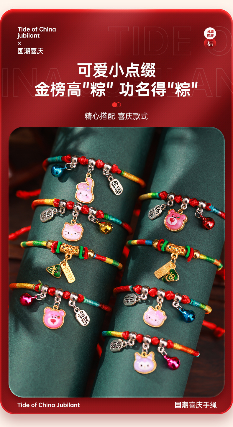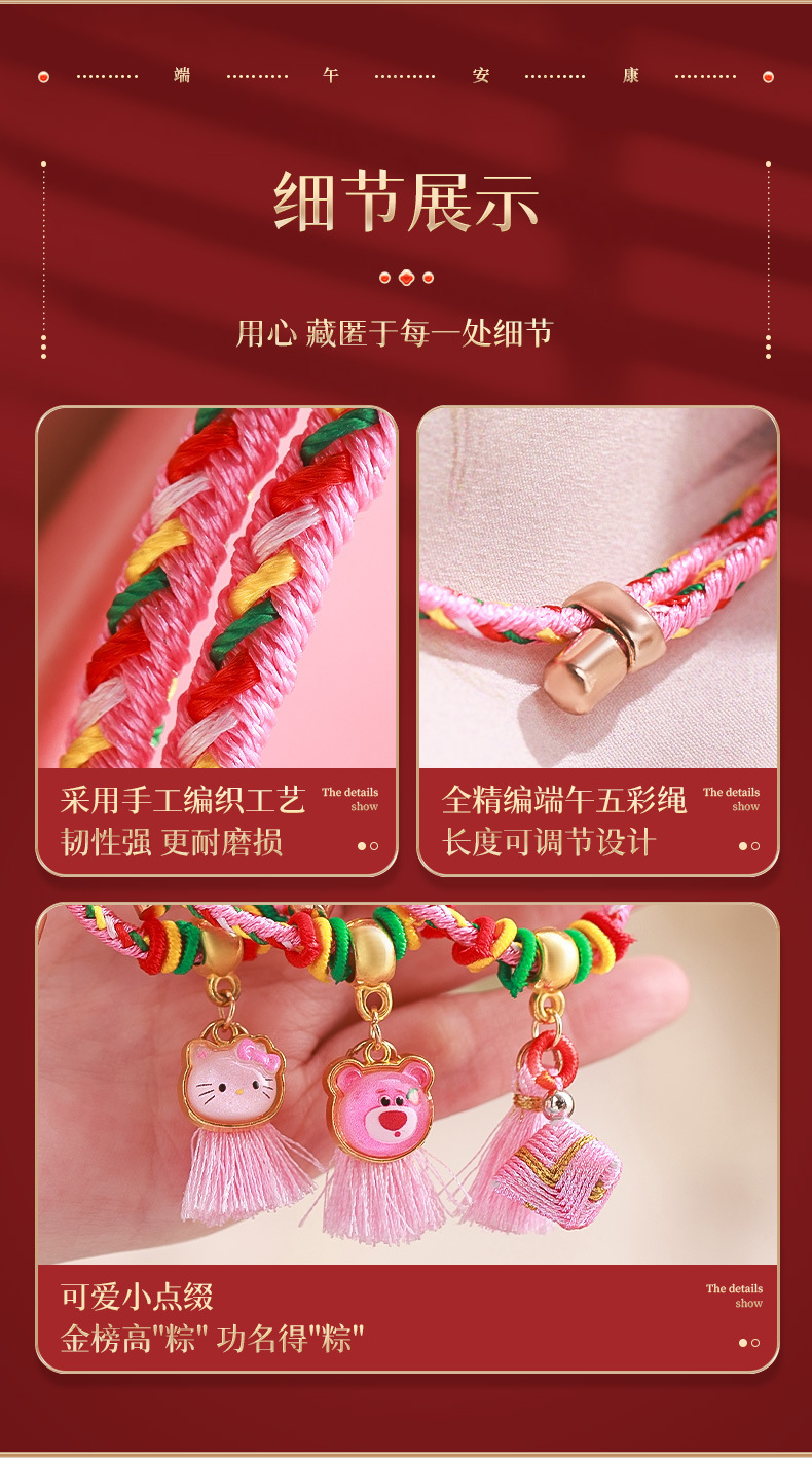 端午节五彩绳批货粉色粽子手链手工编织红绳男女儿童手饰端午手绳