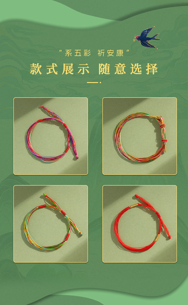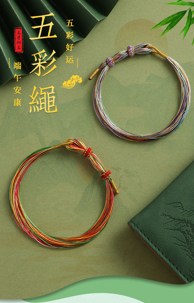 端午节五彩绳手链儿童宝宝手工编织红绳成人老虎粽子香包手绳批发