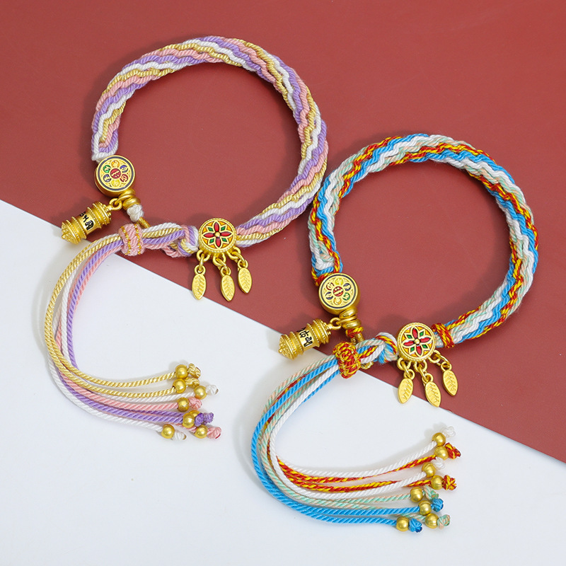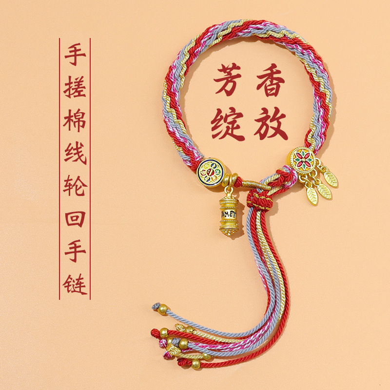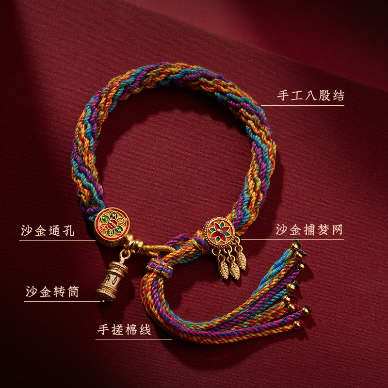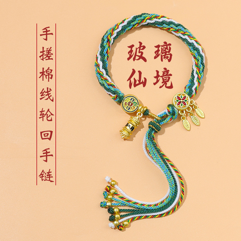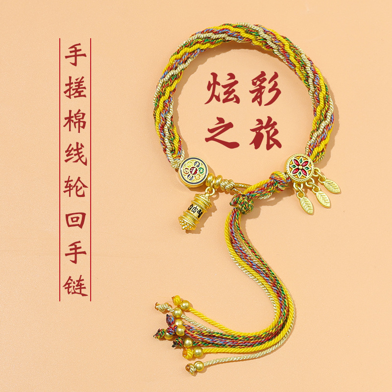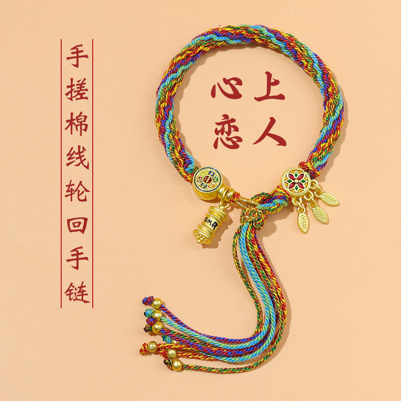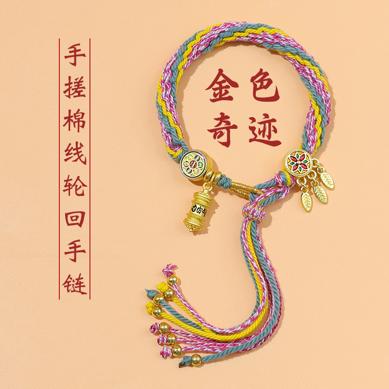 藏式七彩轮回手链民族风五彩绳diy唐卡手绳手工编织棉线手绳批发