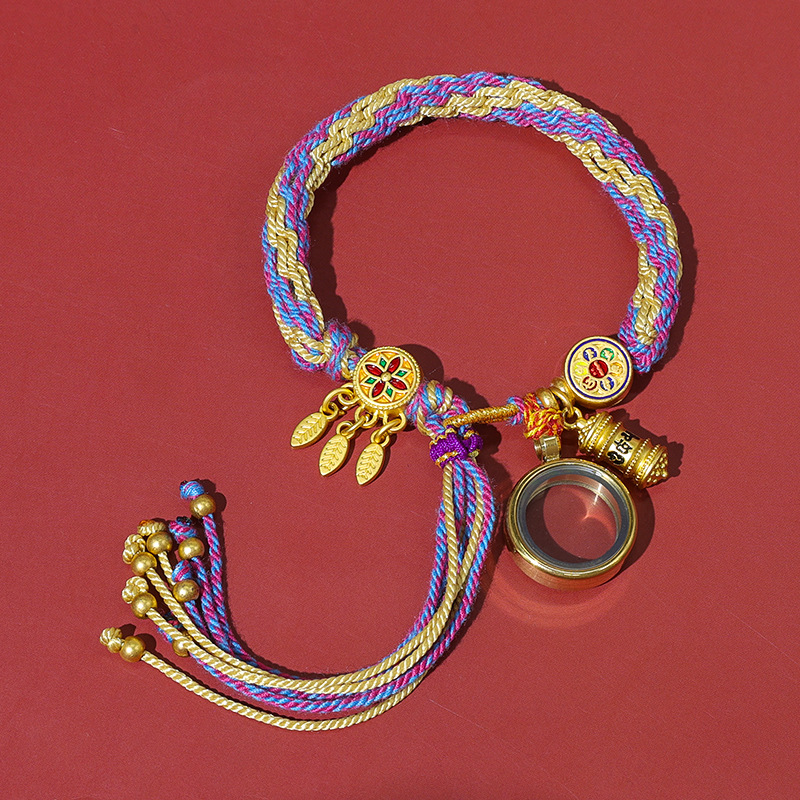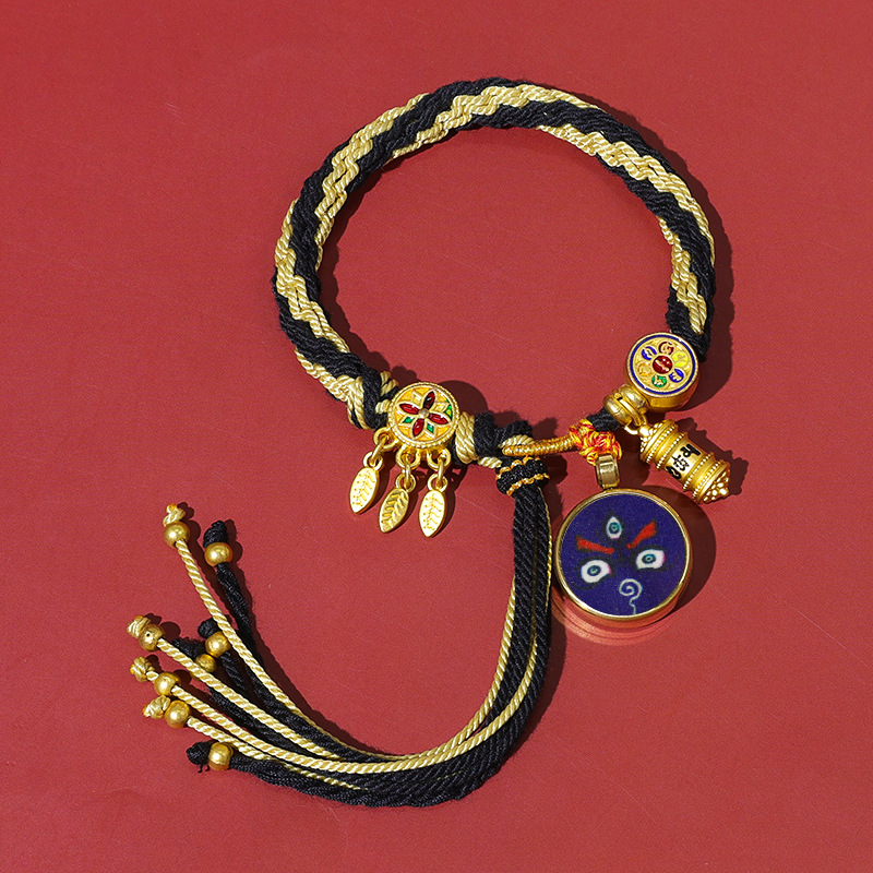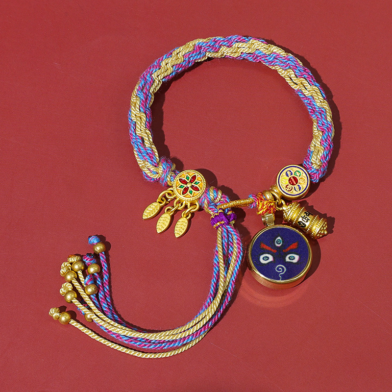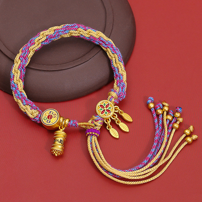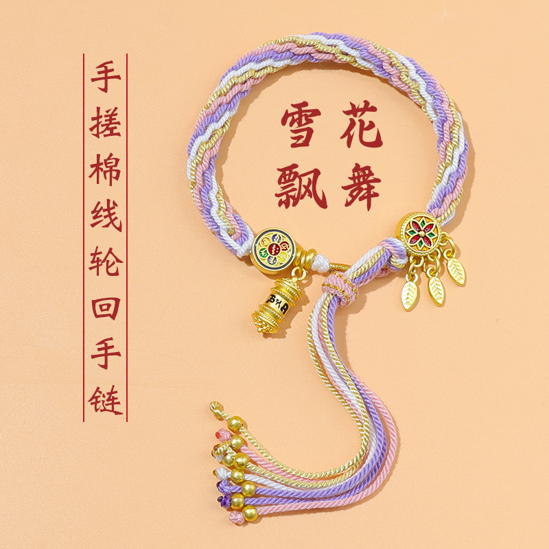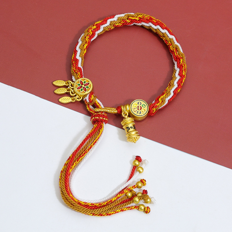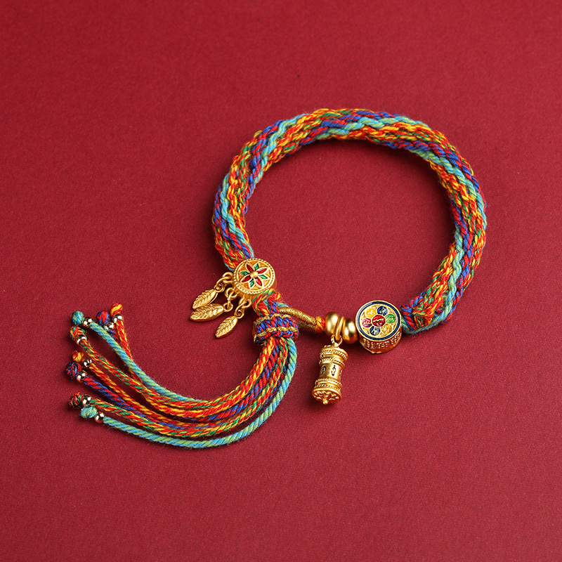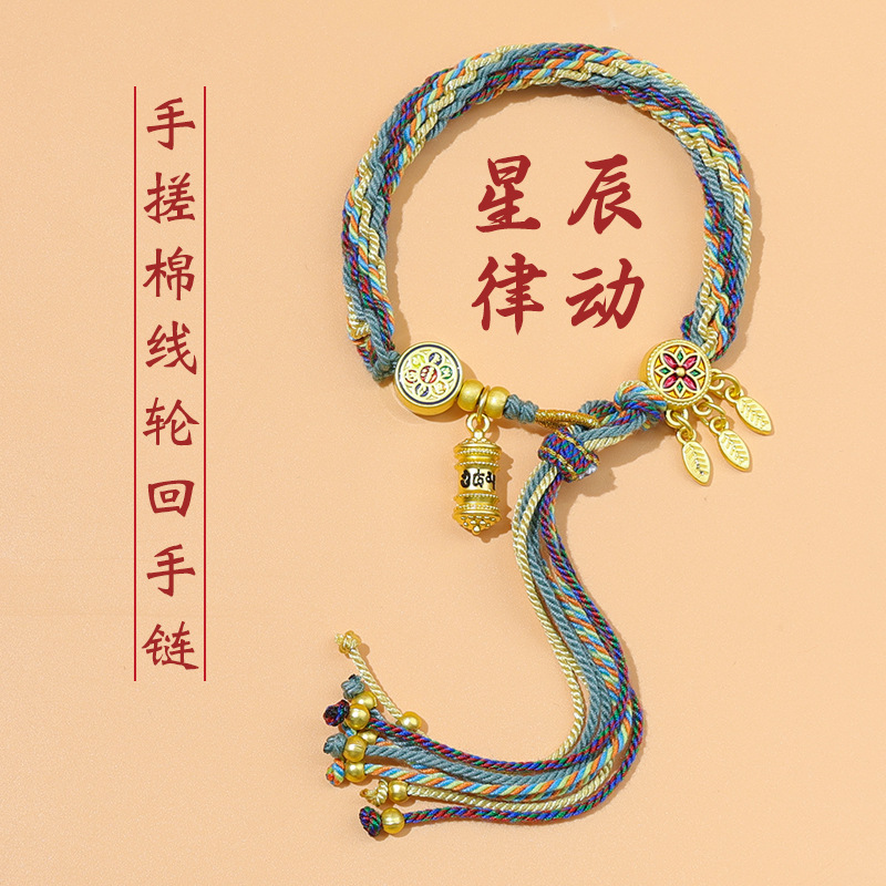 藏式七彩轮回手链民族风五彩绳diy唐卡手绳手工编织棉线手绳批发