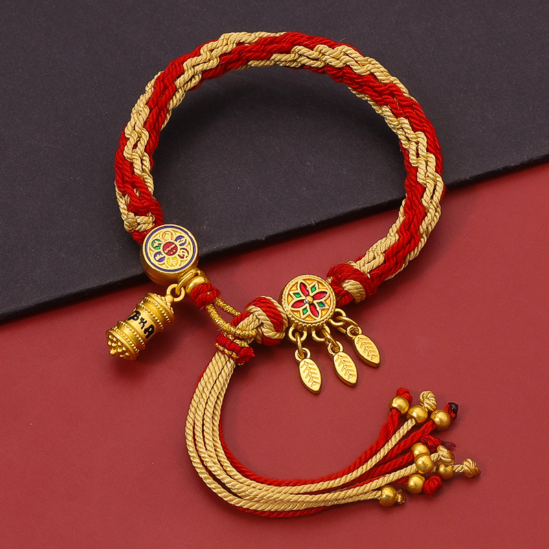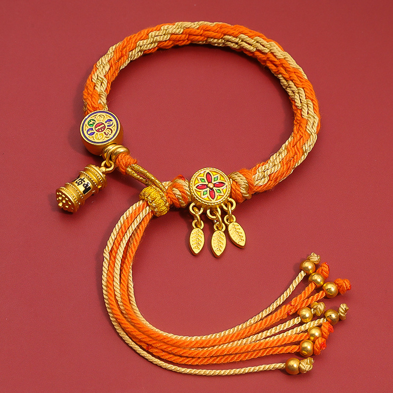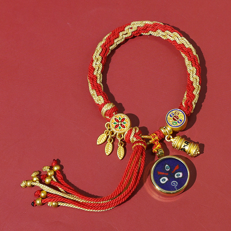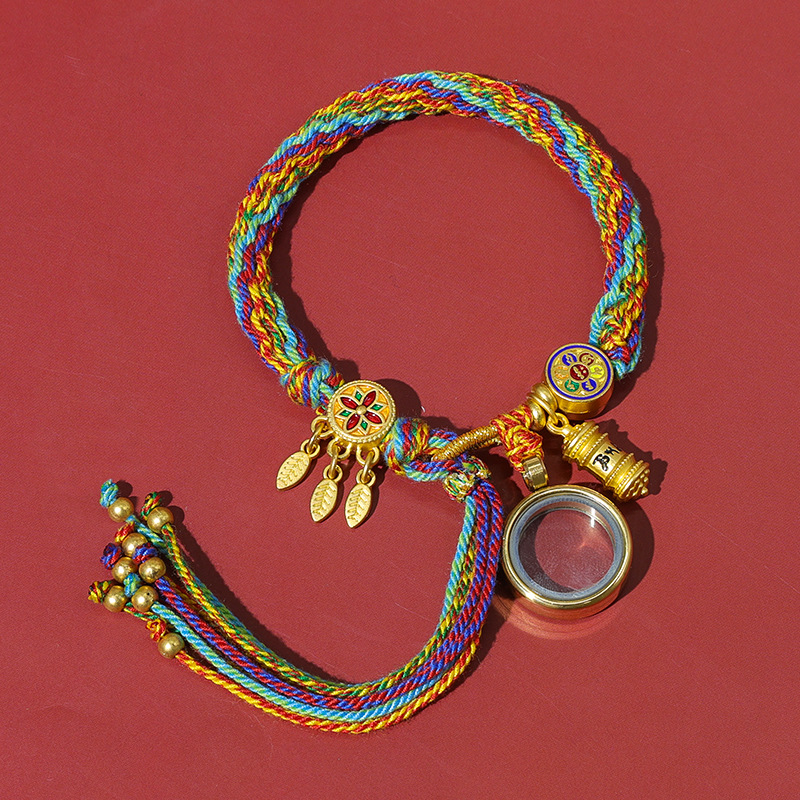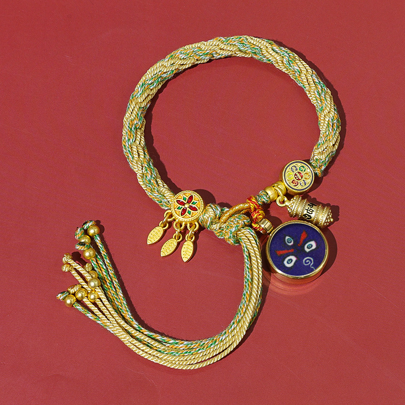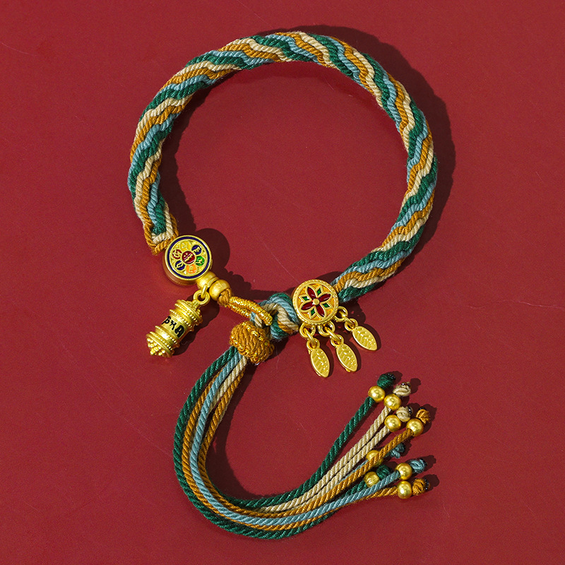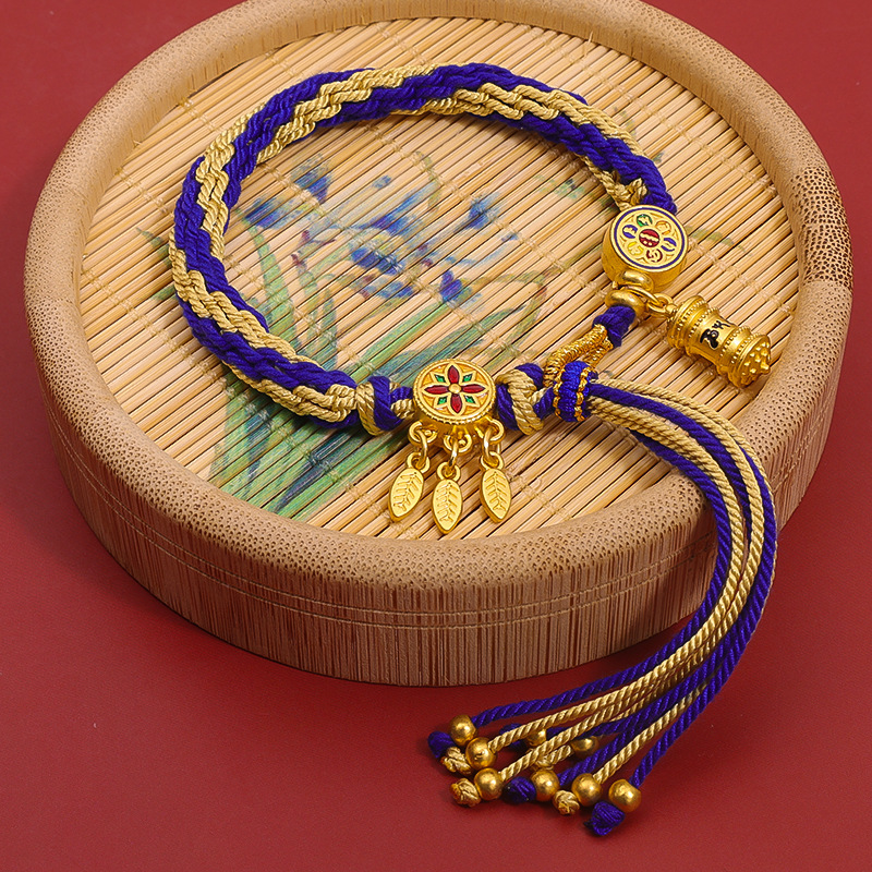 藏式七彩轮回手链民族风五彩绳diy唐卡手绳手工编织棉线手绳批发