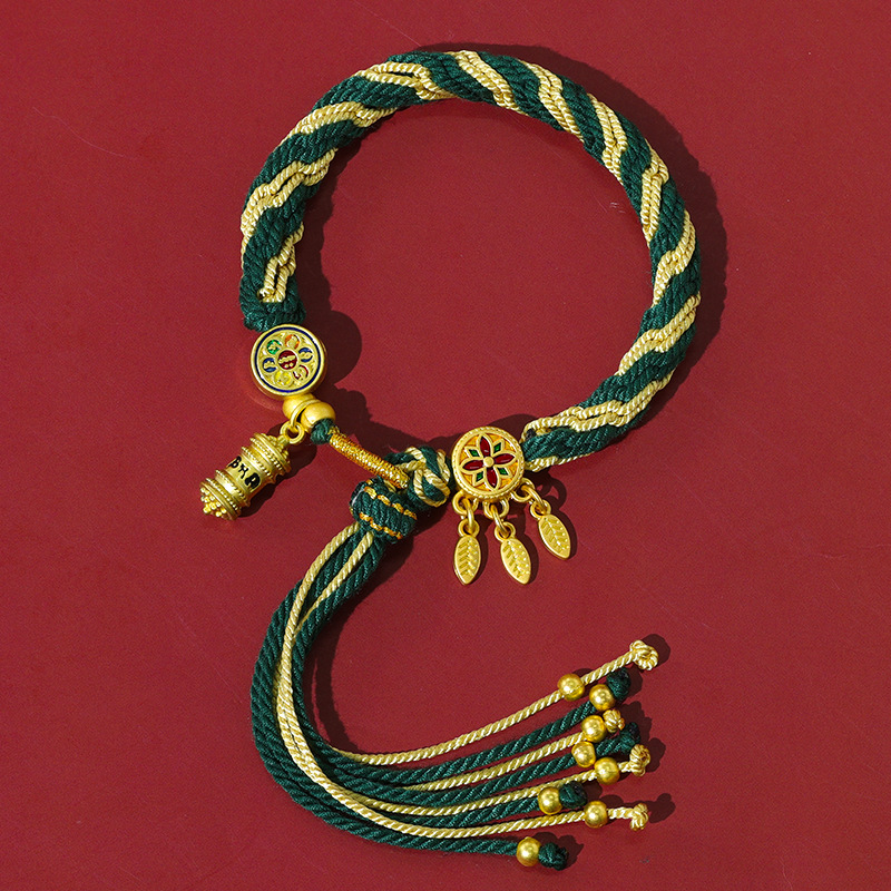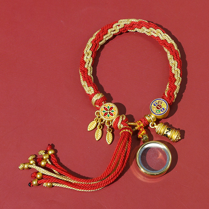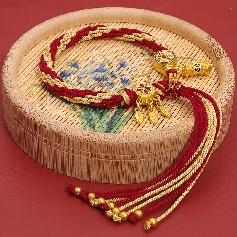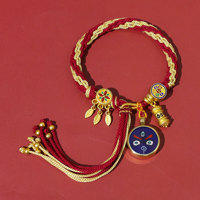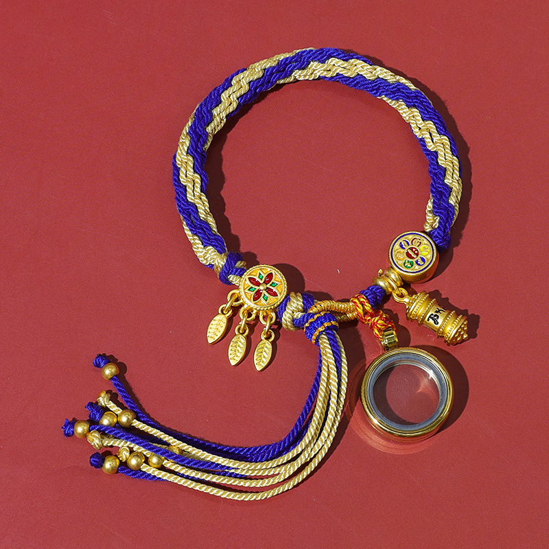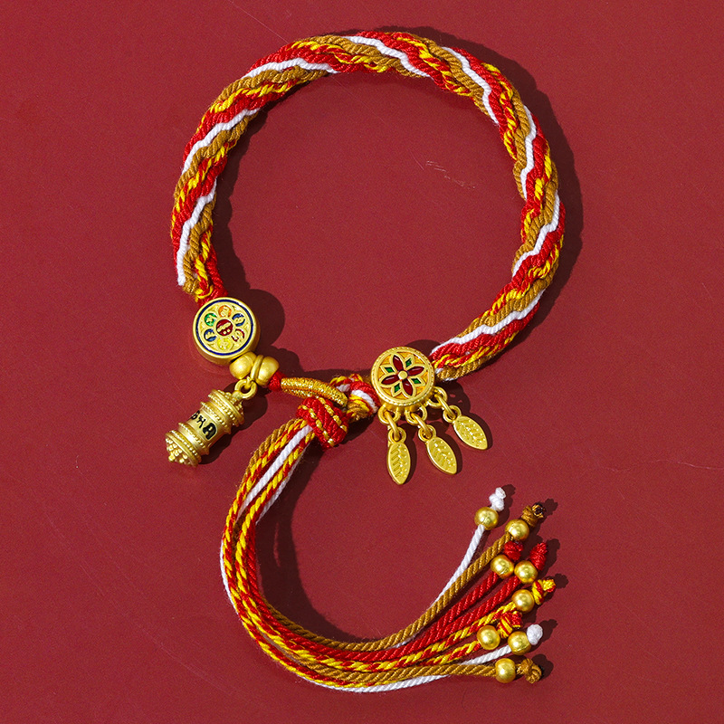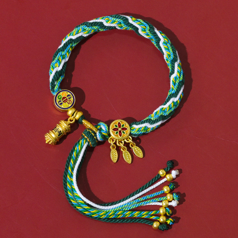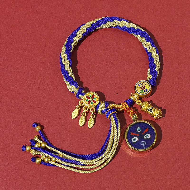 藏式七彩轮回手链民族风五彩绳diy唐卡手绳手工编织棉线手绳批发