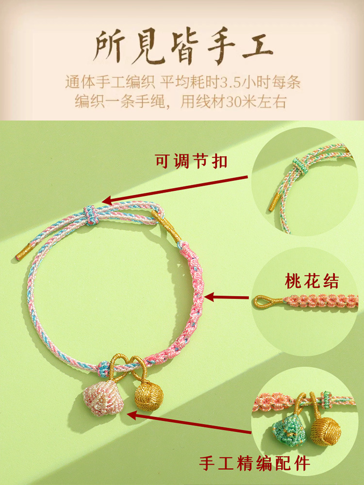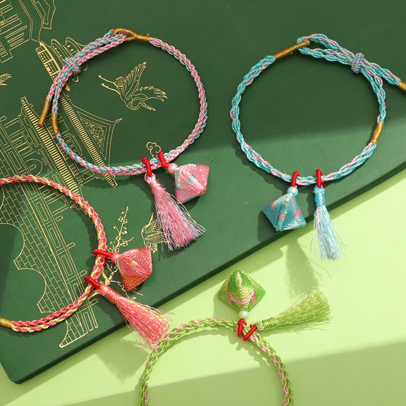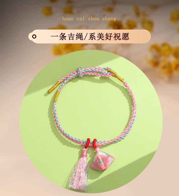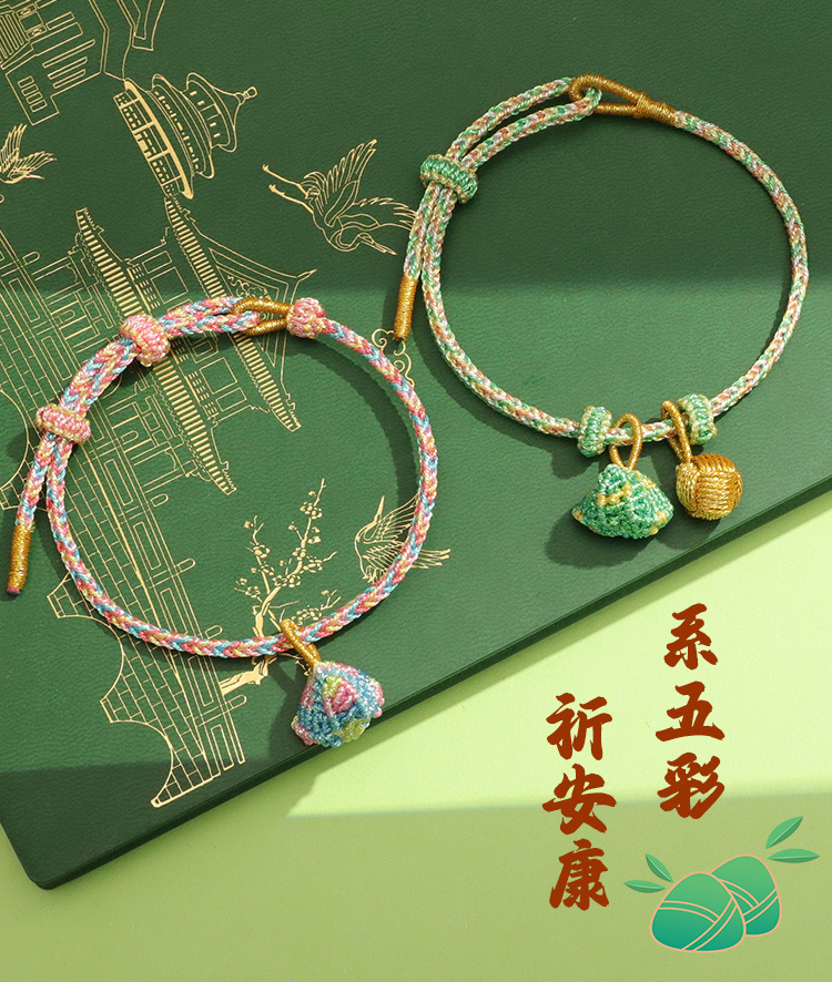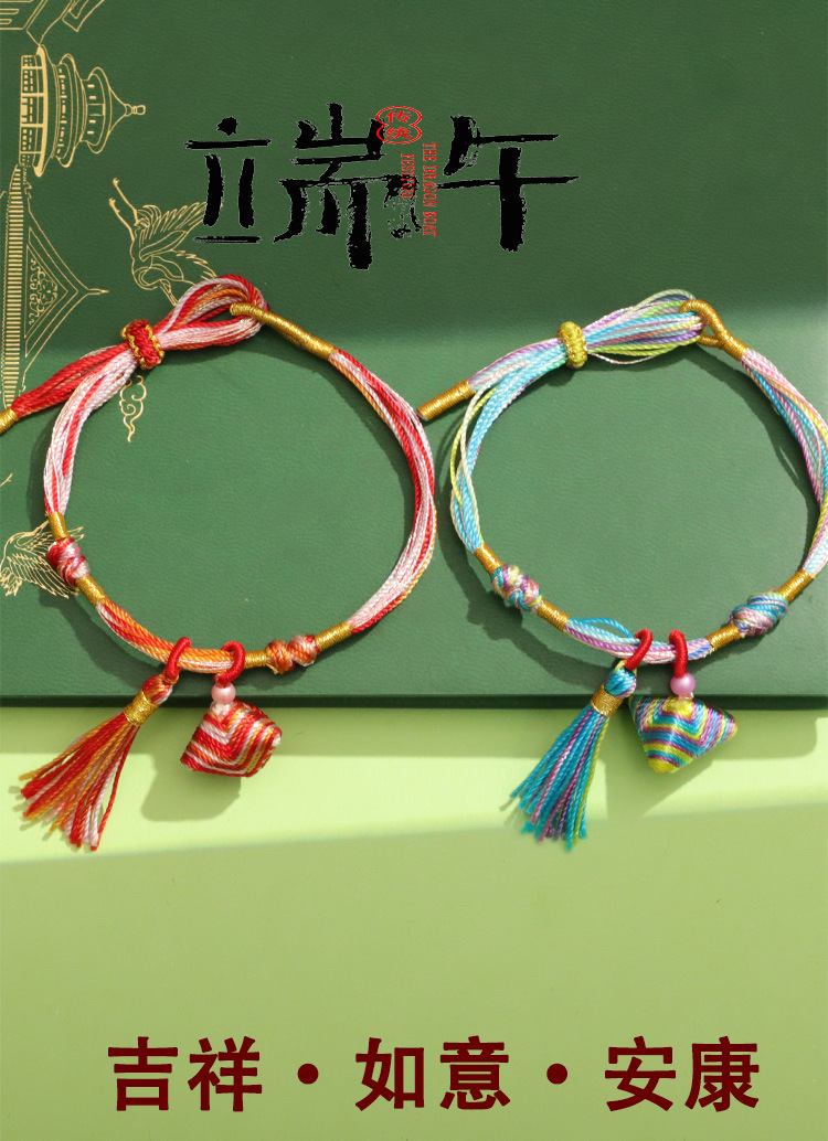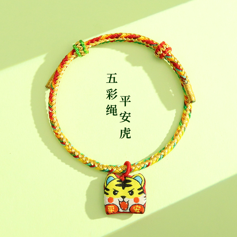 五彩绳手链端午节五色线老虎粽子手绳成人儿童手饰手工编织批发
